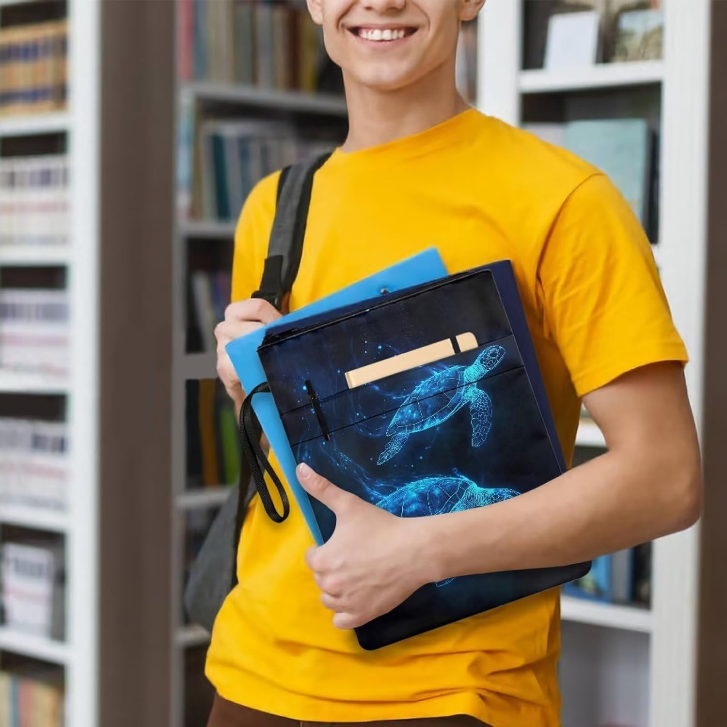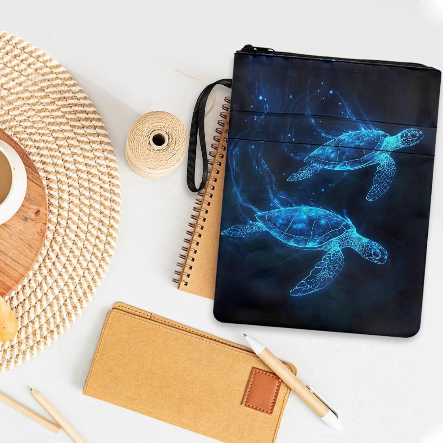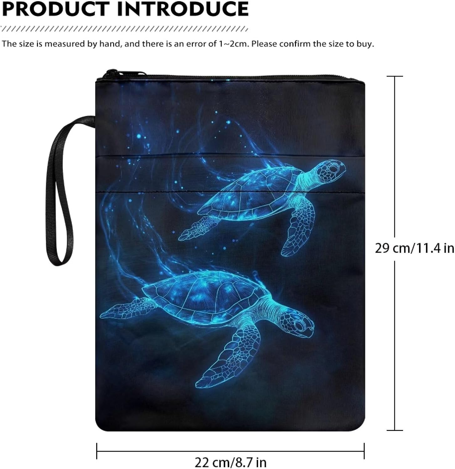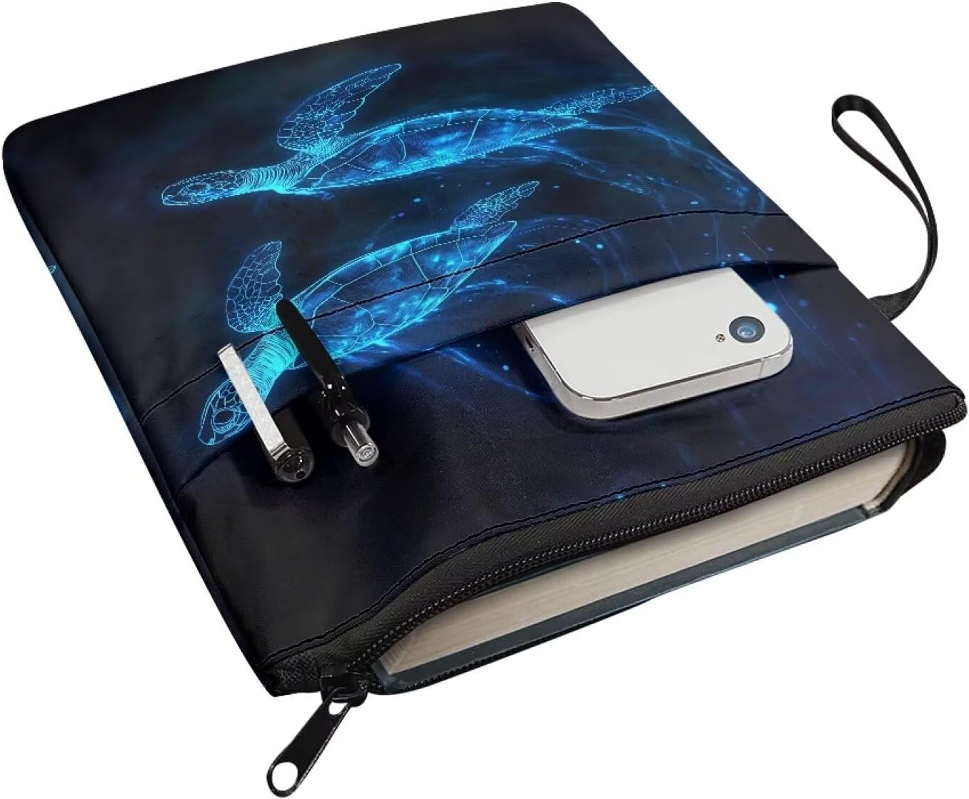 Custodia per libri leggera con cerniera, lavabile, in tessuto, 29 x 21 cm, per gli amanti dei libri, tartaruga marina blu