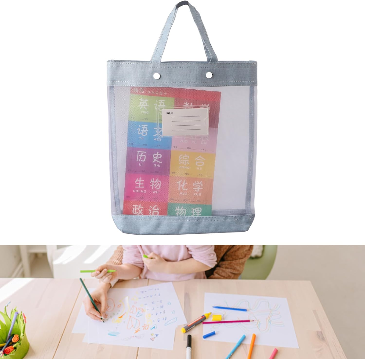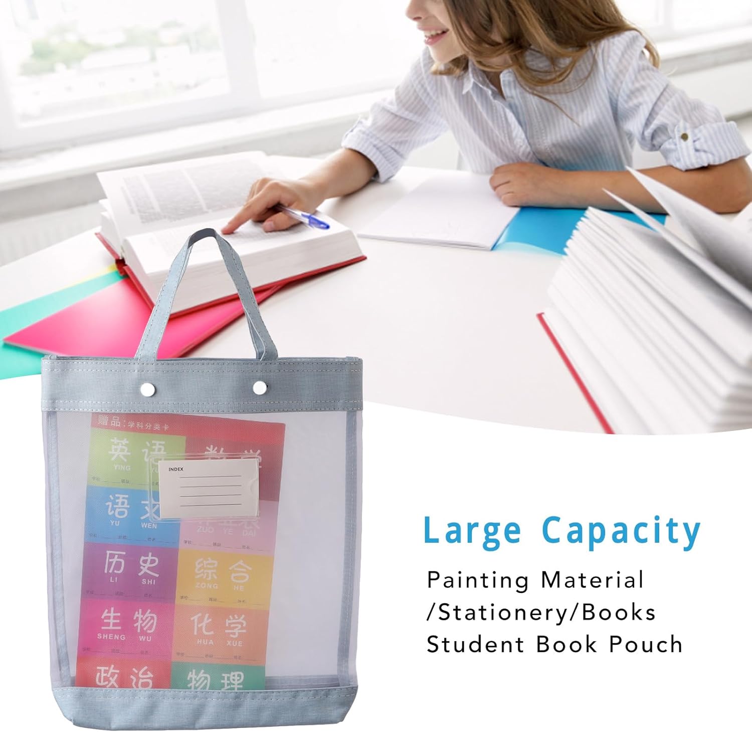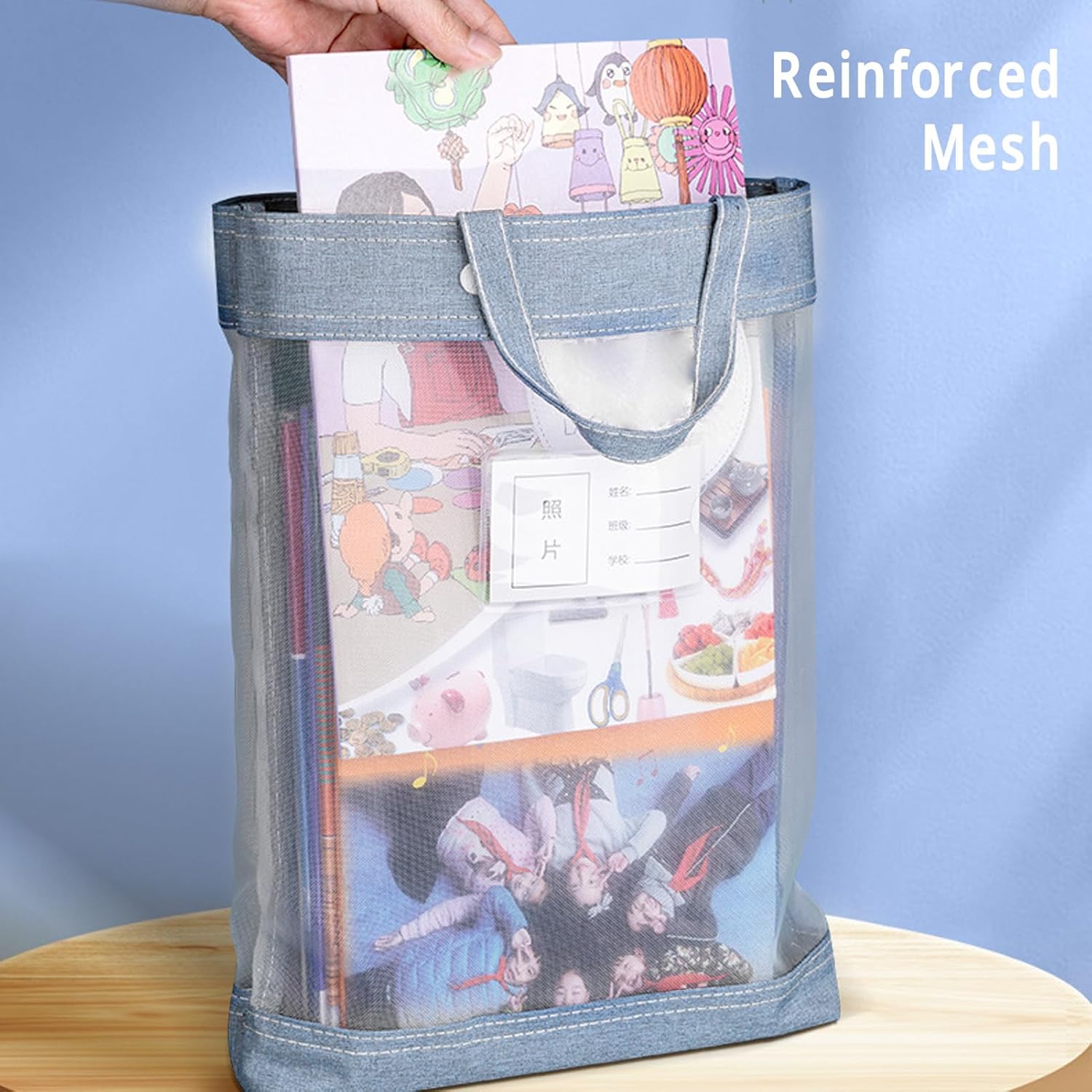 Rete trasparente: questa custodia per libri per studenti presenta un design a rete trasparente che consente di identificare facilmente i tuoi oggetti all'interno, non è necessario aprire la borsa, risparmia tempo. Tela impermeabile: questa borsa per documenti in rete adotta materiale di tela di alta qualità, che è altamente durevole e impermeabile, resistente all'usura e alle macchie. Ampia applicazione: questa custodia in rete è adatta per documenti, ricevute, carta, libri, quaderni, articoli di cancelleria, ricevute, fatture e altri articoli a scuola, in ufficio anche durante i viaggi. Maniglia morbida: questa borsa portadocumenti è progettata con una maniglia morbida e robusta per comodità, in modo da poterla trasportare facilmente dove vuoi. Regalo ideale: questa borsa portadocumenti impermeabile di grande capacità è una scelta regalo ideale e pratica, ideale per studenti, impiegati e viaggiatori.