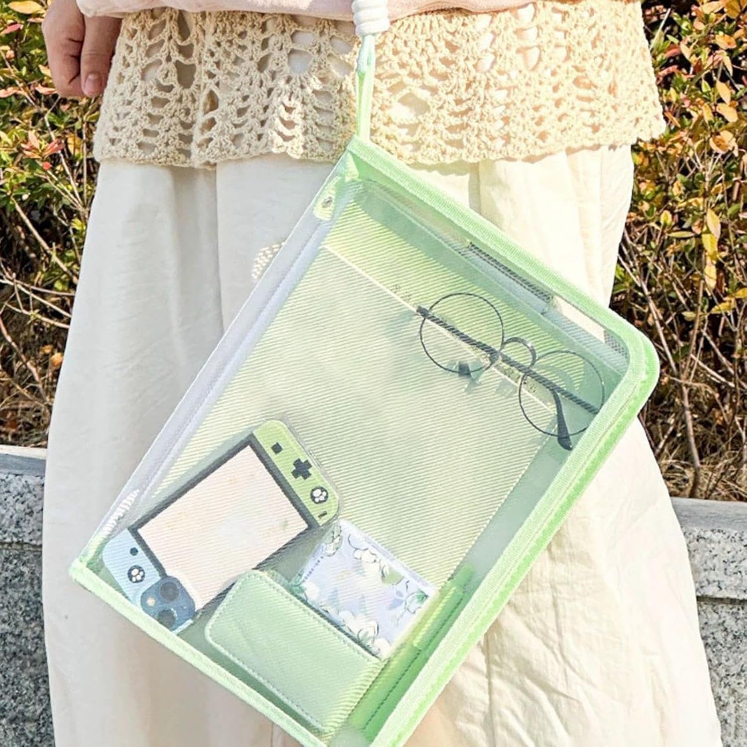 Capacità 100 fogli: cartella A4 con meccanismo ad anello in metallo e scomparto trasparente per organizzare in modo ordinato libri di testo e documenti Pratica soluzione per cintura: il fissaggio sicuro della cintura e la maniglia in tessuto offrono agli studenti e ai bambini un modo affidabile per organizzare il materiale scolastico nell'uso quotidiano Protezione affidabile: costruita con protezione antigraffio antipolvere e sigillatura resistente all'umidità. Protegge i libri da sporco, pieghe e strappi. Offre una conservazione affidabile grazie alla cerniera liscia. Accesso facile:: la parte anteriore trasparente consente di riconoscere rapidamente i contenuti. La custodia flessibile in PP è impermeabile, resistente agli strappi e utilizzabile più volte, una pratica protezione quotidiana per tutti i formati di libro. Versatile organizer da ufficio: combina un elegante sistema di organizzazione con praticità. Ideale come regalo per il posto di lavoro e offre allo stesso tempo versatilità e design accattivante per l'uso quotidiano come cartella portadocumenti o organizer per accessori.