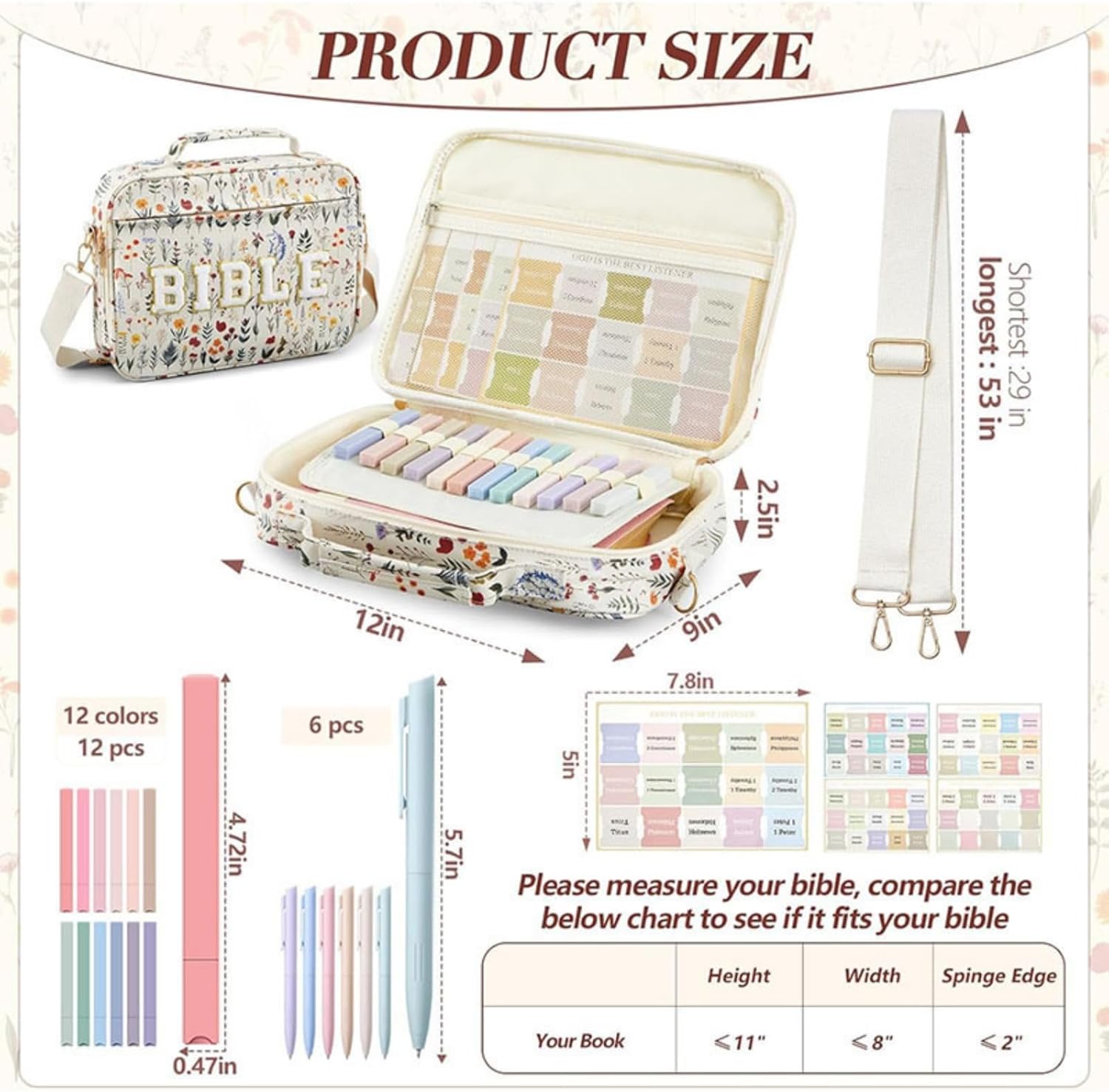 📚Materiale: questa custodia per libri è realizzata in poliestere di alta qualità, antitaglio, durevole e riutilizzabile. Questa custodia per libri protegge i tuoi libri dalla polvere o dalle pagine strappate e piegate. Non preoccuparti di angoli danneggiati o copertura graffiata! 📚Chiusura con cerniera: presenta una chiusura con cerniera liscia di alta qualità per una maggiore protezione. Ideale per tenere al sicuro i tuoi libri durante il viaggio. 📚Proteggi i tuoi libri: puoi mettere il tuo amato libro in questa borsa con cerniera per proteggere la copertina del tuo libro da sporco, graffi o sgualciture, ottima per tenere i tuoi libri al sicuro durante il viaggio e far sembrare il tuo libro come se fosse appena stato riacquistato. 📚Occasione: è una copertina per libro che ti consente di portare il tuo libro nelle chiese in qualsiasi momento per lo studio della Bibbia, il culto o il pellegrinaggio. Una fantastica custodia per notebook per scuole, biblioteche e aule studio. Adatto anche per lavori d'ufficio. 📚Regalo ideale: la copertina del libro è perfetta per madre, figlia, sorella, nonna o amica, amante dei libri. Può essere usato come regalo di San Valentino, regalo di compleanno, regalo di anniversario per le tue persone importanti. È pratico e bello.