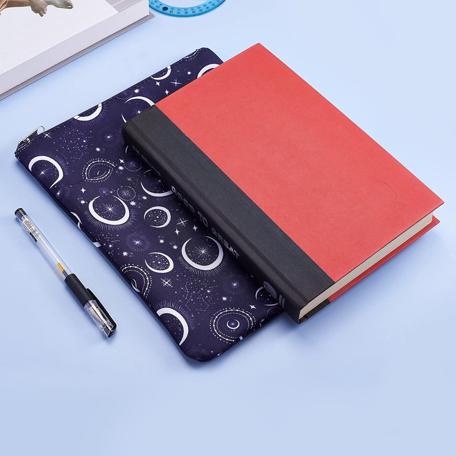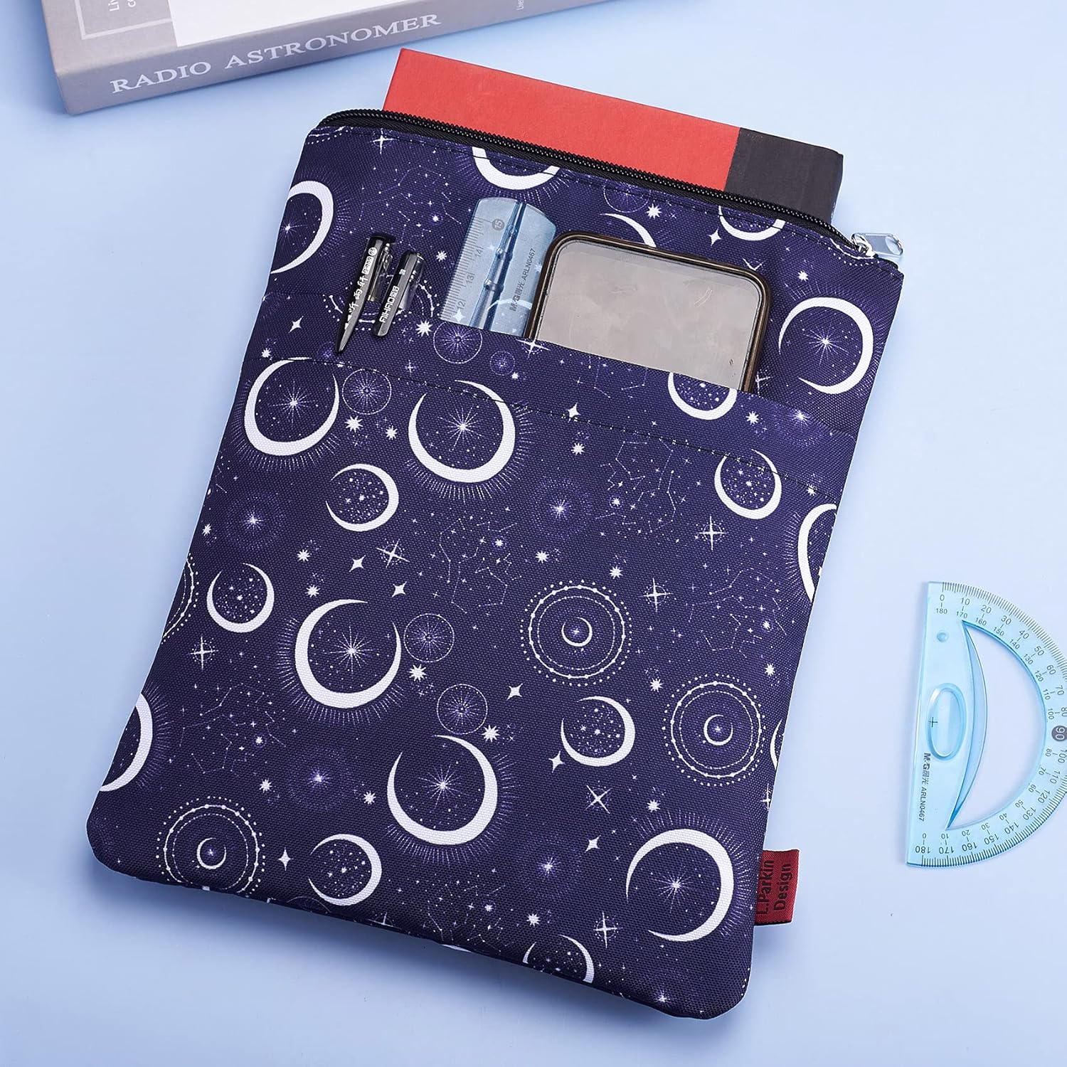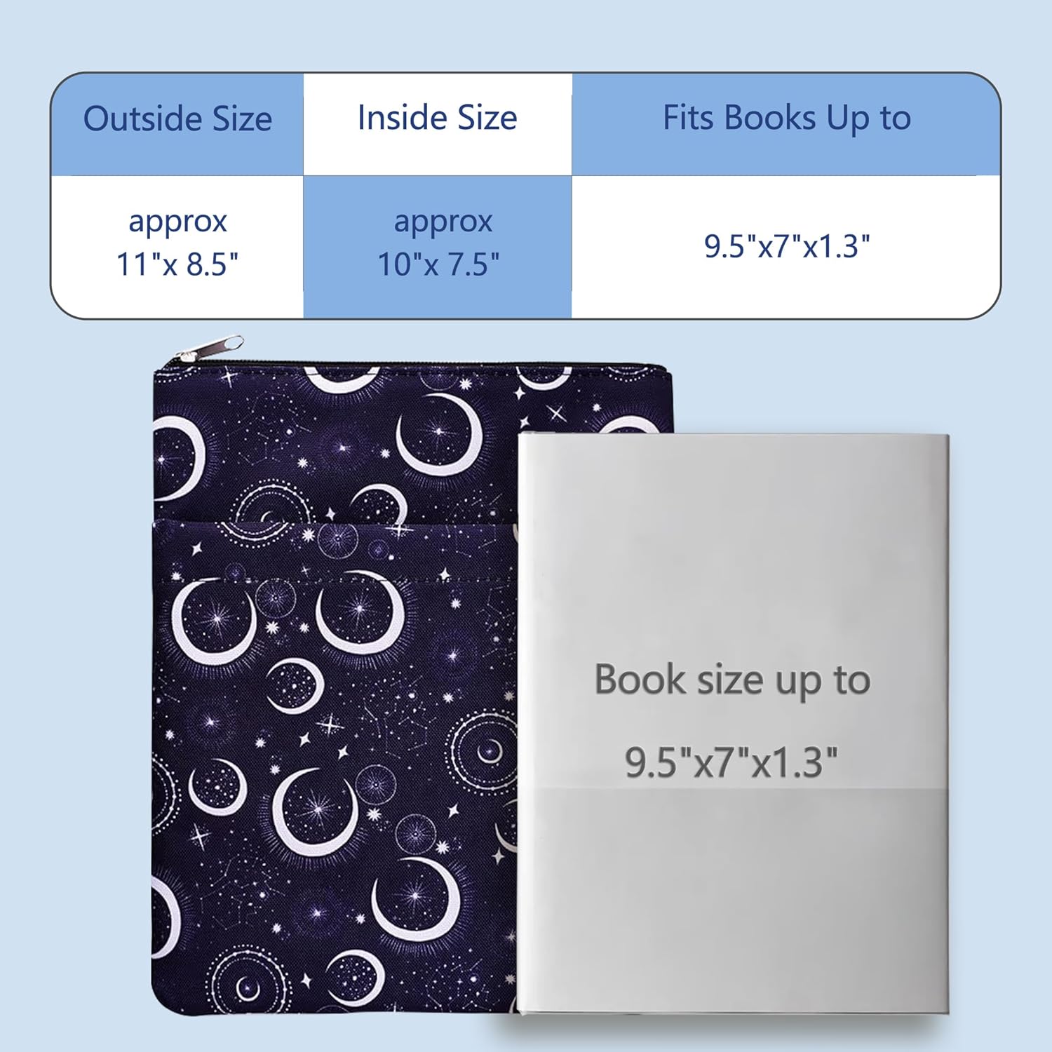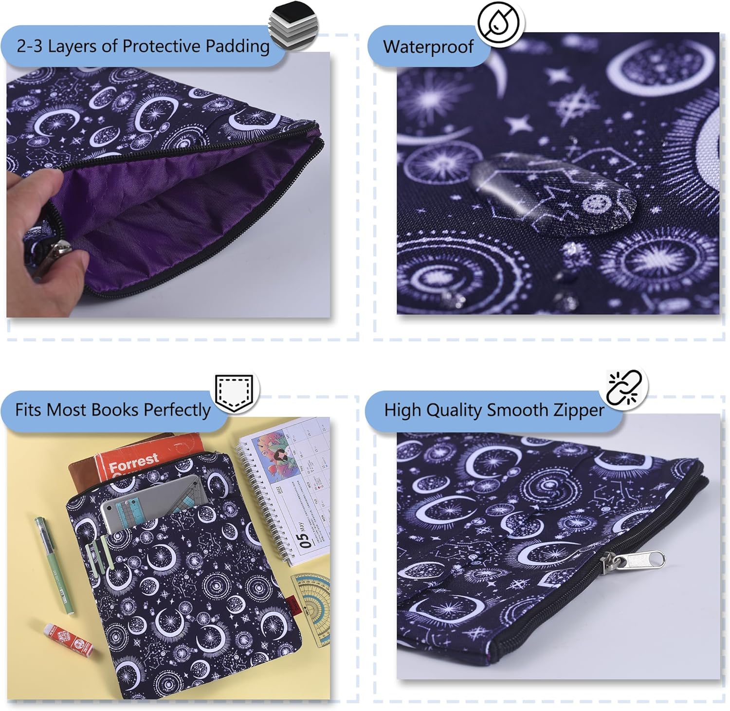 Custodia a libro con luna e stella: la manica a luna e stella protegge il tuo libro dalla polvere e dalla copertina da strappi, schizzi, pioggia e mani bagnate. Copertura perfetta per un amante del libro che ama mantenere i suoi libri in condizioni incontaminate. Questo articolo non è destinato all'uso da parte di bambini dai 3 anni in su. Protezione per libri luna e stelle: i modelli della nostra custodia per libri sono progettati con motivi stravaganti di luna, stella, costellazione. È un regalo meraviglioso e indimenticabile per gli amanti dei libri Dimensioni: questa custodia per libri è misurata circa 28 cm x 22 cm e si adatta alla maggior parte dei libri autoportanti, brossura standard, brossura di massa e normali copertina rigida. Tasca extra per le maniche: tasca extra (22 x 20 cm), offre spazio sufficiente per contenere penne, righelli, quaderni, Kindle e libri ancora più piccoli, offrendo una maggiore comodità Chiusura con cerniera: realizzato in tela di cotone/poliestere e presenta una chiusura liscia con cerniera per una maggiore protezione. Sottile e leggero, non ingombra il libro e può facilmente scivolare nella valigetta, nello zaino o in altra borsa.