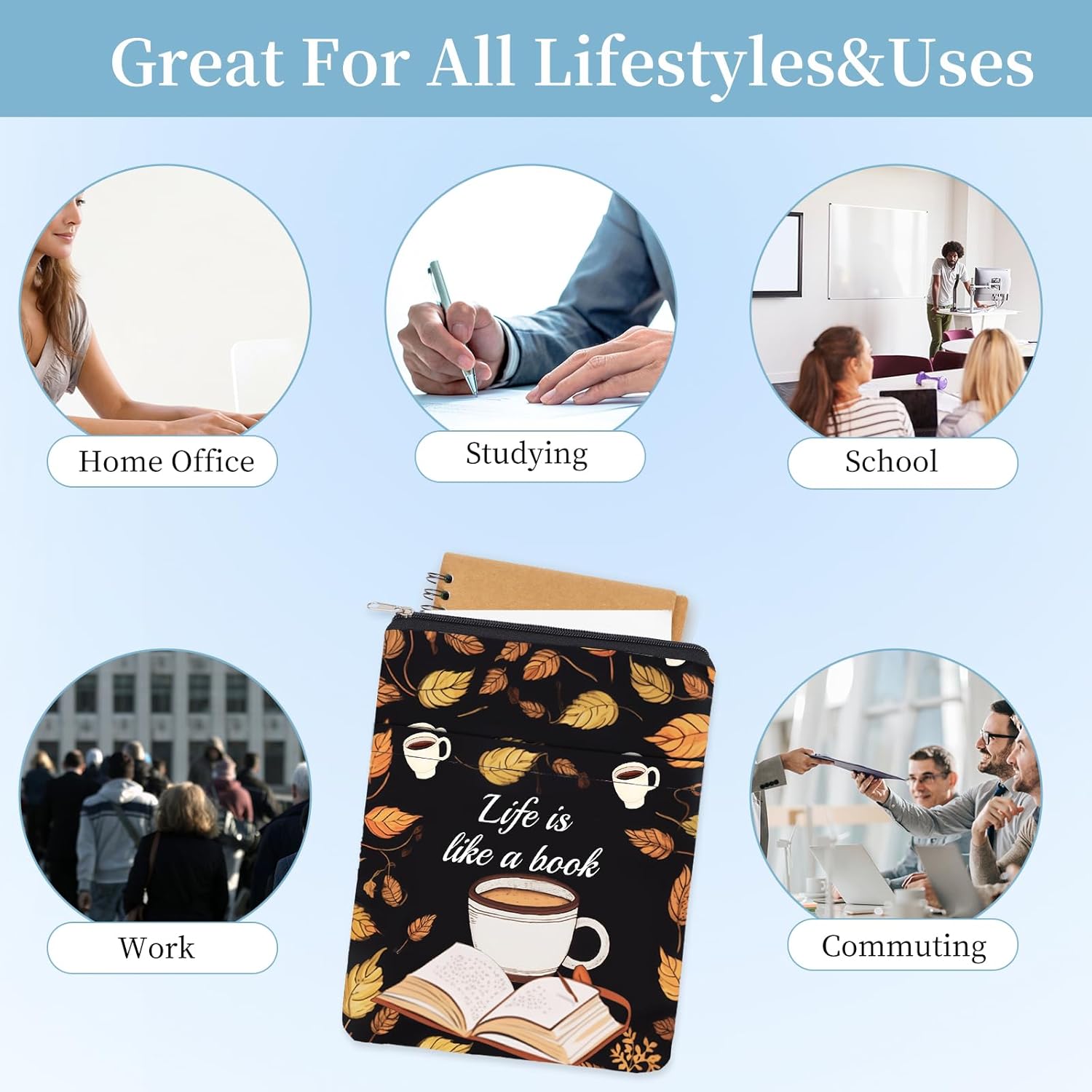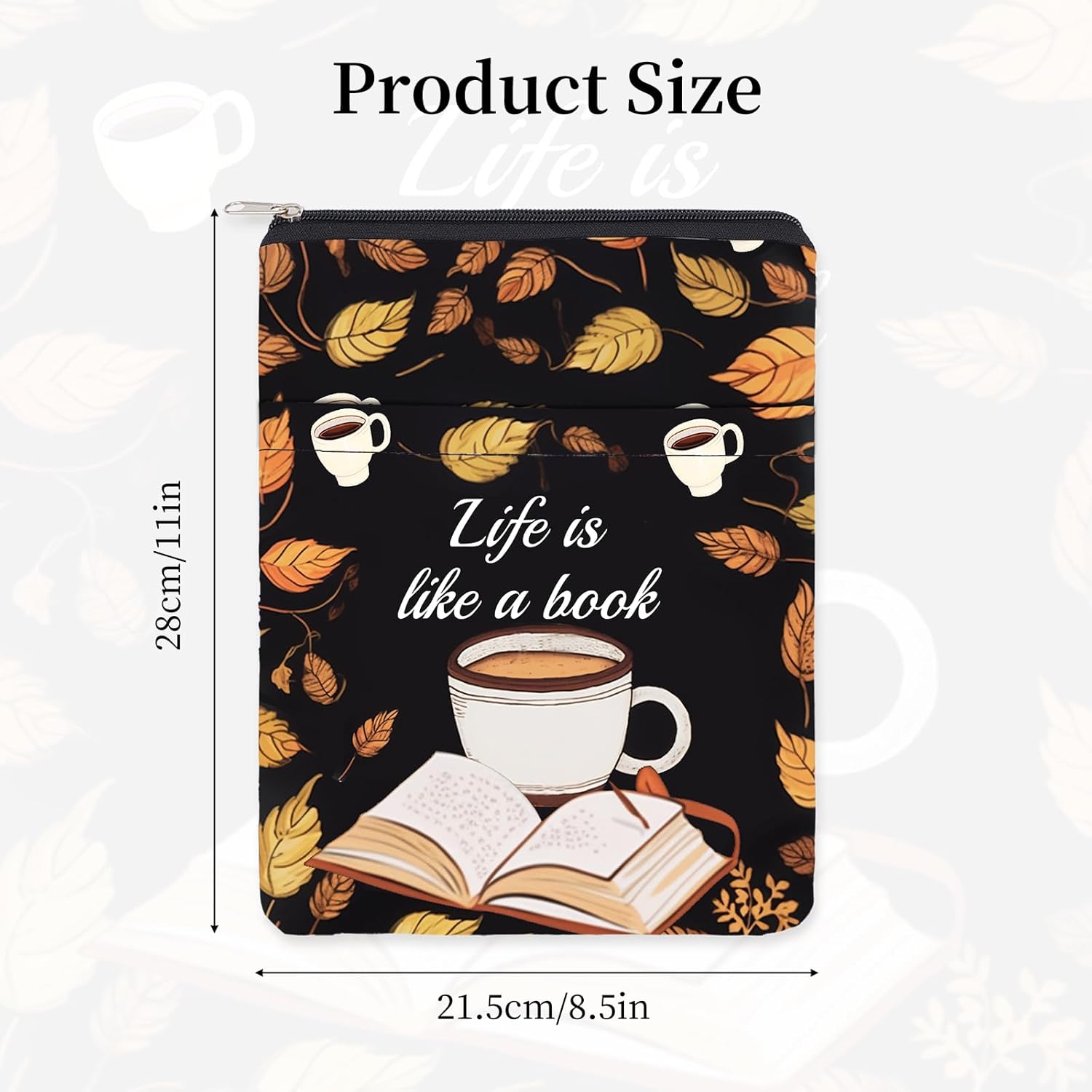 DIMENSIONE DEL PRODOTTO:la dimensione della copertina di questo libro è di circa 28cm * 21cm , adatto per la maggior parte dei libri, tascabili standard, tascabili, libri con copertina rigida e così via. La giusta dimensione può essere piegata e trasportata liberamente, servirti sempre e ovunque. CHIUSURA CON ZIP:questa copertina del libro è progettata con una cerniera, molto conveniente, puoi inserire o estrarre il libro facilmente e rapidamente, e allo stesso tempo migliora la tenuta e la sicurezza, non preoccuparti di perderlo. TASCA FRONTALE:Abbiamo una piccola tasca sulla parte anteriore di questa borsa per libri, che può fornire spazio sufficiente per i tuoi accessori, taccuino, lettore elettronico, piccolo diario, Stazionario, cosmetici, occhiali da sole o altre piccole decorazioni. MATERIALE:le nostre protezioni per libri sono realizzate in poliestere, leggero, lavabile e resistente, che protegge le copertine e i bordi dei tuoi libri e altri accessori e ne facilita l'inserimento nella borsa. IMPERMEABILE:questa borsa per libri è impermeabile, che può proteggere meglio i tuoi libri dalla pioggia, puoi stare certo che puoi mettere i tuoi libri dentro. Borsa per libri impermeabile affidabile per una bella vita.