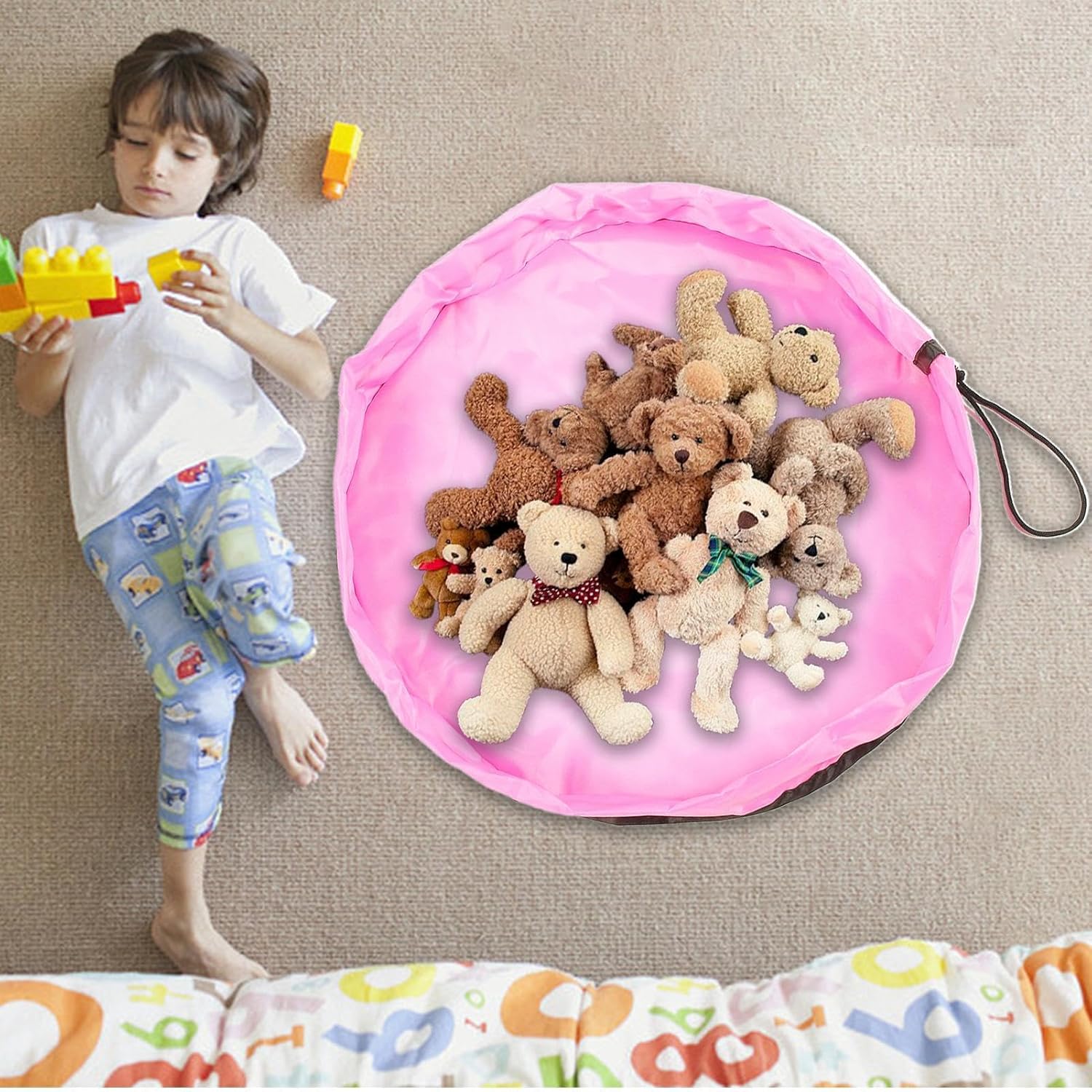 Sacchetti per giocattoli ad alta capacità: progettati sapientemente per una varietà di giocattoli, bambole di peluche e blocchi e hanno un diametro di 1,5 metri e offrono una grande capacità. Borsa per giocattoli impermeabile: i nostri sacchetti per giocatori con cordino sono realizzati in tessuto Oxford impermeabile, che impedisce efficacemente l'ingresso di acqua e mantiene i giocattoli puliti e asciutti. Queste borse sono perfette per uso interno ed esterno e garantiscono un facile stoccaggio dei giocattoli Facile da usare: l'apertura del cordoncino facile da aprire e il manico rendono facile accedere ai tuoi giocattoli. Leggero e compatto, è perfetto per trasportare giocattoli e tenerli organizzati Ampio utilizzo: raccogli facilmente i tuoi must quotidiani con questi sacchetti per giocattoli con cordoncino. Queste borse versatili possono riporre vestiti, libri e biancheria da letto e garantire una casa ordinata per diversi scenari Migliora l'atmosfera piacevole: con colori vivaci e un design semplice e alla moda, questa borsa da gioco per giocatori aggiunge divertimento alla cameretta dei bambini e crea un'atmosfera accogliente senza sforzo
