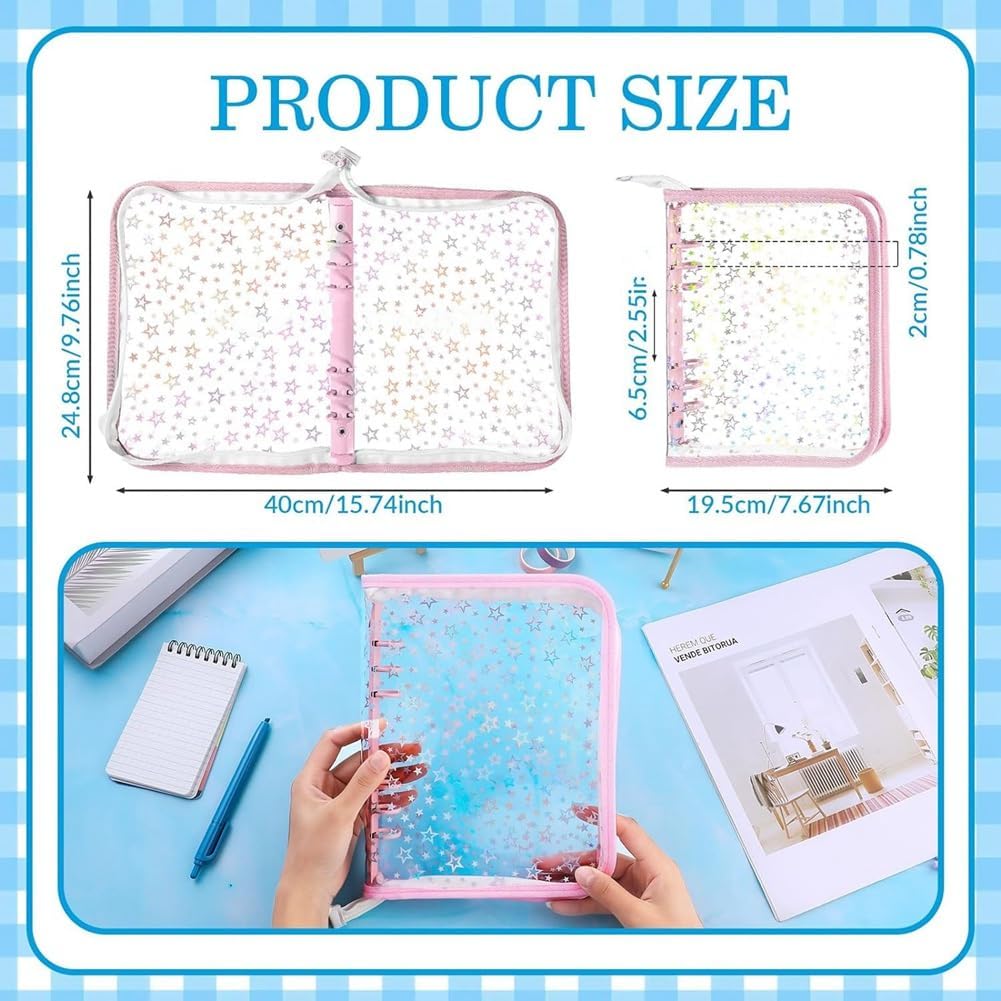 La copertura è dotata di una copertura in plastica impermeabile, una cerniera e un design ad anello in metallo per una facile apertura e chiusura. Basta scorrere e aggiungere o eliminare le pagine interne. Può anche fissare pagine o foto e impedire che le pagine interne cadano, possiamo accedervi facilmente. La custodia trasparente per taccuino A5 ricaricabile consente di premere entrambe le estremità della striscia metallica e i 6 anelli si aprono. È quindi possibile inserire la propria carta in, premere gli anelli aperti da entrambi i lati e utilizzare il centro chiuso. La custodia trasparente offre una visione chiara e ti aiuta a identificare il contenuto al suo interno. Se hai un perforatore, puoi creare tu stesso la carta interna. Realizzato in PVC di alta qualità, anelli in metallo e bordi. Guscio lucido morbido e resistente, non facile da rompere o deformare. Liscio al tatto. Impermeabile, non ha paura di crepe. Robusto anello in metallo, non facile da trasportare. Interno ben protetto. [Ampia applicazione] Queste custodie per diari A5 con 6 anelli offrono spazio per inserti aggiuntivi a 6 fori o tasche per raccoglitori. Perfetto per sistemi di budget in contanti, taccuini, agenda, diario, annotazioni di lavoro, note di studio, diario di viaggio, diario aziendale, diario aziendale, verbale delle riunioni, pittura, schizzi, scrittura, memo, lista delle cose da fare, lista dei menu, libro della casa, album fotografico e così via. Il contenitore perfetto per casa, ufficio, scuola e altro ancora.
