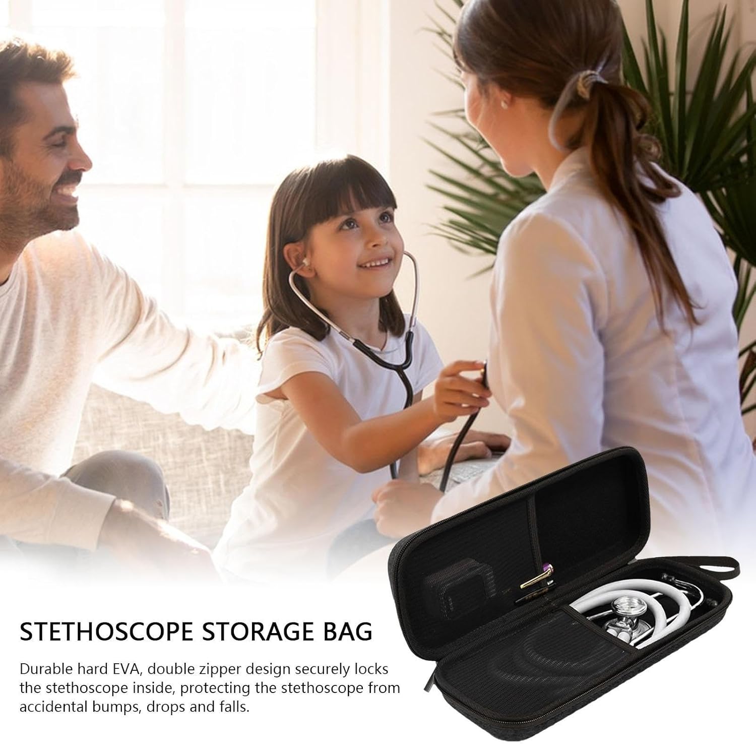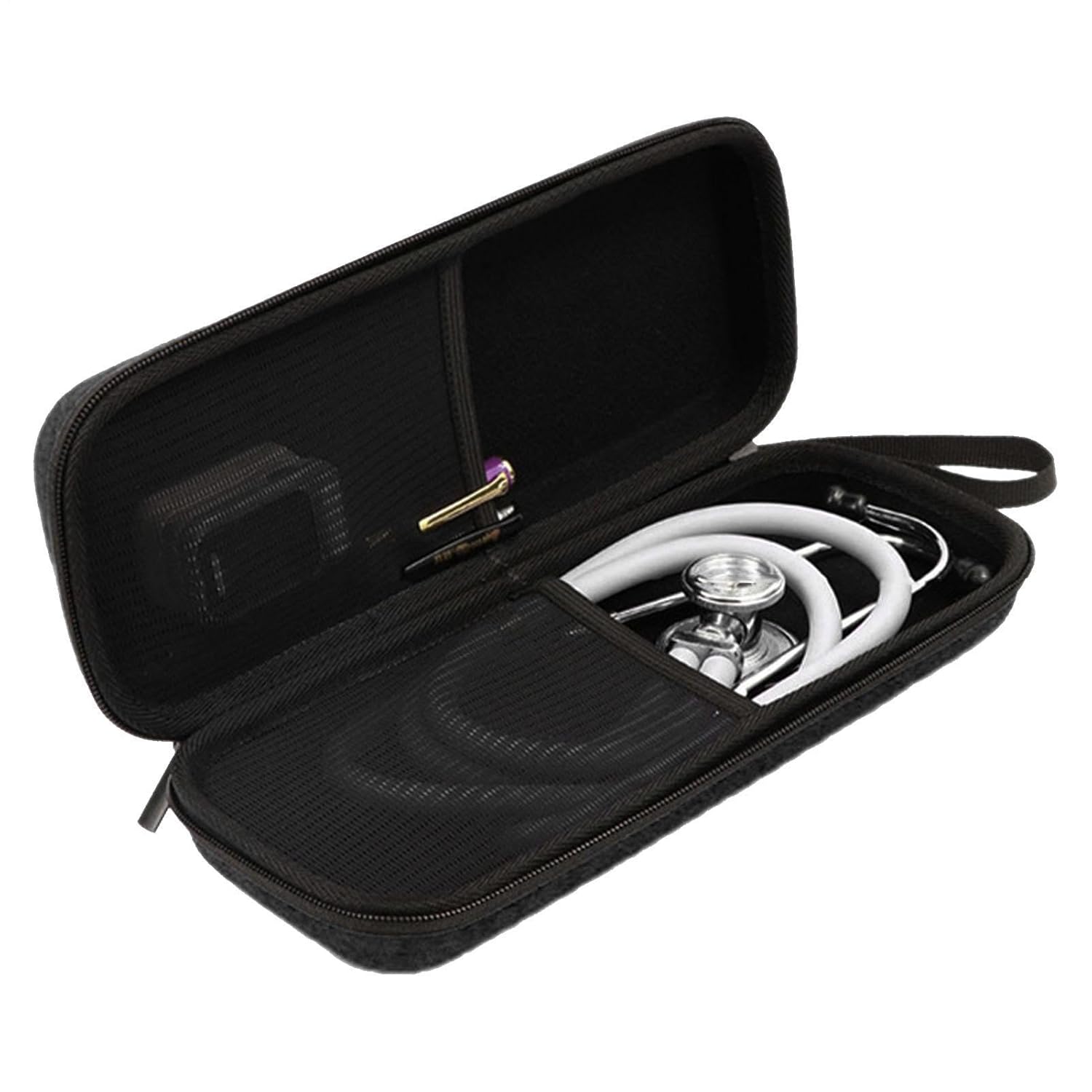 Conservazione dello stetoscopio: la nostra custodia per stetoscopio antiurto protegge lo stetoscopio e gli accessori da danni accidentali. Costruita con un esterno rigido, un rivestimento interno morbido e una tasca in rete per ulteriore spazio di archiviazione, questa custodia garantisce che il tuo stetoscopio rimanga sicuro e protetto. Spazio extra: questa custodia per stetoscopio offre spazio più che sufficiente per il tuo stetoscopio e altri piccoli accessori. È perfetto per le esigenze di diversi professionisti medici con diverse dimensioni e tipi di stetoscopi. Tessuto antiurto: proteggi il tuo stetoscopio da danni imprevisti con la nostra massima protezione. Mantienilo resistente ai graffi e all'usura con fodera in velluto antiurto e tessuto EVA anticaduta. Facilità di viaggio: la nostra custodia per stetoscopio è una soluzione pratica per i professionisti medici in movimento. Il design leggero e portatile con una cinghia da polso ti consente di trasportarlo facilmente senza allontanarti. Ampia applicazione: mantieni il tuo stetoscopio e altri accessori per la cura organizzati e al sicuro con la nostra custodia robusta che li protegge da detriti, graffi e usura. Perfetto per studenti di infermieristica, medici, ecc.
