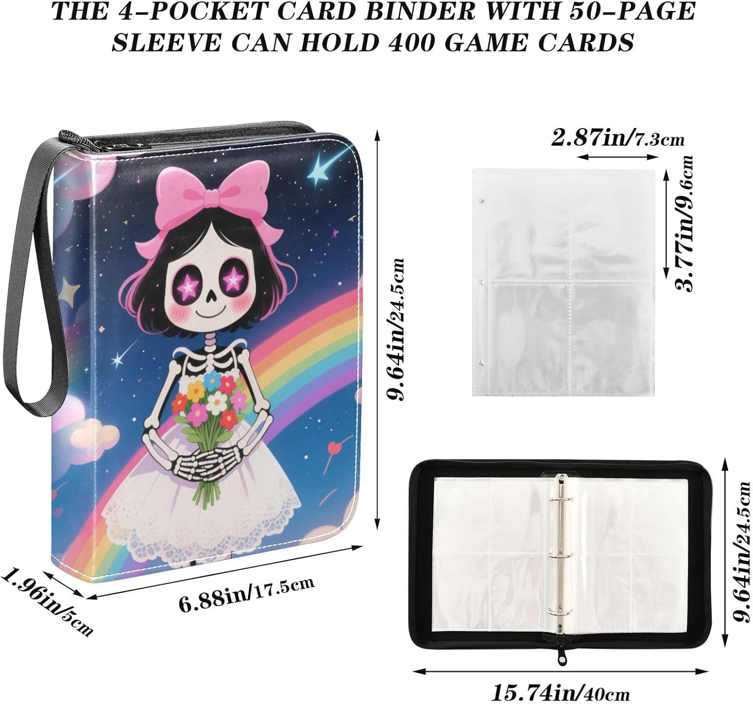 Grande capacità: 24,5 x 17,5 x 5 cm {keyword} ha una generosa capacità di cinquanta pagine, per un totale di 400 carte collezionabili. Con una tasca trasparente di 9,6 x 7,3 cm, la tasca è accuratamente dimensionata per adattarsi a tutti i tipi di carte collezionabili. Le cinghie in nylon sui lati rendono il trasporto delle tue carte un gioco da ragazzi, in modo da poter portare le tue carte preziose con te ovunque tu vada. Copertina in pelle PU impermeabile L'album fotografico in pelle con la sua lucentezza unica e la sua consistenza fine è in grado di resistere a frequenti usi quotidiani e l'attrito e rimanere in buone condizioni per un lungo periodo di tempo. Macchie o danni causati dall'acqua possono essere semplicemente rimossi per mantenerlo pulito e ordinato, il che può proteggere meglio le carte all'interno da danni. Design speciale Con il cinturino in nylon sul lato dell'album fotografico di carte, puoi facilmente appendere la custodia al polso, al dito o trasportarla direttamente in mano senza preoccuparti di cadere o perderla. E l'interno del cinturino è trasparente in modo da poter vedere direttamente le carte memorizzate all'interno, rendendo facile trovare rapidamente le carte bersaglio. Adatto per varie carte 400 tasche per carte per riporre le carte di tutti i giorni. Compatibile con carte da baseball, carte da calcio, carte magiche magiche, carte anime calde, carte da gioco da tavolo, carte associative, carte VIP e altro ancora. Regalo ideale per i tuoi bambini Un album fotografico di carte, come regalo per un bambino, è come una chiave per sbloccare la porta di interesse. Incoraggia i bambini a esplorare, scoprire e collezionare, in modo che possano raccogliere felicità e crescita nel processo e sentire il tuo profondo amore.