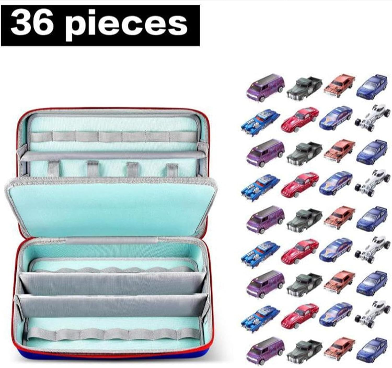 【Materiale di alta qualità】: la custodia per è realizzata in materiale EVA con una maniglia robusta, che combina un aspetto moderno e una funzionalità di lunga durata per l'uso quotidiano 【Design】: Design compatto e leggero con una cerniera liscia per una facile trasportabilità in borse, zaini o bagagli durante il viaggio 【Applicazione】: Include divisori regolabili e scomparti multipli per organizzare e visualizzare ordinatamente modelli pressofusi, action figure o piccoli oggetti da collezione 【Caratteristica】: Presenta cinghie elastiche e una morbida fodera interna per contenere saldamente fino a 36 mini giocattolo, proteggendole da graffi, polvere e danni 【Ottimo regalo】: l'organizzatore per modellini di auto pressofusi è un ottimo regalo per appassionati e i collezionisti di modellini di auto, bambini e adulti, ottimo per riporre e esporre