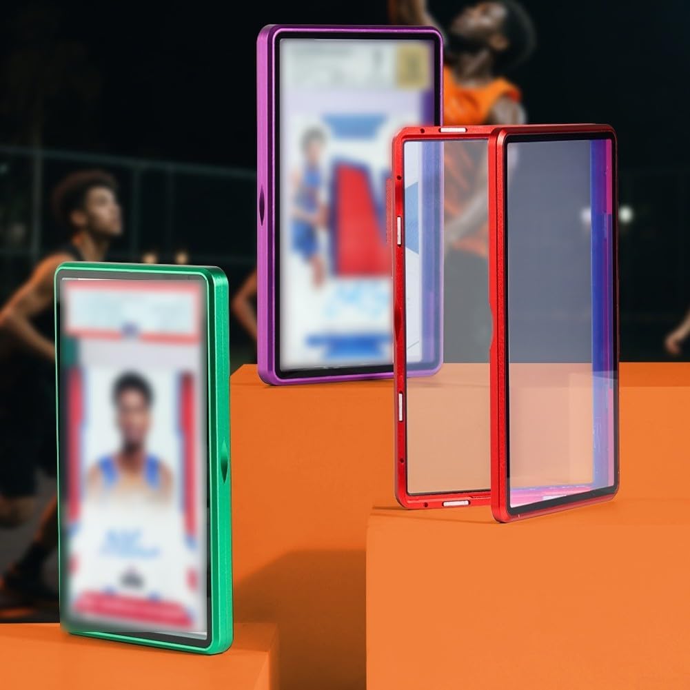 Protezione robusta: realizzata con una combinazione di lega di alluminio e vetro temperato, questa custodia offre una durata eccezionale, mantenendo le tue carte nominali al sicuro dall'usura quotidiana. [Compatibile con schede valutative] Progettata esclusivamente per carte nominali, questa custodia protettiva è perfetta per i collezionisti che cercano di mostrare i loro beni preziosi mentre la loro sicurezza. Dimensioni ideali: con dimensioni di 2 x 8 x 1 cm, raggiunge il perfetto equilibrio tra compattezza e capacità, accogliendo carte di dimensioni standard in modo sicuro. [ESTETICO ELEGANTE] Il design moderno non solo offre protezione, ma funge anche da espositore attraente per la tua collezione di carte, rendendolo una grande aggiunta a qualsiasi configurazione.