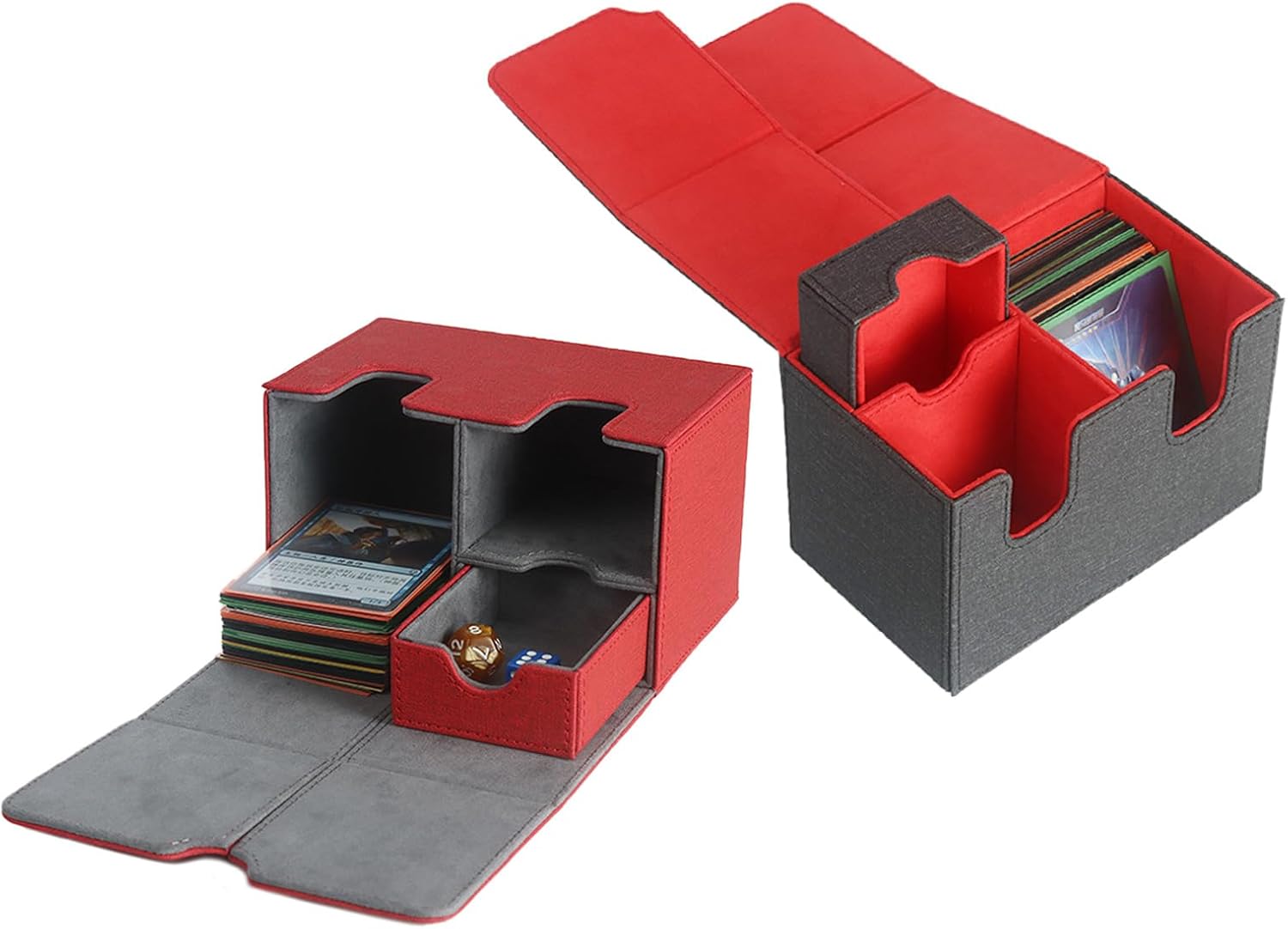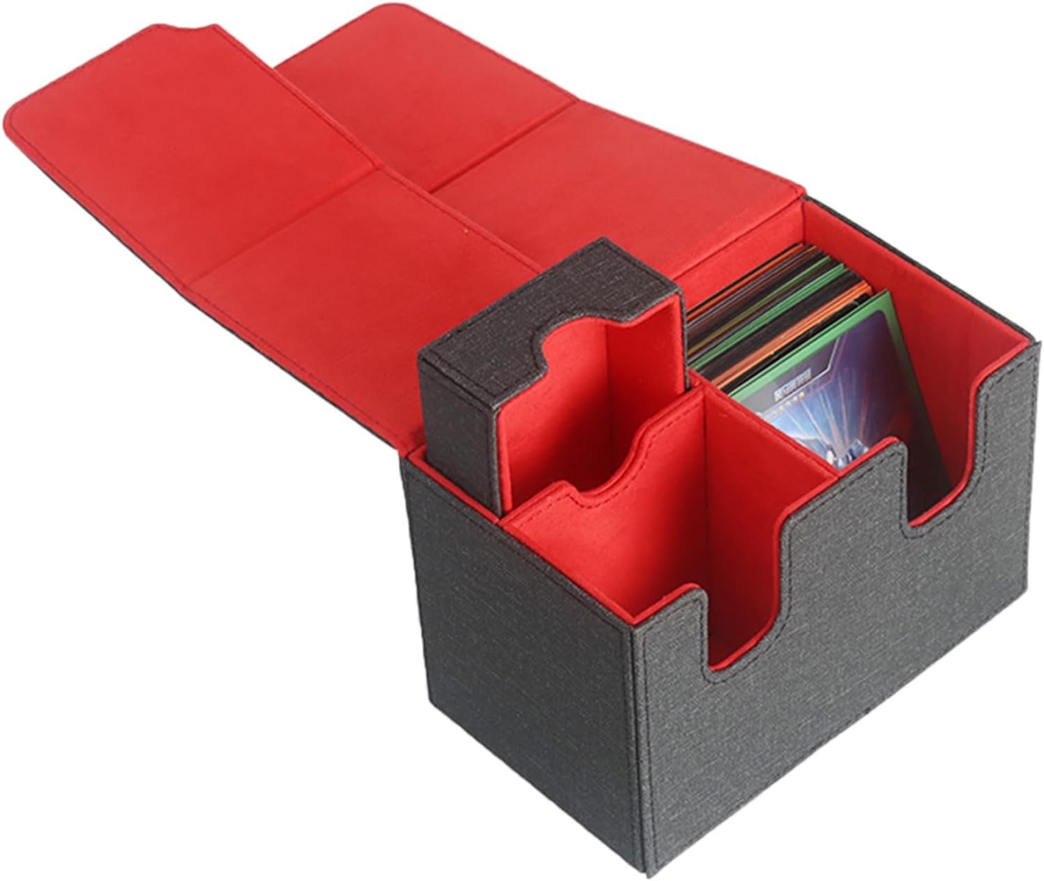 Porta tuo gioco carte livello successivo con questo contenitore per carte! suo design intuitivo consente un accesso rapido e senza problemi alla carta Proteggi e organizza le tue carte collezionabili con la scatola porta carte! Realizzata in pelle PU, questa scatola garantisce protezioni lunga durata La scatola delle carte è progettata per giocatori e collezionisti carte. È dotato pratiche chiusure magnetiche e scomparti separati facile organizzazione La scatola delle carte unisce funzionalità e stile. E fornisce soluzione semplice efficiente per archiviare e proteggere la tua preziosa collezione carte che tu stia giocando a casa tua o in trasferta, la scatola delle carte è un must per appassionati carte. Può contenere molte carte a bustina singola