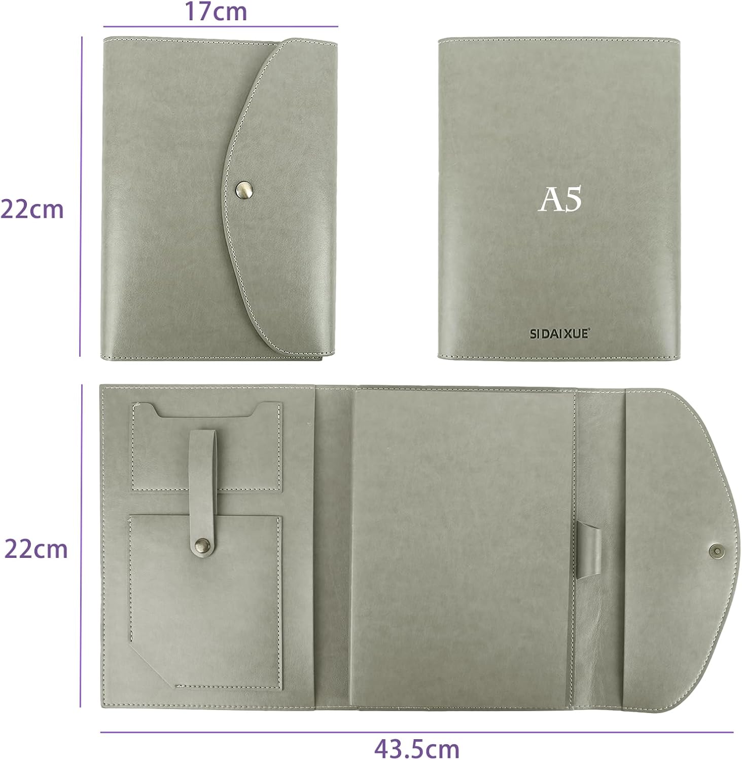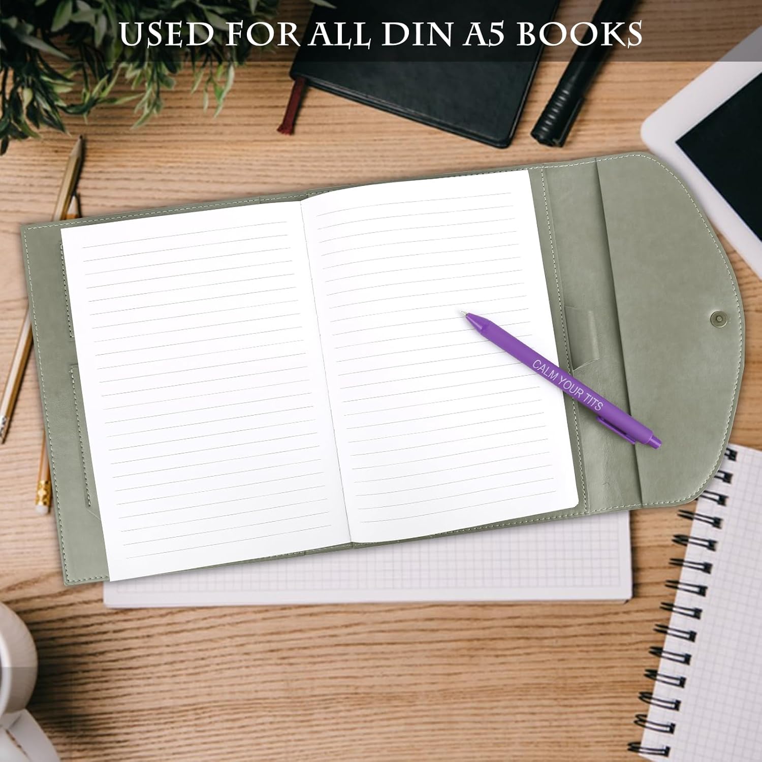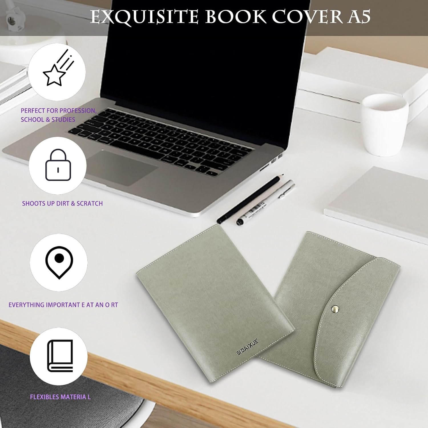 【Uso multifunzionale】La nostra custodia a libro A5 non solo protegge il calendario e i tuoi libri da graffi, ma offre anche diversi scomparti per carte, libri, calendari, telefoni cellulari, penne, ecc., in cui puoi riporre bene i tuoi oggetti. Materiale: la nostra custodia per libri è realizzata in pelle PU di alta qualità con cuciture molto sottili, non c'è bisogno di usare colla, è comoda, impermeabile e durevole. Design unico e facile da usare: la custodia per libro piegata in tre parti è molto facile da usare, con tasche e ganci per penne all'interno, basta aprire la chiusura a ventosa, quindi inserire il calendario e premere saldamente il pulsante per chiuderlo. Molto pratica Contenuto della confezione: riceverete 1 custodia protettiva per libri A5, la nostra custodia protettiva per libri ha due colori tra cui scegliere (nero o grigio), è possibile scegliere in base alle proprie preferenze, entrambi i colori sono classici e versatili, atmosfera di fascia alta, è il colore che non andrà male per i vostri viaggi quotidiani e uso in ufficio! Utilizzo versatile: può proteggere la copertura e l'intero planner, adatto per casa, scuola, ufficio e altri luoghi importanti. Nota: la protezione per libri è adatta per tutti i libri DIN A5, non per DIN A5+