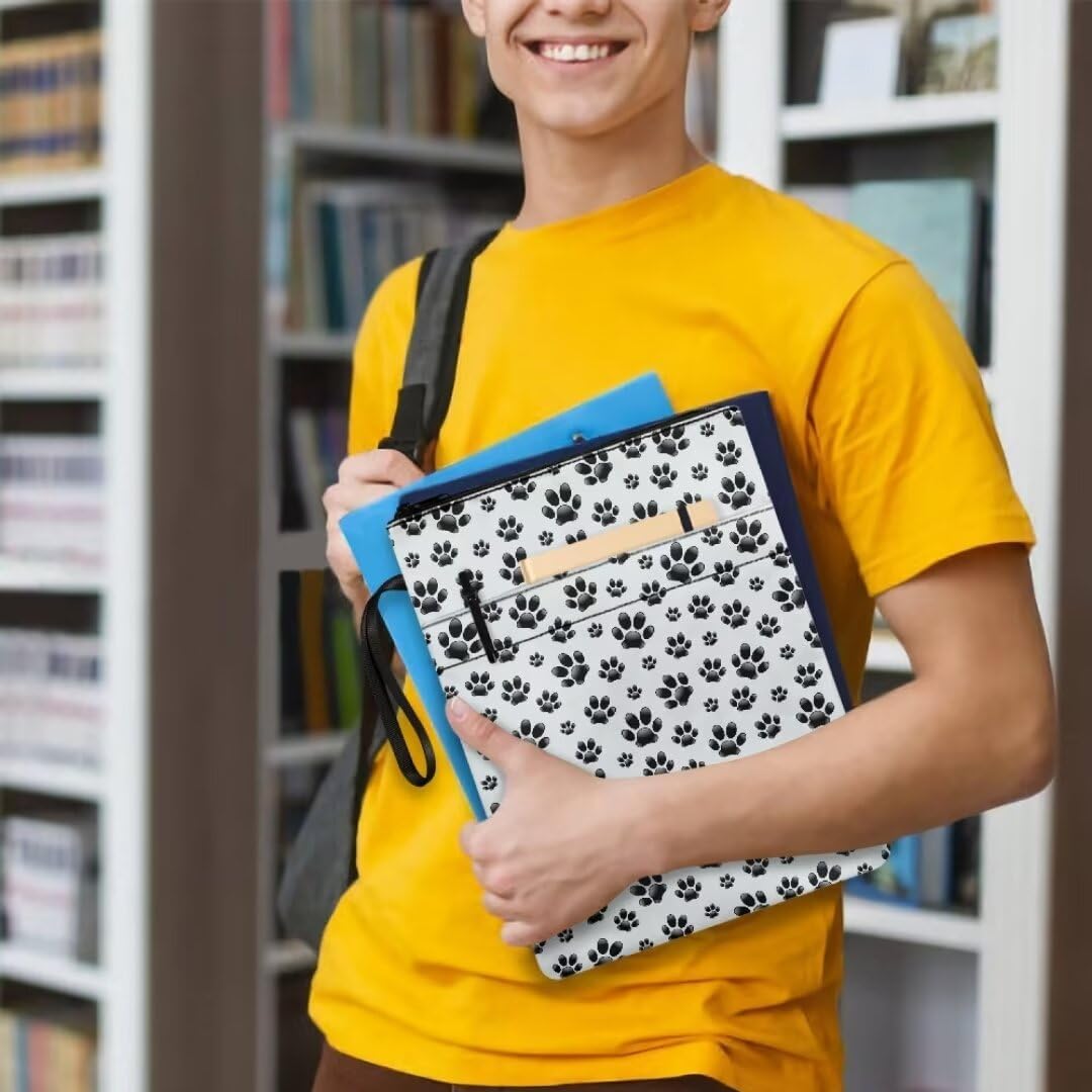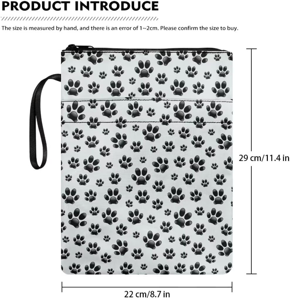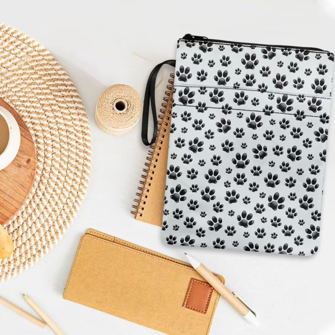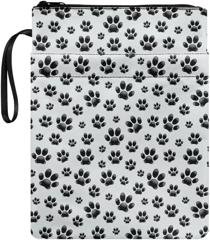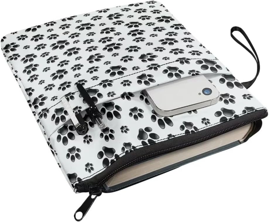 Custodia protettiva per libri con cerniera, custodia portatile per libri con tasca frontale, 29 x 21 cm, per donne, ragazze, figlie, motivo zampa nera, bianca