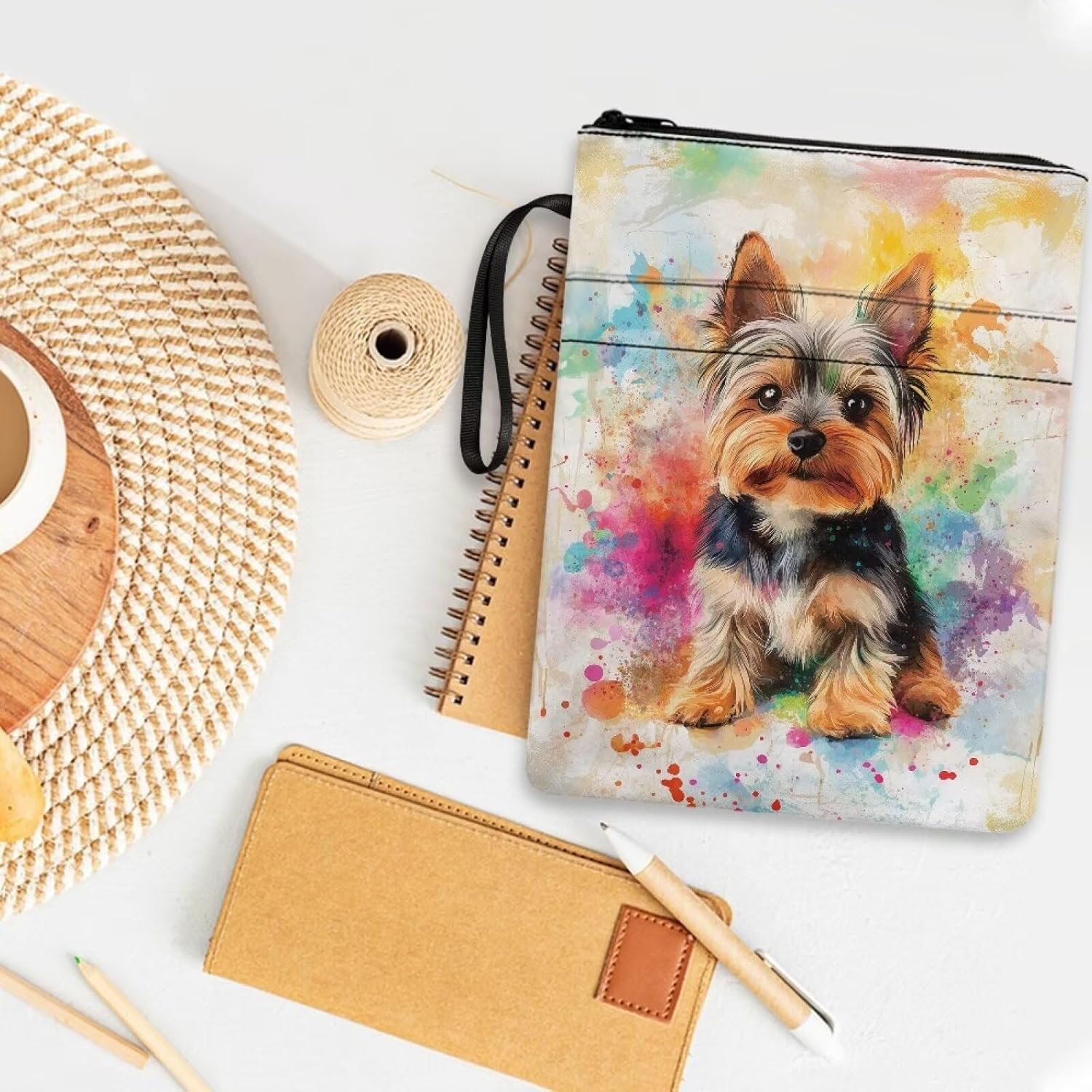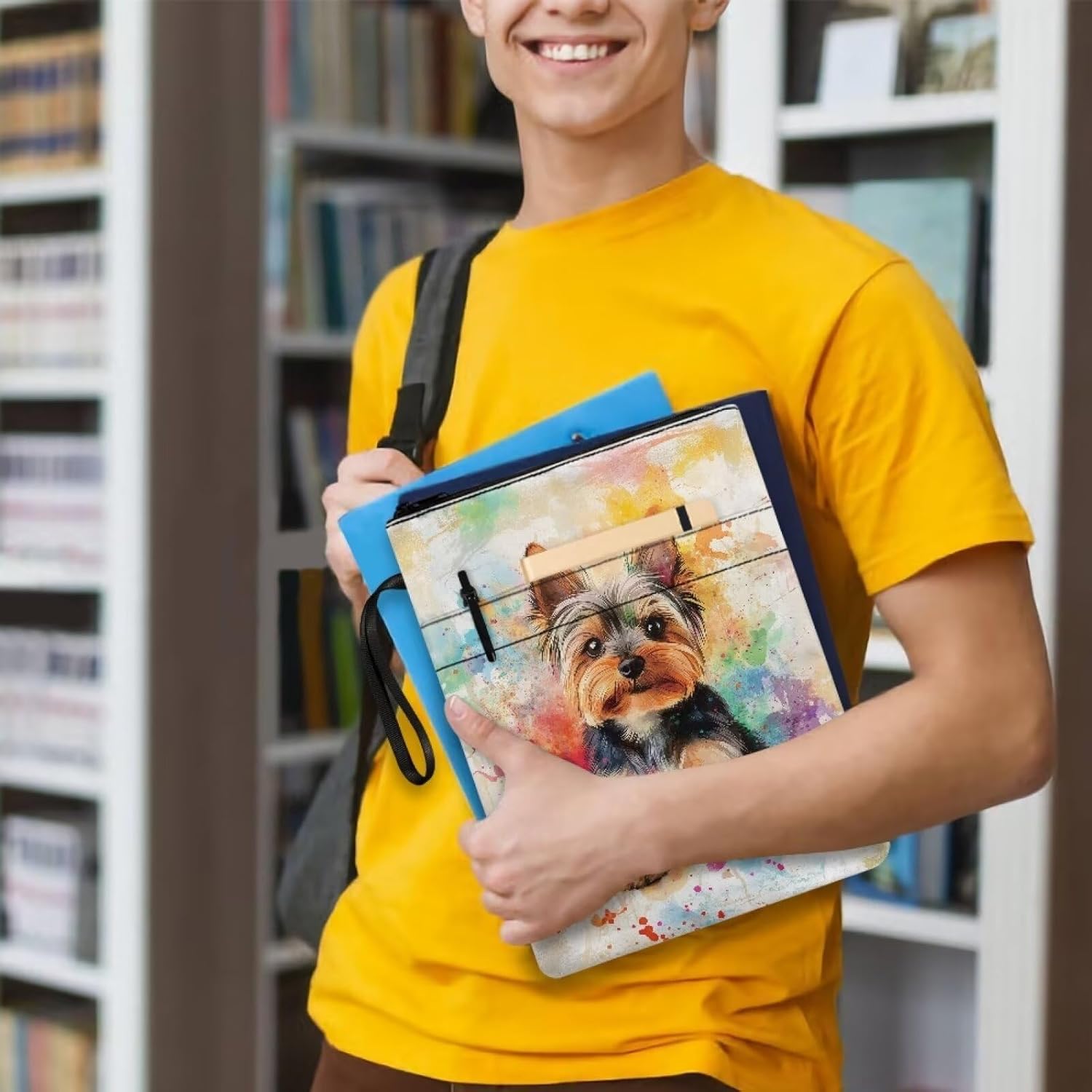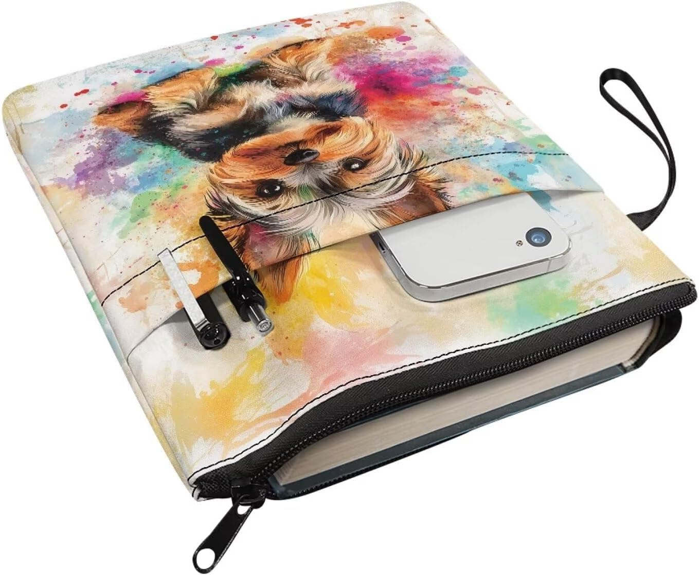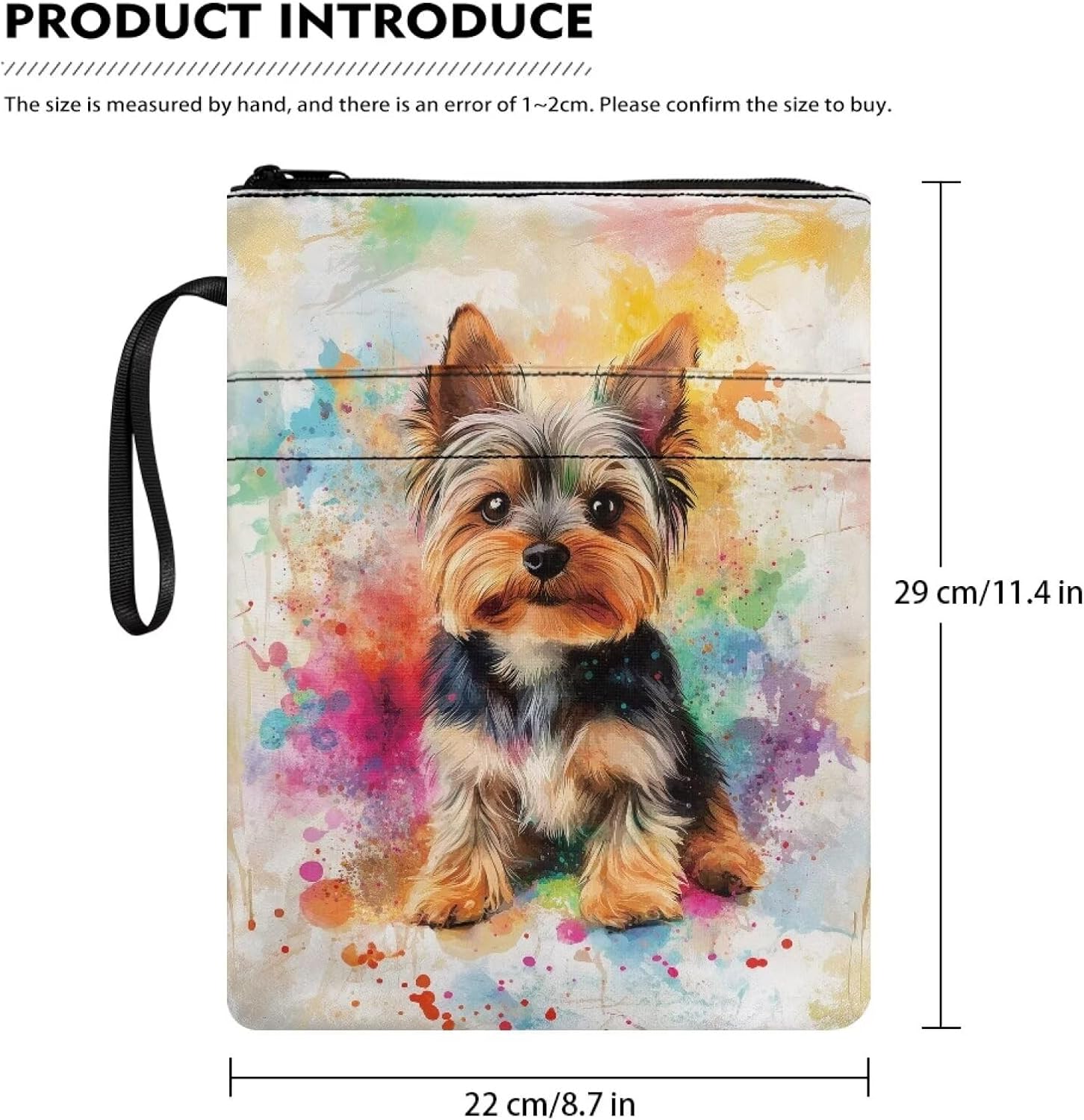 Custodia protettiva per libri con cerniera, per bibliotecari, 29 x 21 cm, Yorkshire Terrier Splash