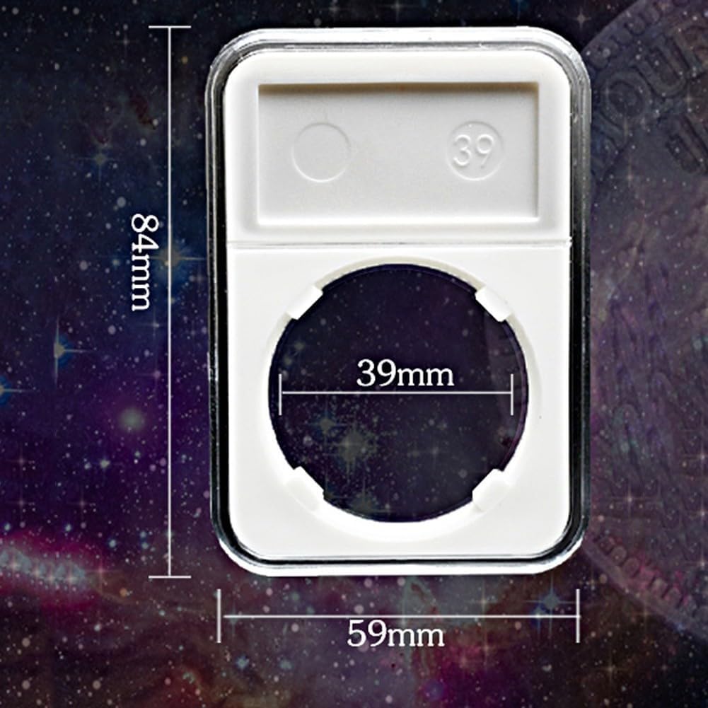 Struttura in materiale di alta qualità: realizzata in materiale PS, questa scatola per capsule di monete garantisce una protezione affidabile per il tuo prezioso . Diametro dell'anello interno da 39 mm: specificamente progettato per ospitare lastre di monete professionali da 39 mm, rendendolo una scelta ideale per esporre argento Indo China. [Elegante soluzione di visualizzazione] Il design elegante della custodia migliora l'aspetto visivo della tua collezione di monete, trasformando il tuo display in un'opera d'arte. Dimensioni compatte: misura circa 84 x 59 mm, questo organizer è efficiente nello spazio fornendo ampio spazio per il tuo .