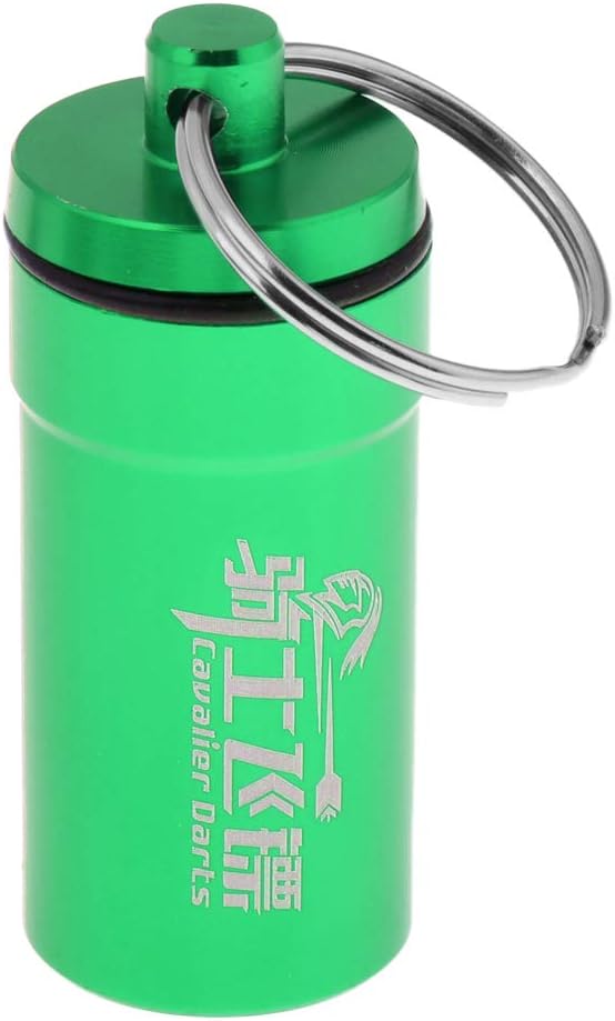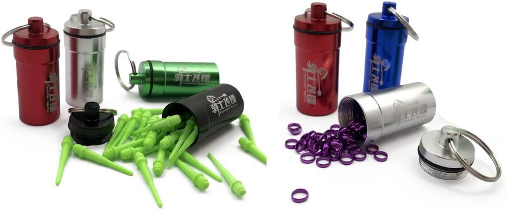 Realizzato in lega di alluminio, leggero e resistente da usare Dimensioni (altezza x diametro). : circa 4,5 x 2 cm Struttura filettata e con portachiavi, comoda da trasportare Colore: rosso / verde / arancione / argento / nero / blu (opzioni) Custodia portatile per freccette per punte morbide, risparmiatori/protezioni, rondelle, O-Ring o altri accessori per freccette