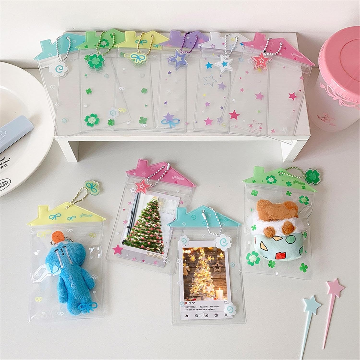 La custodia portatile per carte di credito in PVC trasparente è Questa custodia trasparente in PVC House Shape combina design stravaganti con abilità pratiche e offre una piccola bambola di peluche, un piccolo giocattolo farcito e carte da collezione, mentre è possibile organizzare lo spazio L'innovativa forma casalinga due volte più doppia rispetto a quella decorativa, si mescola perfettamente con l'estetica della stanza e allo stesso tempo protegge le vostre preziose miniature e carte da sporco e disallineamento Ideale per collezionisti di giocattoli, genitori che organizzano le stanze dei bambini e gli appassionati che hanno bisogno di un organizzatore di carte compatte per oggetti da collezione o forniture per ufficio Perfetto per l'organizzazione desktop in aree di apprendimento, display in camera da letto dei bambini o per riporre oggetti portatili durante viaggi di famiglia e congressi