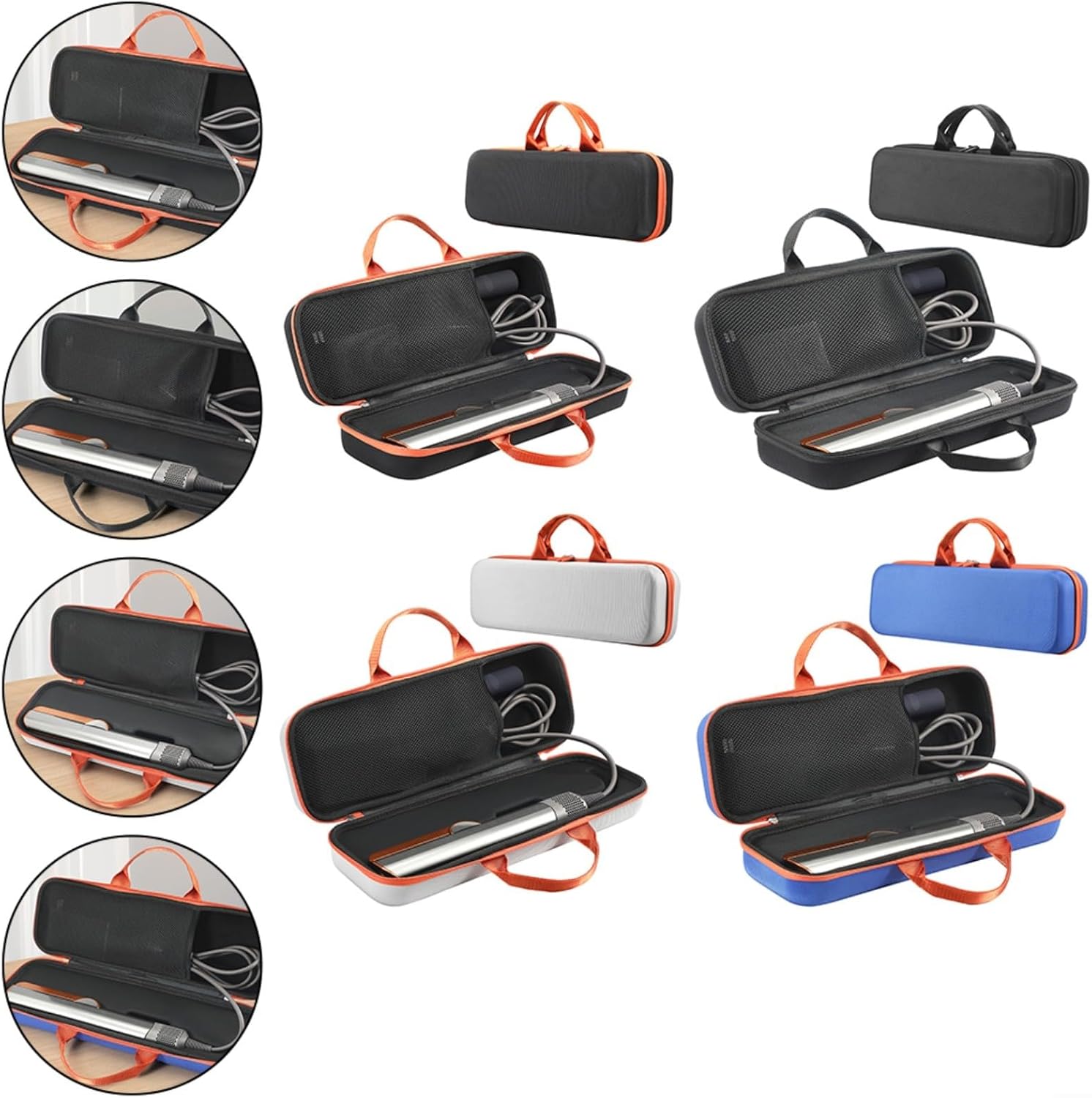 Custodia rigida di alta qualità: appositamente progettata per borse HT01, questa custodia rigida in EVA offre una vestibilità perfetta e la massima protezione per i tuoi accessori per la piastra dei capelli. 【Portatile e adatto ai viaggi】: con le sue dimensioni compatte e il design leggero, questa custodia consente un facile trasporto di borse e accessori HT01 durante il viaggio. Materiale protettivo: realizzata in materiale EVA antiurto, impermeabile e antigraffio, questa custodia garantisce una protezione duratura per i tuoi accessori per la piastra dei capelli. Conservazione e organizzazione sicuri: dotata di una robusta chiusura e di una tasca interna in rete, questa custodia offre una conservazione sicura e organizzata per i tuoi sacchetti e accessori, evitando grovigli o danneggiati. 【Comodo e facile accesso】: progettato non solo per riporlo, ma anche per un comodo accesso agli accessori della piastra per capelli. Il layout compatto e ben organizzato della custodia consente di recuperare rapidamente e facilmente i tuoi accessori.