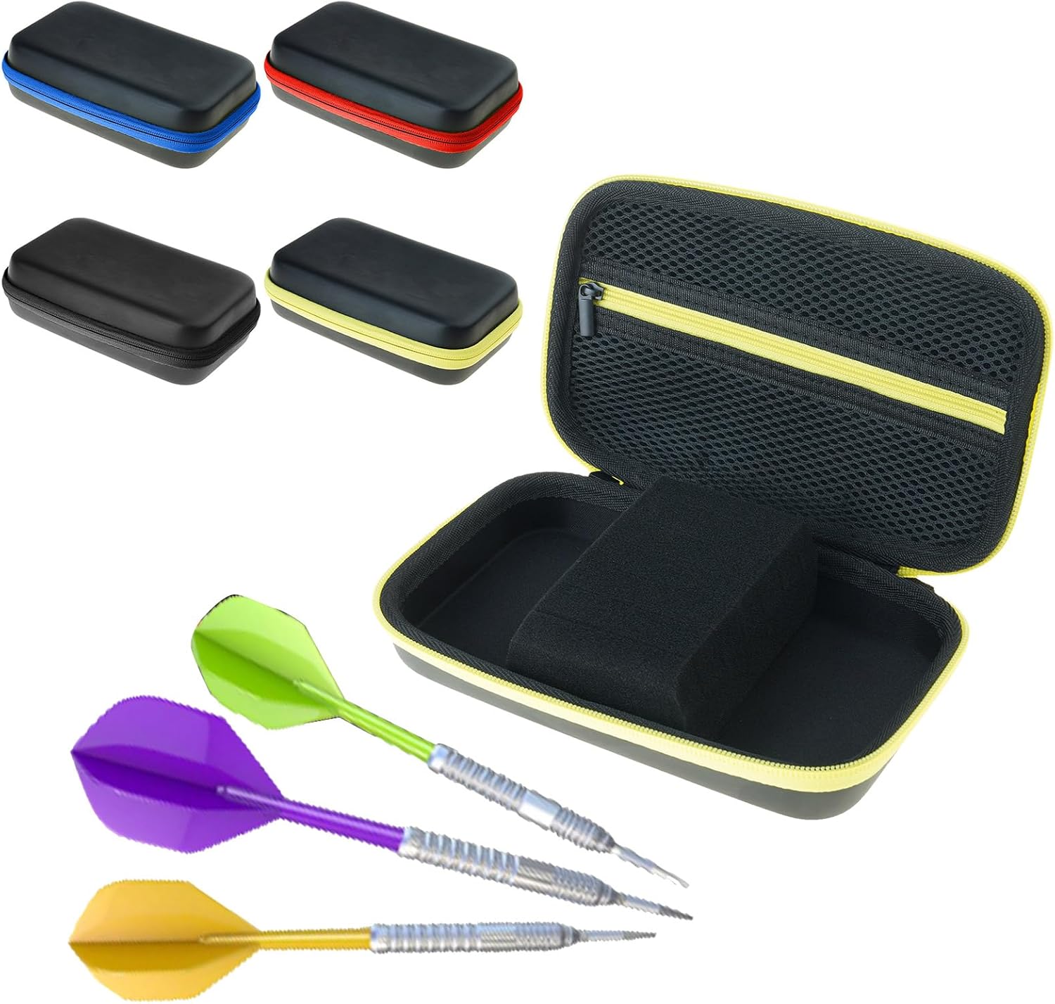 La custodia per freccette è dotata di un robusto sistema di archiviazione con elastico per contenere fino a 6 freccette in acciaio o morbide, garantendo che rimangano in posizione durante il trasporto Realizzata con materiali ad alta densità, questa borsa per freccette è impermeabile e resistente all'usura, con un morbido rivestimento interno per proteggere le freccette da graffi e danni Con il suo design compatto ma spazioso, la custodia offre comodità e affidabilità, rendendolo un partner essenziale per ogni gioco di freccette Perfetta per l'uso in luoghi di competizione, strutture di allenamento o per i viaggi quotidiani, questa custodia per freccette offre spazio organizzato per le tue attrezzature per freccette Ideale per giocatori professionisti di freccette, appassionati e atleti che partecipano frequentemente a competizioni, questa custodia soddisfa le esigenze degli utenti seri di freccette