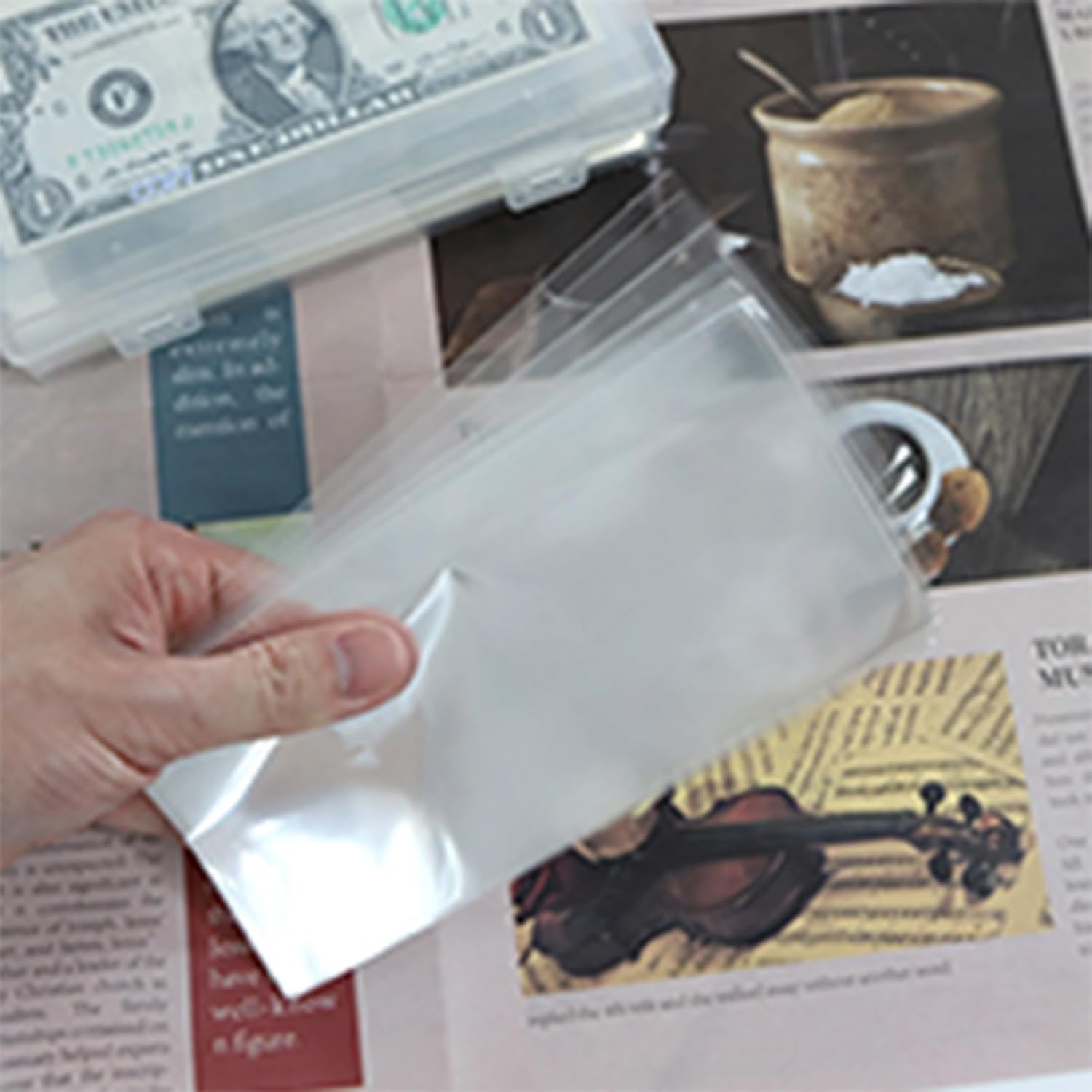 Display ottimale: migliora le tue banconote, monete commemorative e collezione da collezione con i nostri porta banconote trasparenti, ciascuno misura circa 17,2 x 8,1 cm. Le dimensioni del contenitore sono di circa 18 x 9,5 x 4 cm, mantiene i tuoi oggetti organizzati e ben esposti Uso di lunga durata: proteggi i tuoi contanti con le nostre custodie trasparenti; perfette per l'esposizione o la conservazione. Realizzati in OPP, resistono alla polvere e ai danni causati dall'acqua pur rimanendo robusti e innocui per la tua valuta Varie funzioni: conserva e mostra le tue banconote, valuta, banconote, biglietti, souvenir e altro ancora con facilità. Migliora il tuo gioco organizzativo senza sforzo Regalo premuroso: rafforza il tuo legame con gli amici che condividono l'amore per la raccolta di banconote, presentandole con la nostra custodia trasparente per banconote; rendendolo un regalo pratico ma bello per migliorare l'esperienza della collezione Buona protezione: offre una piacevole esperienza di raccolta, poiché questa custodia trasparente per banconote previene graffi su banconote o valute, rendendolo una buona protezione per banconote e banconote