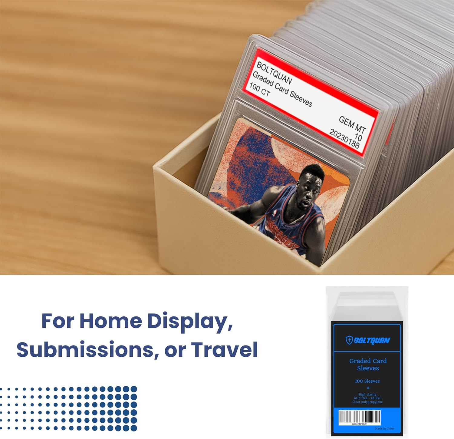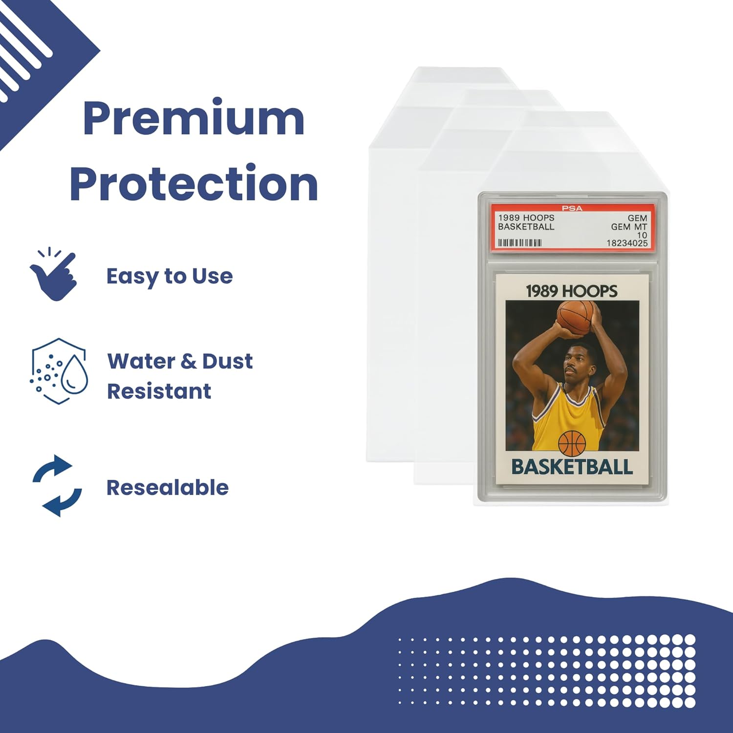 Vestibilità aderente per lastre PSA: progettate per adattarsi perfettamente alle carte standard PSA, le nostre custodie assicurano che le tue preziose carte collezionabili siano protette senza aggiungere ingombro o scivolamento. Display cristallino: realizzato in polipropilene ad alta trasparenza per un look elegante e professionale, mostra la tua collezione mantenendo visibile ogni dettaglio. Materiale sicuro per l'archiviazione: la struttura priva di acidi e PVC previene l'ingiallimento o la degradazione, rendendolo ideale per la conservazione a lungo termine e presentazioni professionali. Richiudibili e durevoli: ogni manicotto è dotato di un forte lembo richiudibile per un accesso rapido e una conservazione sicura delle lastre classificate PSA. Ideale per collezionisti che hanno bisogno di una protezione durevole e riutilizzabile in viaggio. Ideale per lo stoccaggio di massa, l'organizzazione delle carte o la manipolazione quotidiana: questa confezione da 100 mantiene le lastre PSA sicure e incontaminate.