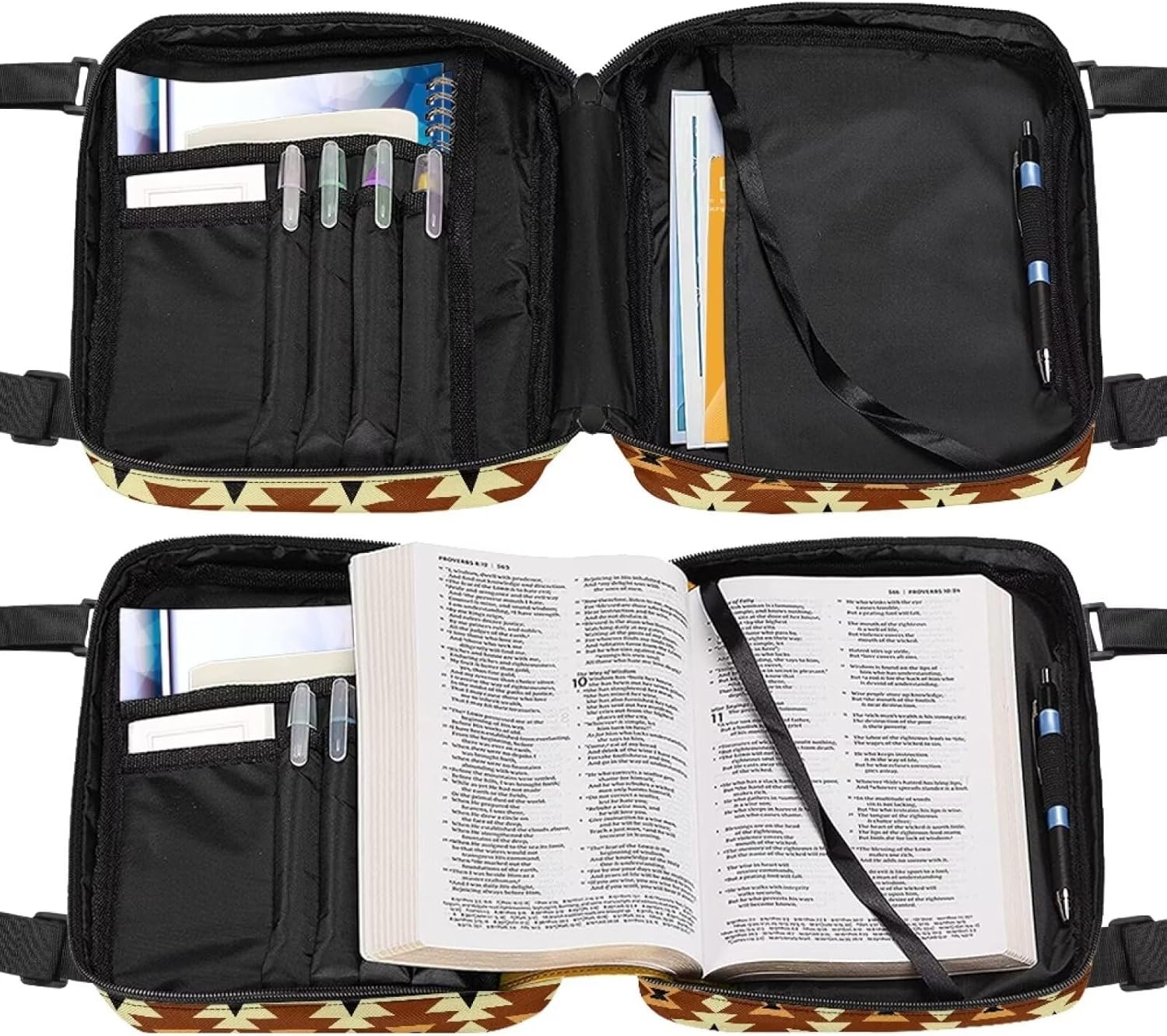 Materiale: questa custodia per bibbia è realizzata in tela di poliestere di alta qualità, leggera e resistente, morbida e robusta. Può proteggere la tua Bibbia o libro da graffi. Dimensioni: 28 cm x 6 cm x 22 cm, questa borsa biblica multifunzionale ha una tasca frontale con cerniera, l'interno ha 2 tasche laterali, 1 tasca verticale, 1 scomparto per segnalibri, 4 scomparti per penne e 1 cintura segnalibro. Multiuso: può essere utilizzato come porta bibbia, custodia per diario, copertina per libri in brossura, borsa per cosmetici, tablet, borsa per libri di studio biblico, ecc. Le tasche interne aggiuntive consentono di riporre evidenziatori biblici, penne, diari di preghiera, bollettini della chiesa, note di sermone, biglietti di preghiera, appunti. Portatile: questa borsa Bibbia regolabile è leggera e ha una forte cinghia in modo da poterla portare ovunque, come scuole, biblioteche. Protable quando si va tra la scuola domenicale, la chiesa, la chiesa dei bambini e da e per l'auto. Ottimo regalo: la copertina del libro biblico è progettata con vari motivi e colori diversi, e puoi anche personalizzare immagini personalizzate sulla borsa della Bibbia, adatta per adulti, donne, uomini, un regalo perfetto per compleanno, Natale, giorno del Ringraziamento per la tua famiglia e gli amici.