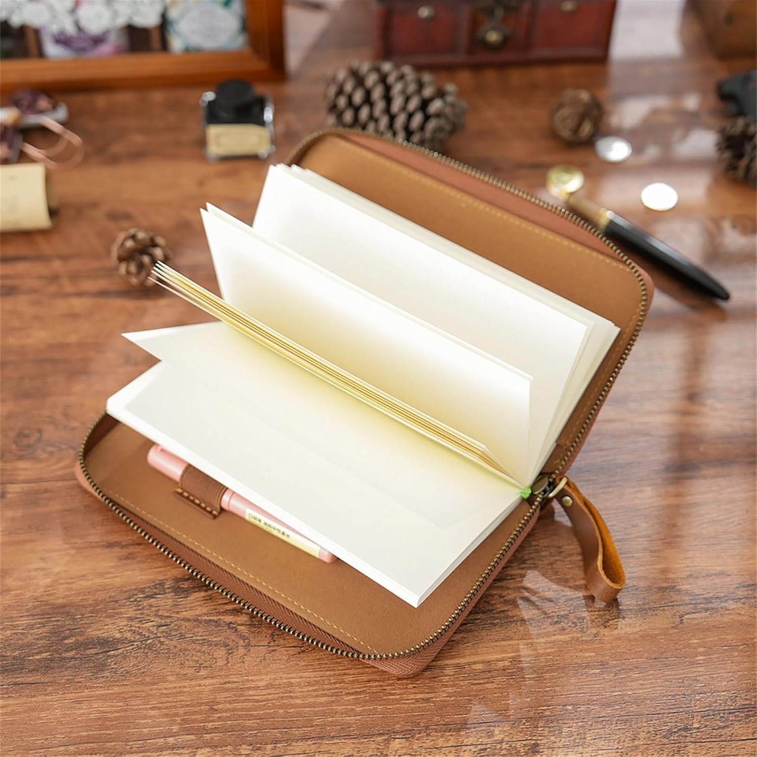 ♬Le copertine in pelle sono realizzate in pelle, resistenti all'usura, proteggono il tuo diario tascabile, il tuo piccolo taccuino, la tua carta per scrapbooking da sporco, macchie, umidità e graffi. ♬Le nostre copertine in pelle fatte a mano sono adatte per la carta di ricambio per quaderni da 7,28x3,54 pollici, per agende tascabili, piccoli blocchi note e piccoli diari. ♬Copertine in pelle con cerniera e 3 scomparti elastici per penne, possono contenere facilmente 3 penne stilografiche, penne a sfera, touch screen e matite. ♬Questa custodia in pelle può essere utilizzata anche come piccola borsa, portafoglio per zaini e custodia da viaggio per banconote e carte. ♬Un regalo premuroso per anniversario, compleanno o laurea per amici e familiari, o per chiunque ami scrivere, leggere, scrivere o essere un giornalista. Solo copertine in pelle, quaderno non incluso.