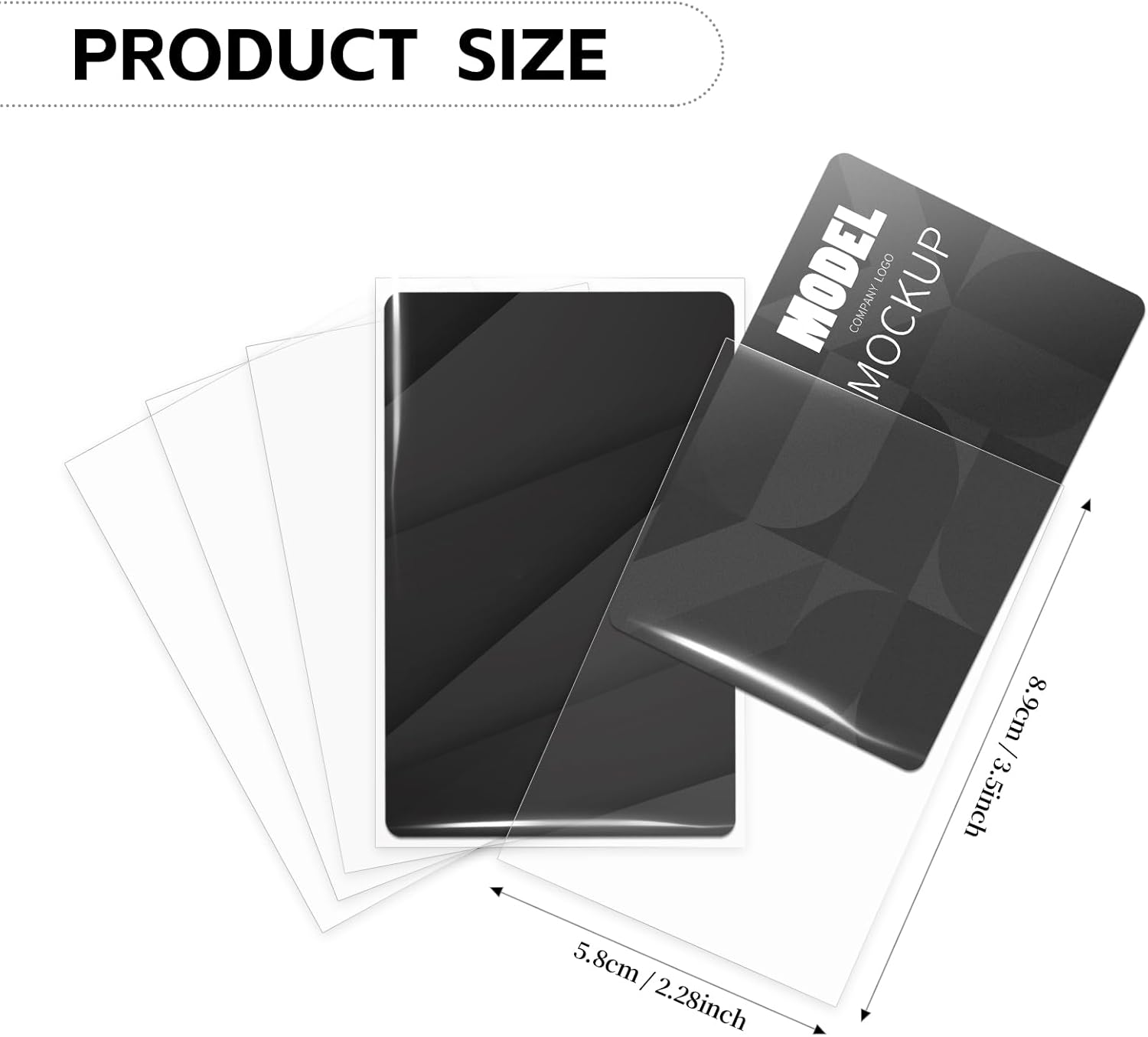 Materiale di alta qualità: le nostre protezioni per carte sono realizzate in materiale PP, impermeabile e antipolvere. Con design trasparente su entrambi i lati, può massimizzare la chiarezza e la leggibilità delle tue carte. Contenuto della confezione: ci sono 50 custodie per carte in una confezione, sufficienti per l'uso quotidiano e la sostituzione. Se hai molte carte, allora questa protezione per carte è perfetta per te. Dimensioni: la nostra protezione per carte misura 58 mm x 89 mm, compatta e leggera, facile da trasportare e riporre, si adatta facilmente alla maggior parte dei portafogli o borse comuni senza aggiungere ingombro. Ampia gamma di usi: adatto per mini foto, coupon, carte da gioco o altre carte di dimensioni simili. Sono la scelta regalo perfetta per bambini e amici che amano collezionare carte. Design speciale: le protezioni per carte sono progettate con un'apertura speciale per un facile inserimento e rimozione delle carte. Basta tenere la protezione della carta piatta o verticale e le carte non cadranno.