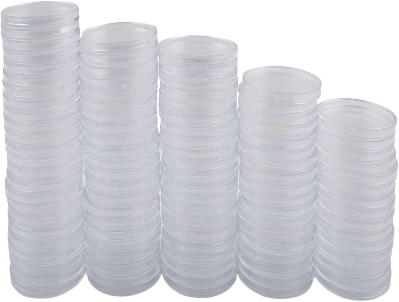 Comoda apertura a mezzaluna: il portamonete in plastica presenta un design con apertura a mezzaluna, che lo rende facile e comodo da aprire. Protezione sicura: progettata per fornire una protezione sicura per la tua collezione di monete, questa custodia assicura che le tue monete rimangano al sicuro e intatte. Uso versatile: perfette per le tue collezioni di monete o come premuroso per ogni occasione, queste capsule per monete sono una grande aggiunta alla collezione di qualsiasi appassionato di monete. Costruzione: realizzate in materiale plastico trasparente, queste capsule rotonde per monete sono robuste e Possono resistere all'uso quotidiano e mantenere le monete ben conservate. Dimensioni e quantità: misura circa 38 mm di diametro e 5 mm di altezza, questo set include 100 capsule per monete, che consentono di conservare e organizzare un gran numero di monete.