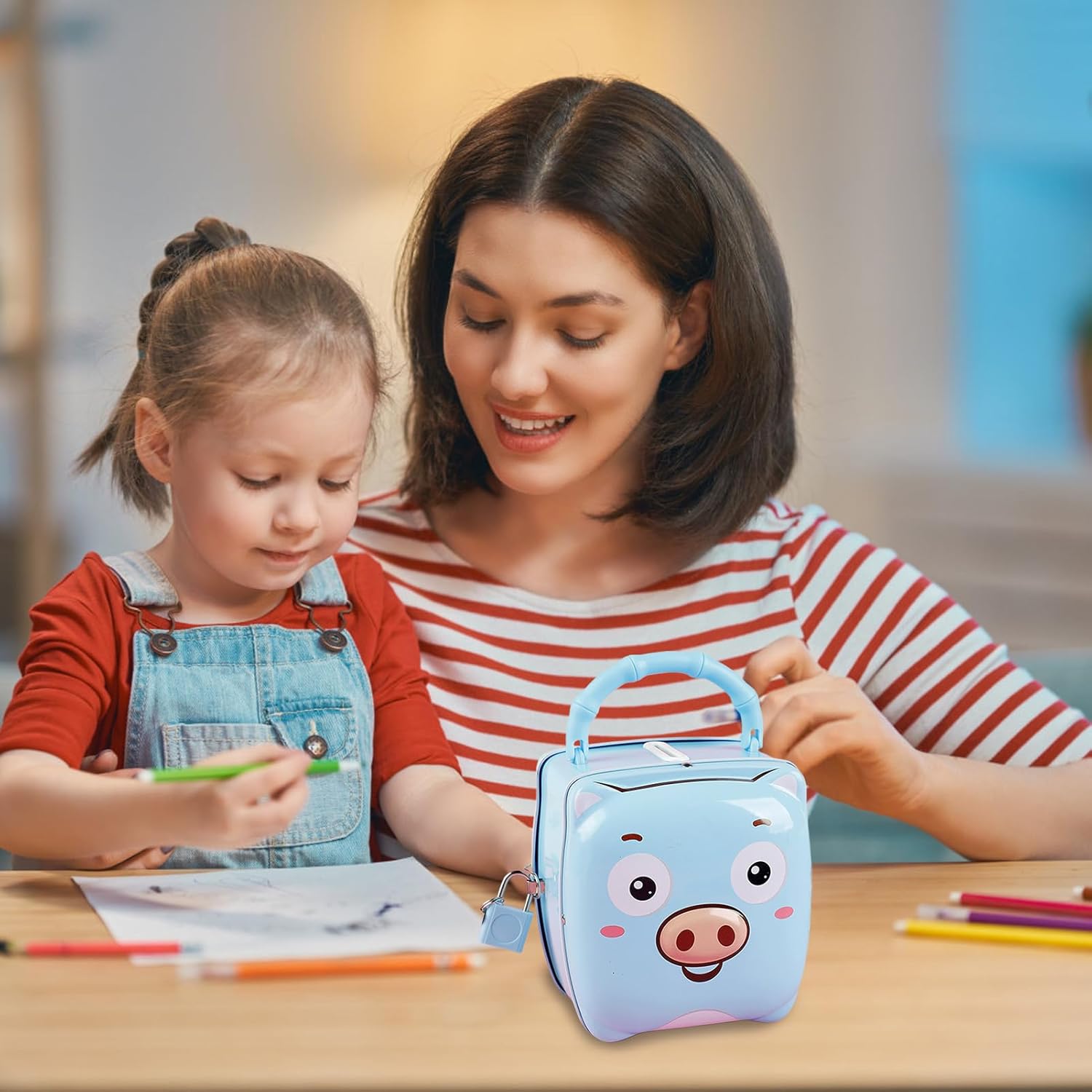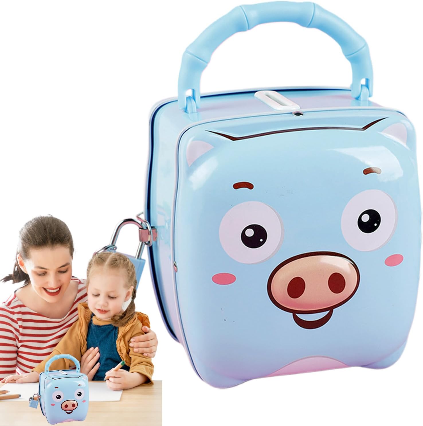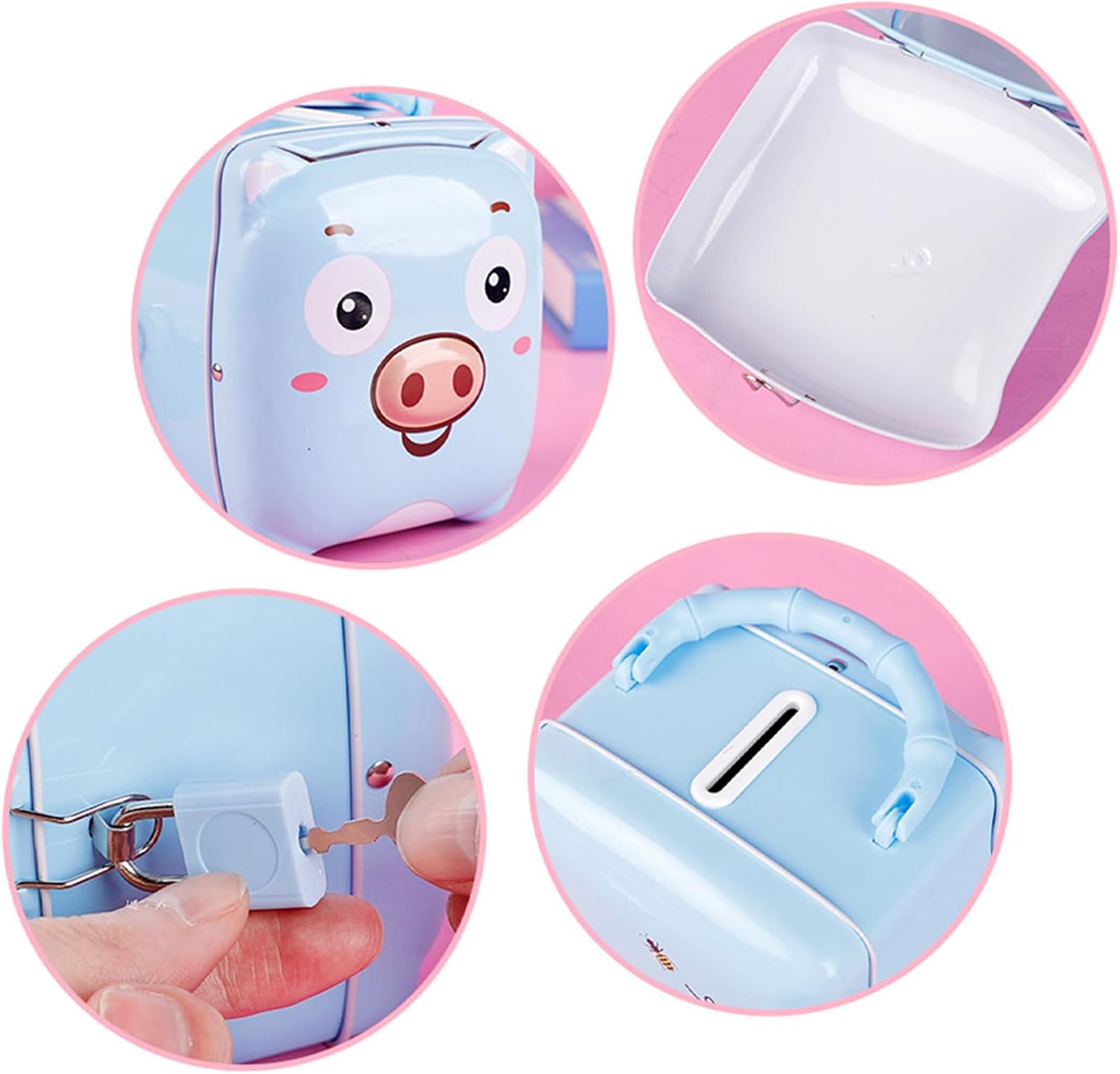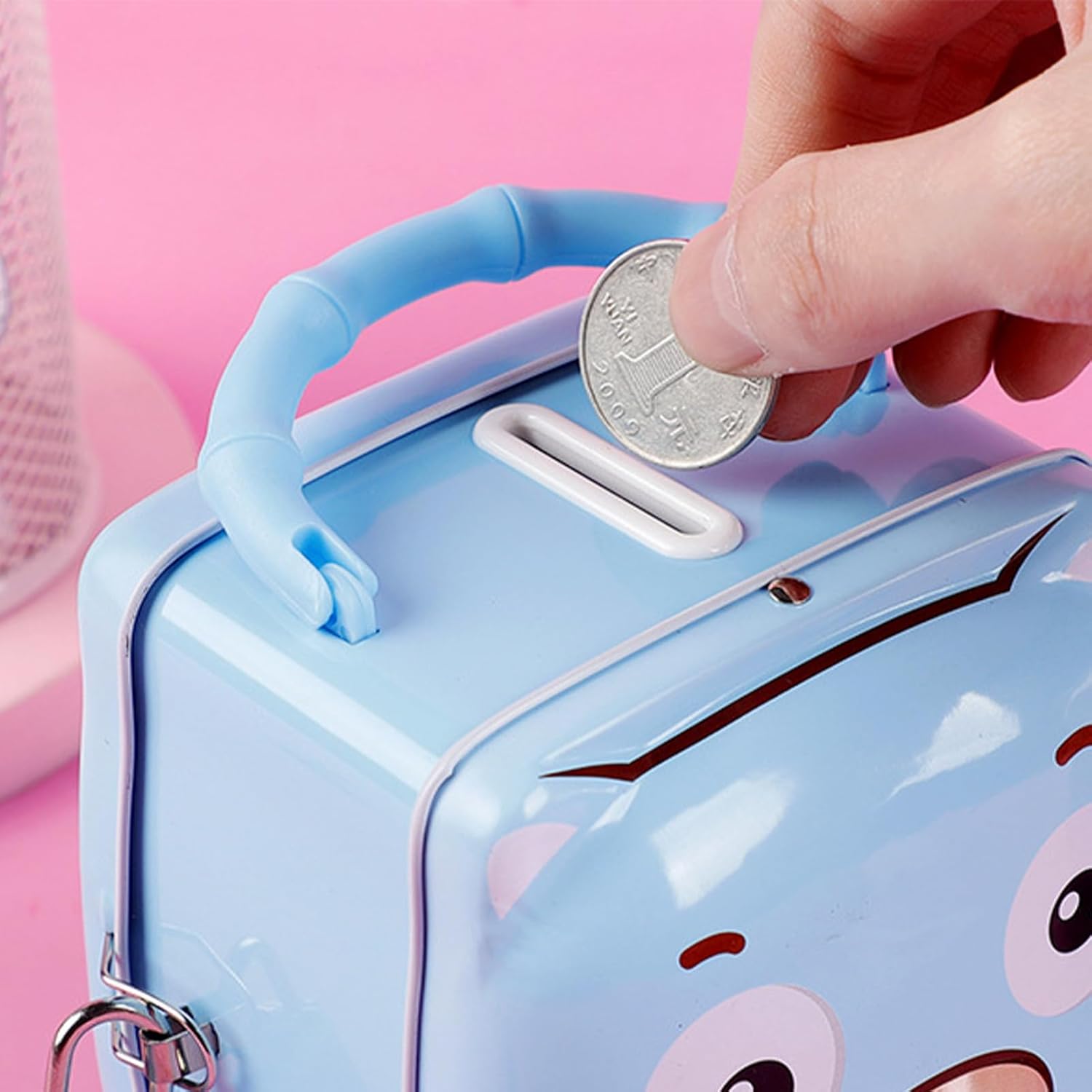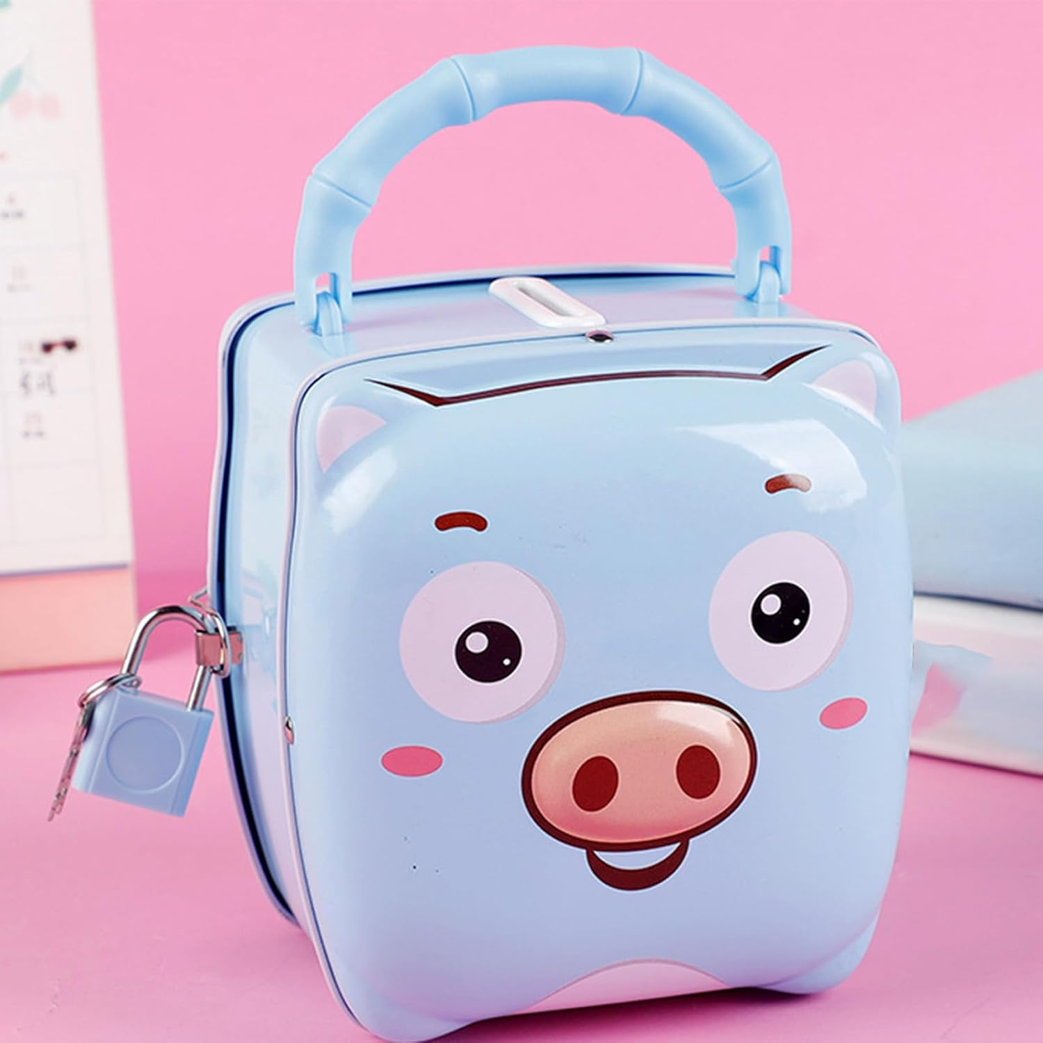 Adorable and Secure Small Cash Box with Key Lock for Kids: Designed with a cute, child-friendly look and a reliable key lock, this money saving box encourages good saving habits while keeping and cash safe from accidental spills or little hands Portable Metal Construction with Handle for Easy Carrying: Lightweight yet sturdy metal build includes a convenient handle, making it easy for kids to carry their savings around the house or take it on trips, school, or playdates Perfect Nursery or Desk Ornament That Combines Function and Fun: Adds a charming decorative touch to children’s rooms or desks while serving as a practical bank, teaching kids the value of money and responsibility in a fun way Compact Size Ideal for Small Savings and Pocket Money Storage: Designed to hold , bills, and small valuables without taking up much space, making it great for bedroom shelves, study desks, or play areas Safe and Compact Design for Long-Term Use by Boys and Girls: Built to withstand everyday use, the metal safe is designed to keep kids’ money protected and organized, helping parents foster early financial awareness in a fun, interactive way