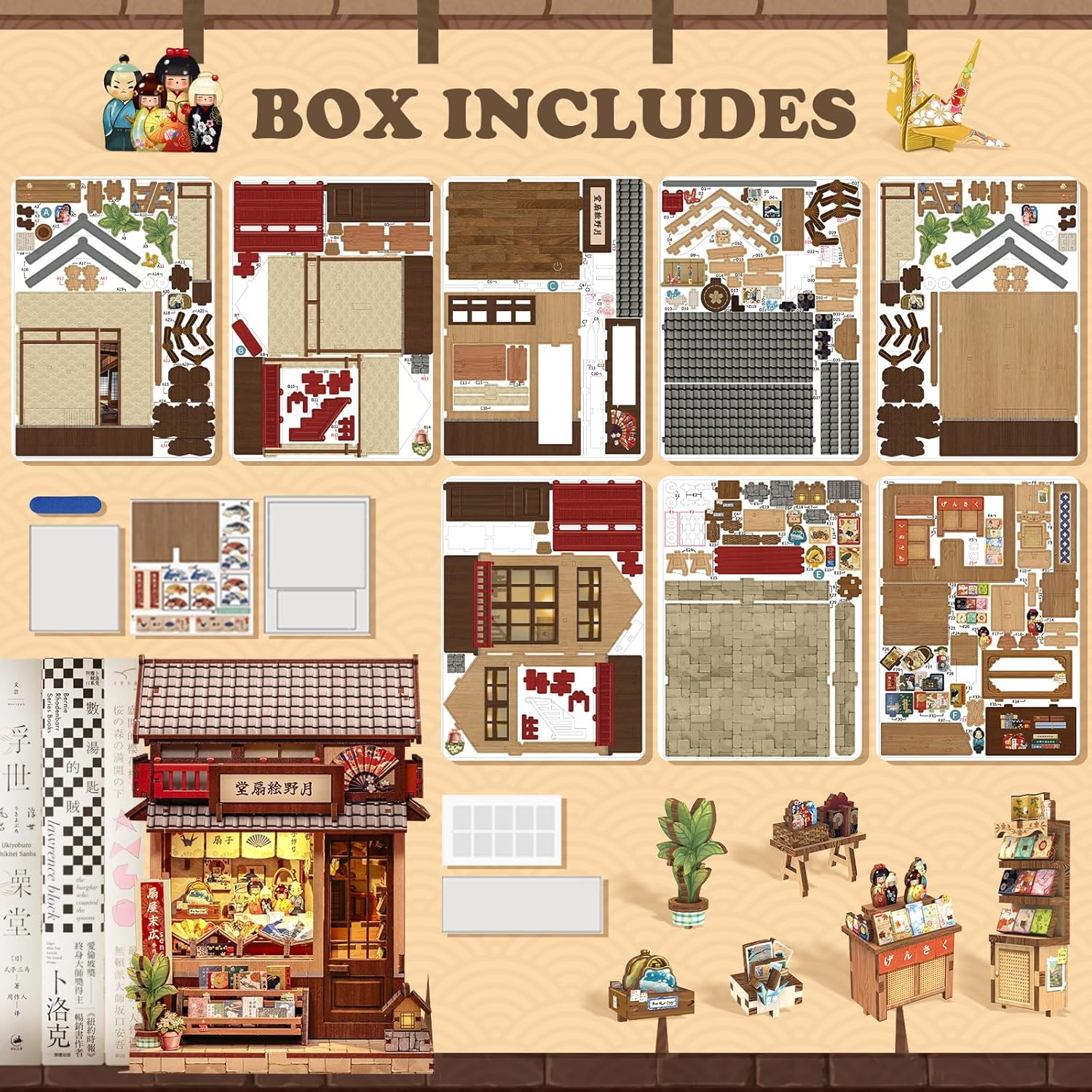 【Tsukino Esen-dō Book Nook Haus】Ha scelto il tema "Tracce del vento, calore della carta" e combina elementi tradizionali giapponesi con l'attuale estetica culturale e creativa per creare uno spazio silenzioso e caldo con cura artigianale. All'esterno vengono utilizzate porte scorrevoli in legno a griglia, ringhiere cremisi, striscioni in tessuto e lanterne di pietra per creare un'atmosfera atmosferica. Un capro pubblicitario di libri fuori dalla porta attira le persone a sperimentare la cultura delle materie 【Puzzle 3D】La nostra scrittura 3D è realizzata in legno naturale puro; le forme finite sono robuste, durevoli e tutti i componenti sono lavorati con laser. Il legno può essere facilmente rimosso dal telaio, in modo che si adatti perfettamente quando lo si monta. È ideale per persone di età superiore ai 14 anni. Potrete godere di puzzle 3D unico 【Regalo Perfetto - Decorazione Ricercata】I set di Case delle bambole rappresentano la combinazione ideale per la decorazione di ambienti: abbellisci la tua libreria o scrivania, arricchita da un'illuminazione più attraente, un mondo ricco di dettagli e scene vivide. Regala questo set in miniatura come dono di compleanno, o condividilo con famiglia, madre, figlia, amici o partner per rafforzare l'intimità 【Kit Book Nook con Luci LED】Questo set angolo book nook è realizzato con dettagli squisiti, ben oltre il livello dell'artigianato ordinario. Non solo esteticamente gradevole, ma anche dotato di luci LED touch-sensitive, l'atmosfera creata dall'illuminazione lo rende affascinante in qualsiasi ambiente. È un prodotto unico che unisce funzionalità e bellezza 【Set DIY per Adulti】Servizi di alta qualità. "book nook di alta qualità". sono accuratamente controllati prima che le attrezzature siano consegnate e assicurarsi che tutte le parti siano impeccabili. Se ci sono problemi con l'installazione, è possibile ottenere il supporto corrente con l'aiuto di Cutefunn, che consente anche la sostituzione gratuita di parti rotte
