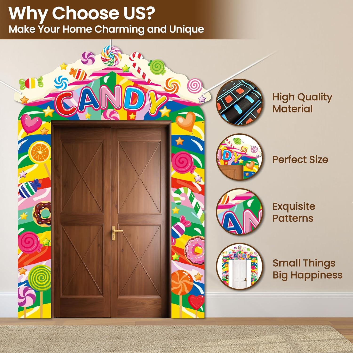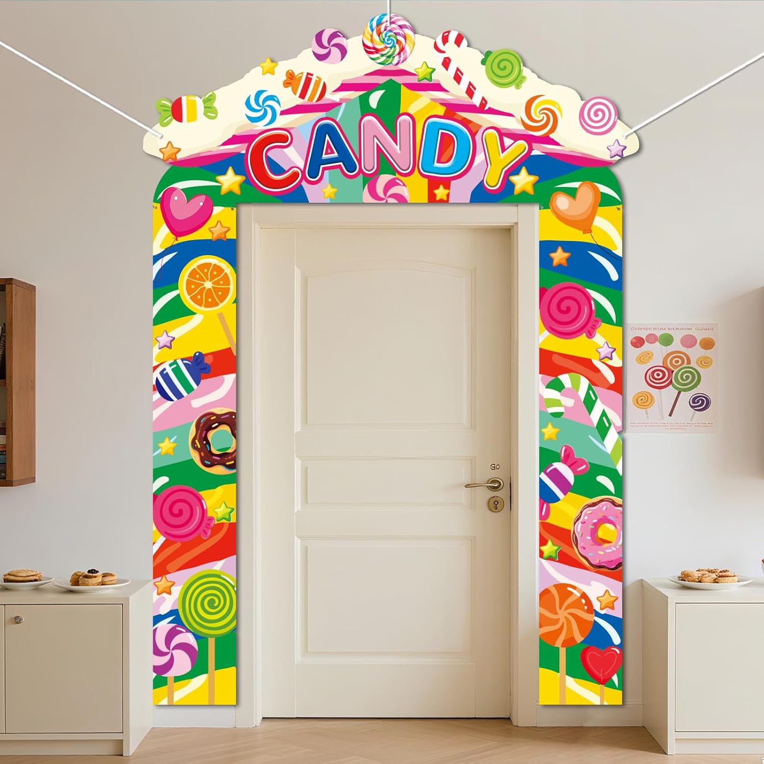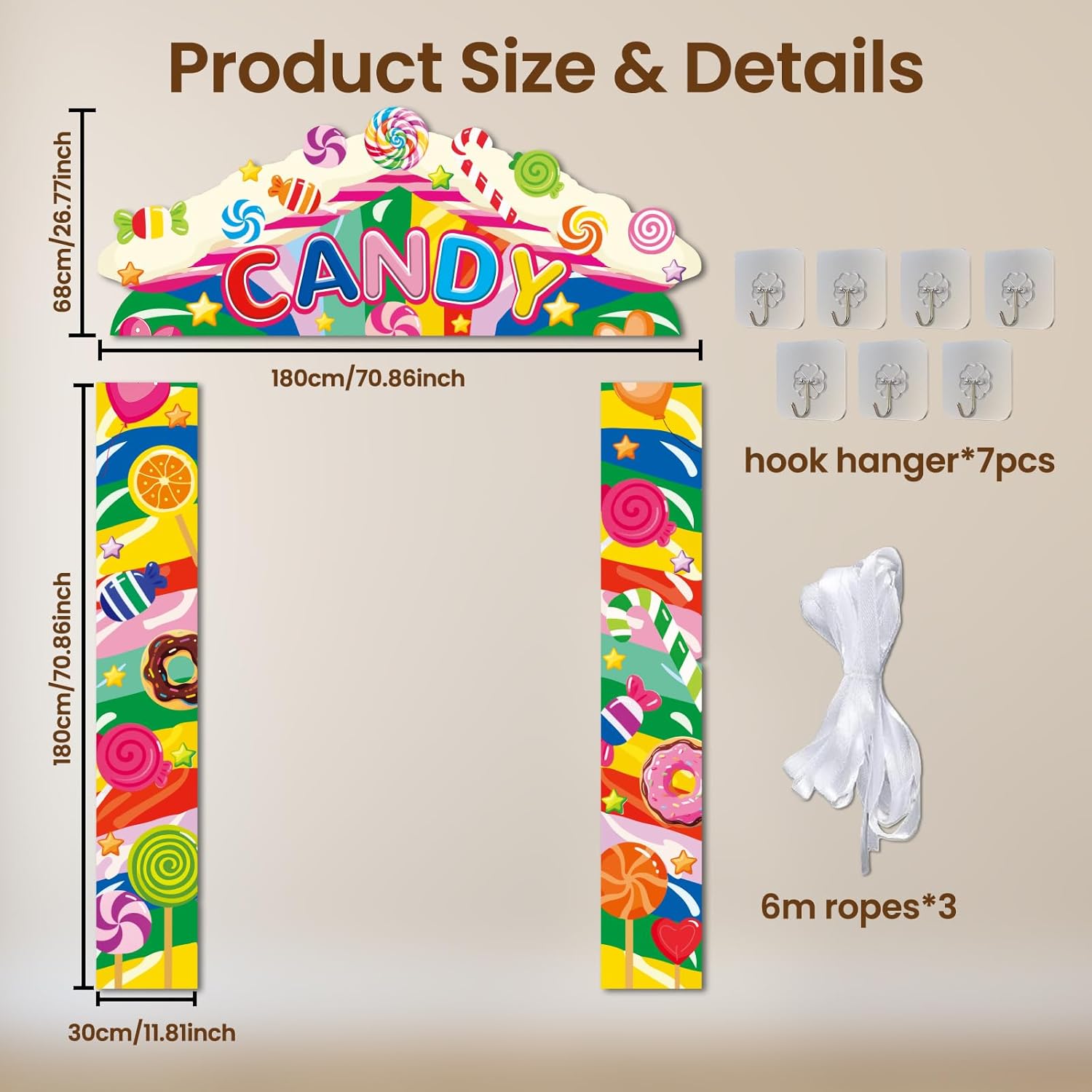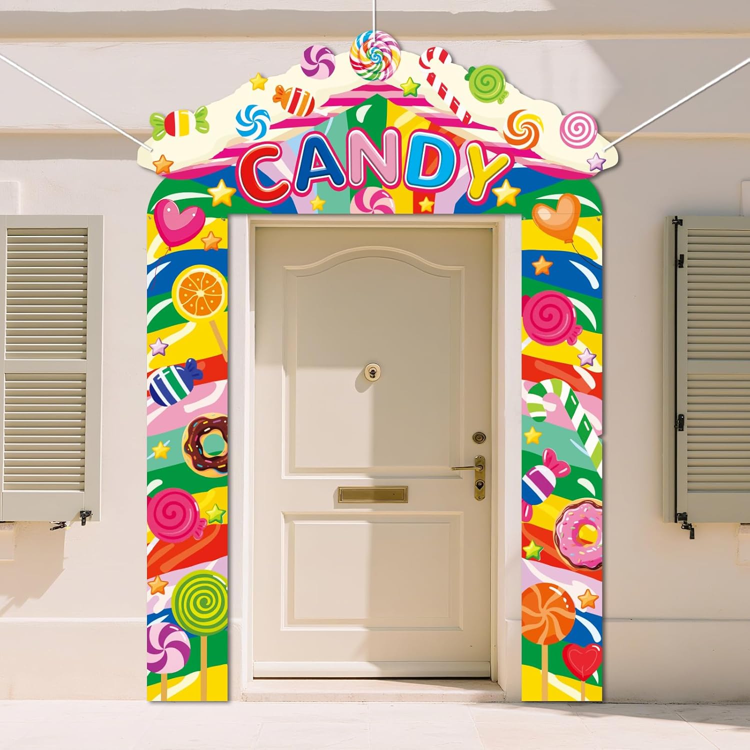 Temi entusiasmanti: scegli tra design come Cowboy del selvaggio West, Eroe coraggioso, Squalo pericoloso, Dinosauro ruggente, Emozionante razzo spaziale e astronave, Veicoli da costruzione, Auto da corsa veloce, Dolci caramelle o Serata cinema - perfettamente su misura per gli interessi di tuo figlio! Crea un'esperienza d'ingresso coinvolgente e momenti fotografici indimenticabili Decorazione a tutto tondo: include 1 banner superiore (145 x 57 cm) + 2 banner per porta (180 x 36 cm) e una corda da 6 metri per decorare il tuo portico dall'alto verso il basso a tema. Ideale per portici, pareti o come sfondo per una festa. La grafica accattivante attira l'attenzione di tutti anche dalla strada! Facile da usare: ogni set include 7 ganci, fori preforati e una corda inclusa per un montaggio rapido. Non sono necessari strumenti: basta appenderlo e iniziare a festeggiare. Adatto alle foto e durevole: realizzato in poliestere spesso e resistente agli strappi con stampa resistente allo sbiadimento. Rimane colorato sotto il sole e la pioggia: ideale per feste al chiuso e all'aperto. Il materiale robusto resiste anche alle feste più sfrenate ed è facile da riporre Perfetto per ogni celebrazione: che si tratti di un'accogliente riunione di famiglia, di una festa di compleanno, di una festa a tema o di una festa di laurea, questo set di striscioni per porta si adatta ad ogni occasione e rende il vostro evento indimenticabile