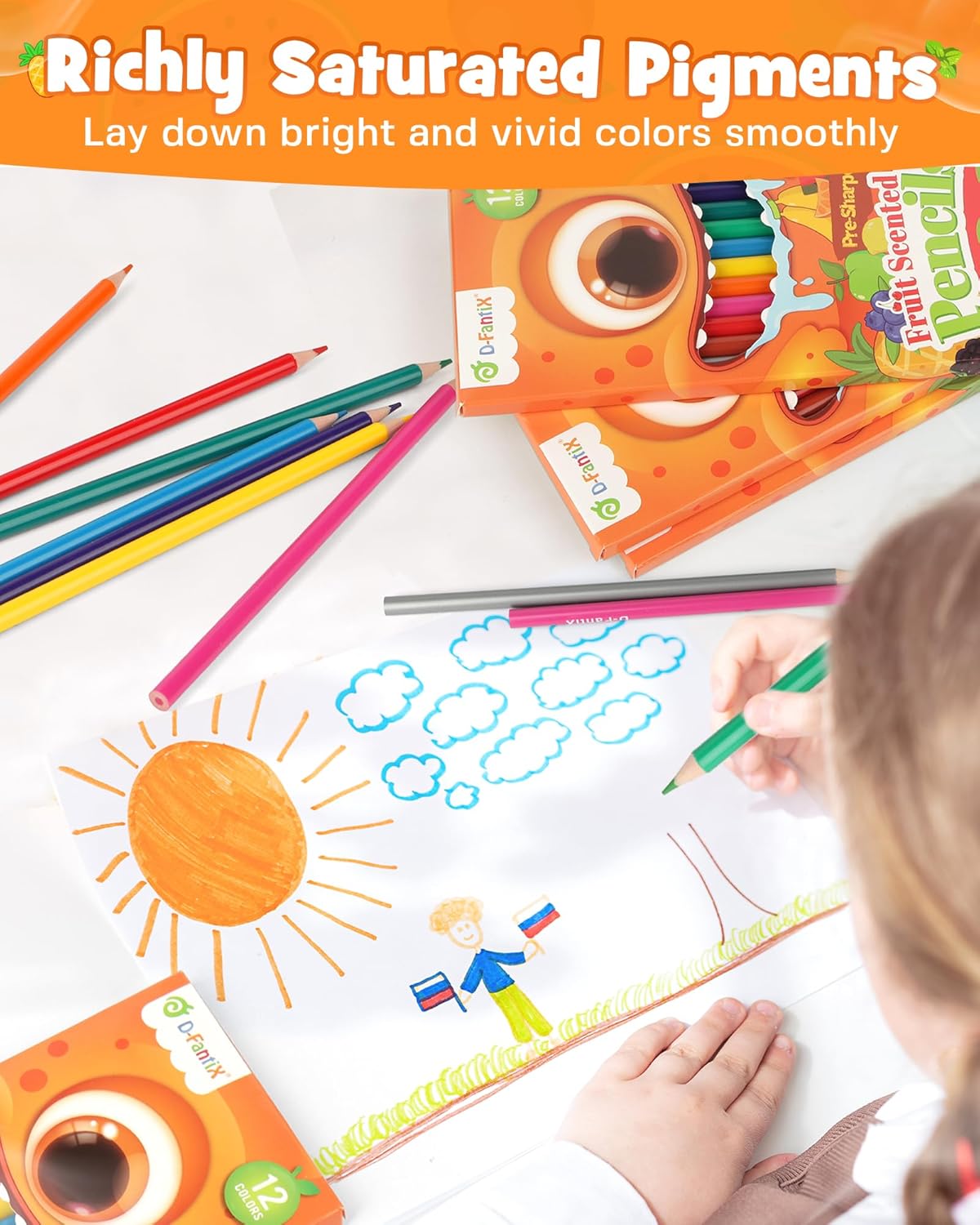 288 matite profumate alla frutta: 12 colori vivaci abbinati a 12 profumi fruttati adatti ai bambini (fragola, arancia, uva, limone e altro)! Goditi fragranze ricche e durature che durano per secoli! Queste matite colorate mantengono il loro profumo incredibile, indipendentemente da quanto scrivi, coloriamo o crei Pre-affilato e infrangibile: uso istantaneo, zero problemi. Insegnanti e genitori adorano come queste matite con impugnatura rotonda aiutano i bambini a colorare ordinatamente senza affaticamento della mano. Ideale per attività di gruppo, arte e artigianato o preparazione rapida di regali, basta distribuire e creare Confezione da 24 pezzi: suddivisi in 12 matite colorate individuali per bomboniere di compleanno, calze natalizie o sacchetti regalo. Fai scorta di aule, asili, donazioni o campi estivi Nucleo forte ed ergonomico: le nostre matite colorate atossiche con nucleo in cera scorrevole, il colore dura e scrive senza intoppi. Le canne rotonde favoriscono una presa corretta, mentre le punte resistenti alla rottura riducono la frustrazione. Colorazione senza disordine anche per i più piccoli padroneggiare queste matite colorate Approvato dagli insegnanti e amato dai bambini: la confezione divertente a tema mostro suscita eccitazione, mentre gli educatori raccomandano queste matite puzzolenti per lezioni d'arte, ricompense comportamentali. Miscela creatività con fragranza rinfrescante: ideale per progetti scolastici, attività di messa a fuoco o divertimento nei giorni di pioggia