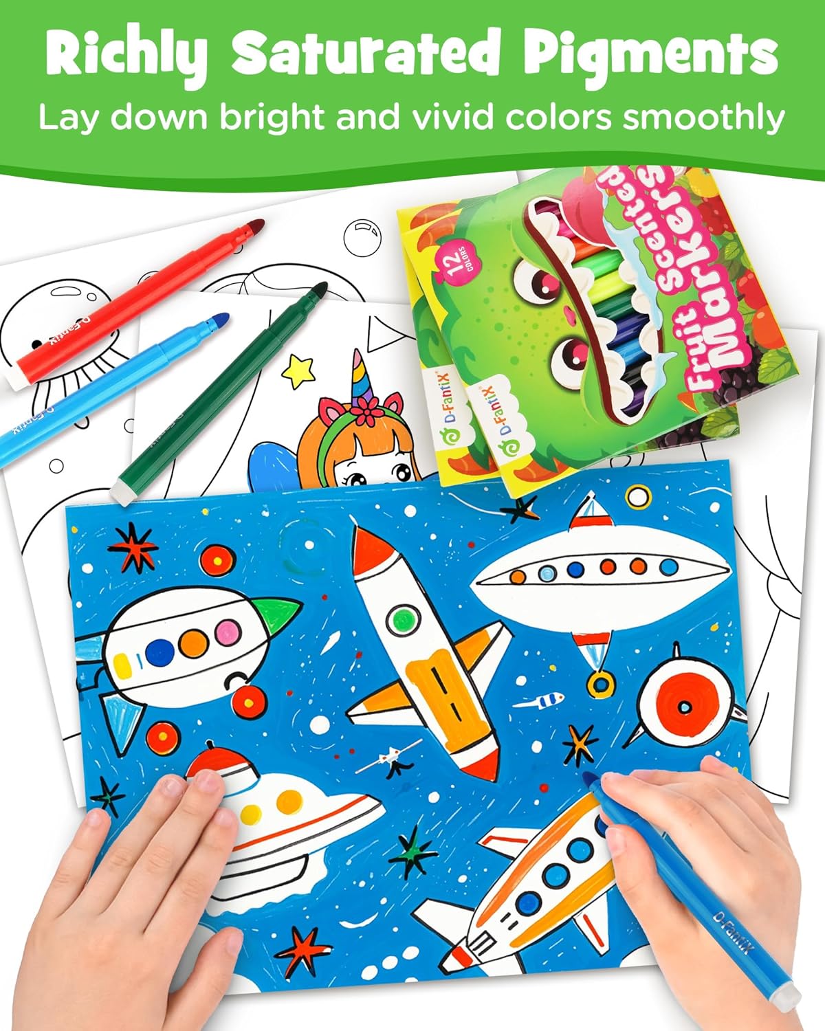 Confezione da 144 pennarelli sciolti: 12 confezioni (12 pennarelli ciascuno) in 12 colori vivaci: rosso, arancione, giallo, verde, verde scuro, blu, blu scuro, viola, rosa, marrone, nero. Ideale per aule, asili nido o feste di artigianato in famiglia. Perfetto per regali di festa, regali o per riempire sacchetti per dolcetti, abbastanza per ogni bambino da colorare e creare 4 profumi fruttati irresistibilmente: ogni pennarello colorato emana veri aromi di frutta: fragola dolce, mela croccante, mirtillo succoso e banana tropicale. I deliziosi profumi aggiungono un tocco sensoriale alla colorazione, rendendo il tempo d'arte più attraente e divertente. Trasforma ogni disegno in un'avventura multisensoriale che alimenta creatività e curiosità Lavabile e atossico: la tranquillità dei genitori. Questi pennarelli da colorare sfusi hanno un inchiostro facile da lavare che si risciacqua dalla pelle, dai vestiti e dalla maggior parte delle superfici. I pennarelli colorati sono realizzati con inchiostro atossico sicuro per i bambini, sono certificati sicuri per i bambini, in modo da poter fidarsi di loro per bambini in età prescolare, bambini piccoli e grandi bambini Design confortevole: le barili lisce e facili da tenere sono progettate per le dita piccole, riducendo l'affaticamento durante le lunghe sessioni di colorazione. Che si tratti di scarabocchiare, colorare o armeggiare, può dare vita a ogni capolavoro. Perfetto per sviluppare le capacità motorie e divertirsi Regalo ideale per i bambini: i disegni interessanti sono più popolari tra i bambini. Dagli elenchi di forniture per il rientro a scuola alle calze per le vacanze, cesti di Pasqua o regali di compleanno, questo set spunta tutte le Gli insegnanti lo adorano per i premi in classe e le attività di gruppo, i bambini non possono resistere a profumi divertenti e colori vivaci
