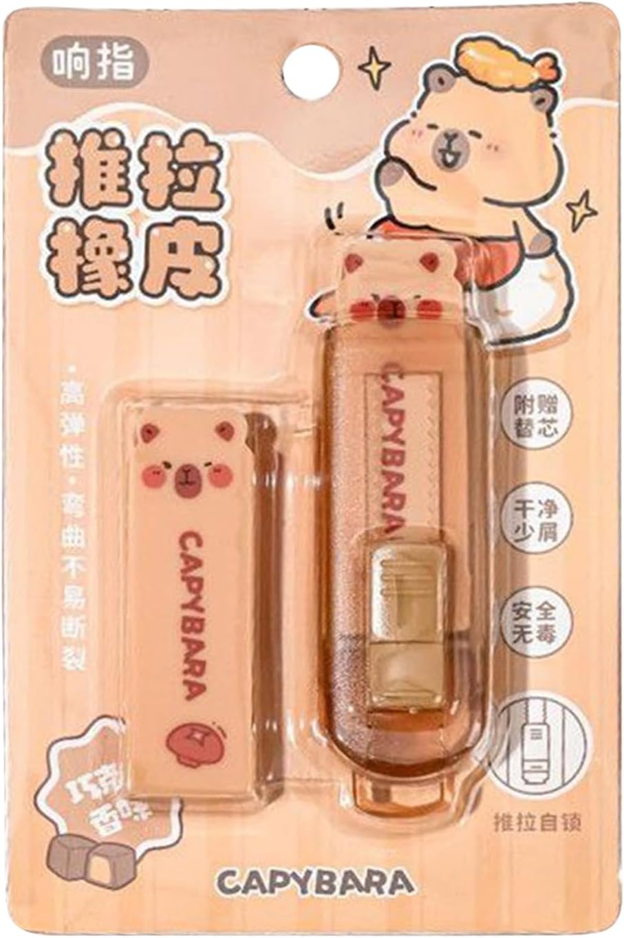 Design pratico: gomma compatta retrattile con facile maneggevolezza, pronta all'uso e perfetta per correzioni spontanee in qualsiasi momento in qualsiasi luogo Entusiasmo istantaneo: l'adorabile design a porcellino d'acqua dei cartoni animati rende questa gomma un'aggiunta arricchente a qualsiasi collezione di articoli di cancelleria e offre un uso pratico con gioia Uso flessibile: risolve efficacemente le tracce di matita nei registri dei corsi, schizzi artistici e vari ambienti con risultati precisi Correzione senza sforzo: grazie al meccanismo push-pull, questa gomma consente correzioni senza sforzo con precisione regolabile. Non è necessario perdere peso ripetutamente, mentre sono garantite prestazioni affidabili e facilità d'uso per le attività quotidiane. Emotiva e utile: ideale come accessorio di scrittura di alta qualità, la gomma a clic combina un design sofisticato con l'uso quotidiano. Un regalo grato e utile per familiari, amici o colleghi di ufficio