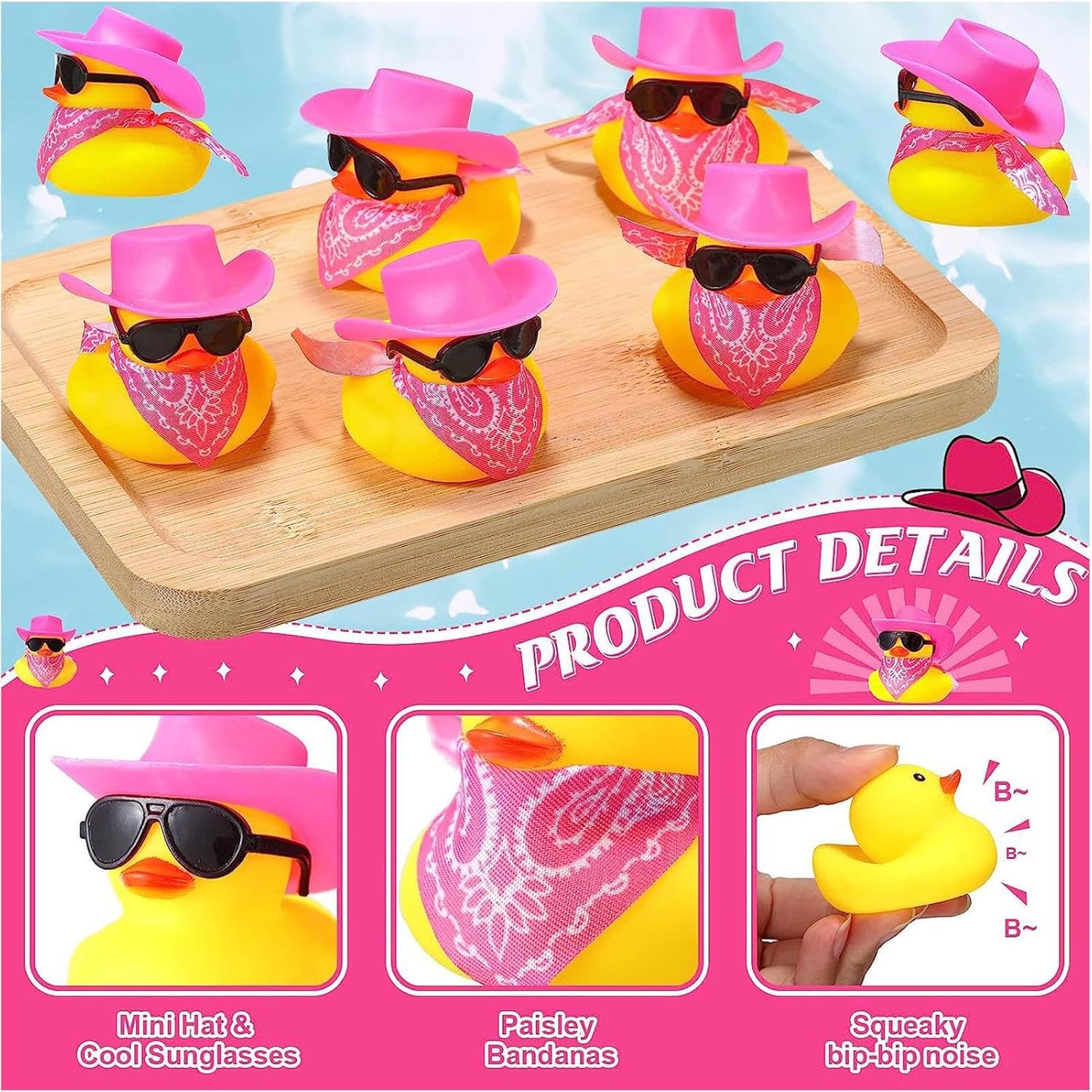 Divertente e personalizzabile: questa papera di gomma da cowboy viene fornita con come occhiali, cappelli da cowboy, sciarpe e altro ancora. Puoi vestirlo secondo le tue preferenze personali o altre decorazioni carine fai-da-te. Materiale durevole: la nostra papera di gomma da cowboy è realizzata in gomma di alta qualità, garantendo che sia sicura e inodore. Con la sua consistenza morbida ed elastica, garantisce ore di divertimento ininterrotto a cowboy e cowgirl di tutte le età. Compagno conveniente: con le sue dimensioni ridotte e il design facile da impugnare, questa paperella di gomma da cowboy è l'amico tascabile per giocare in movimento. Puoi portarlo con te ovunque e riporlo nella borsa per un rapido accesso a divertimenti. Ambito di applicazione: queste papere di gomma da cowboy non sono solo perfette per riempire sacchetti regalo, premi di giochi e oggetti fotografici per feste in piscina, ma aggiungono anche un tocco divertente alle celebrazioni. Porta entusiasmo alle feste di compleanno, Natale e alle feste di benvenuto dei bambini utilizzando queste versatili anatre per decorare auto e altro ancora. Regalo fantastico: questa papera di gomma da cowboy non è il normale giocattolo da bagno. Ha un cappello , una bandana e un distintivo da sceriffo, che lo rendono un fantastico regalo per adulti e bambini che amano i temi western. Sia che la usi per decorare o per giocare, questa papera ti farà sorridere.