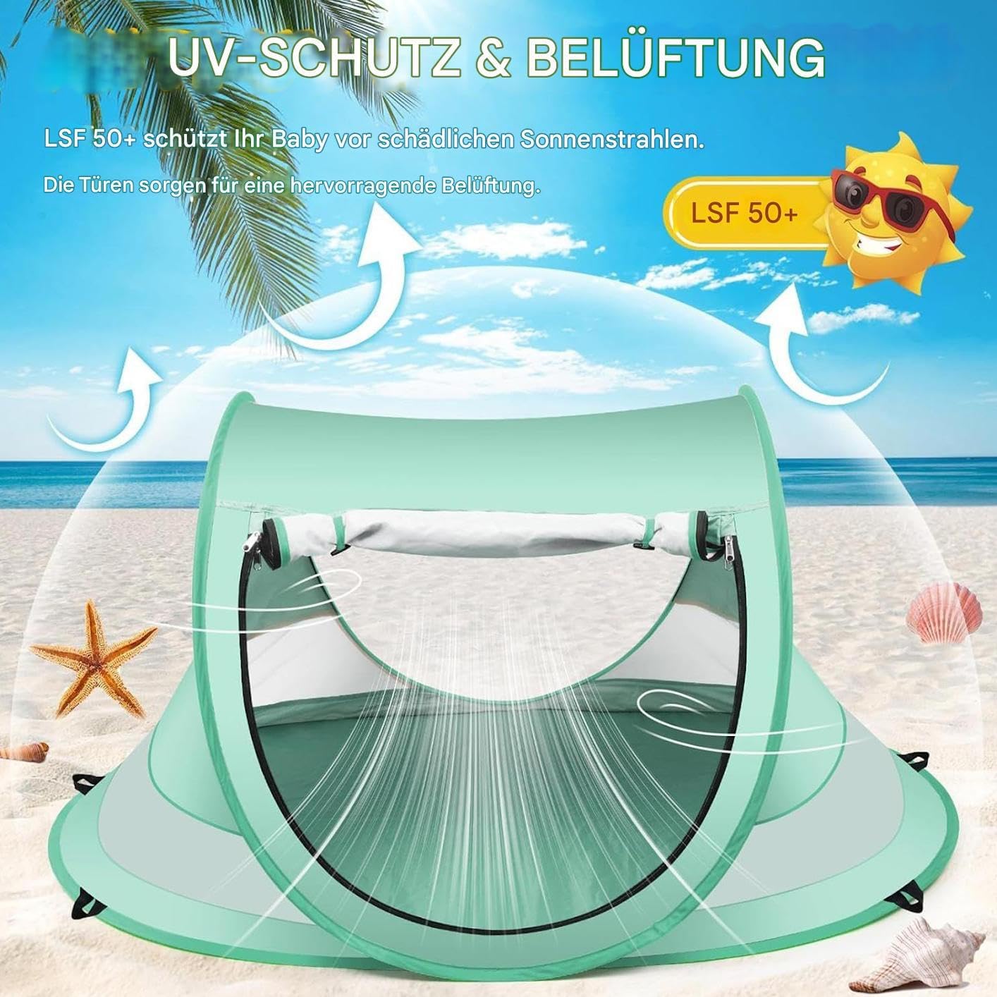 Ampio campo di attività: crea uno spazio di esplorazione sicuro per i bambini che gattonano, combina portabilità con design pieghevole per viaggi senza stress e facile da riporre Stabilità rapida: combina una struttura in pochi secondi con elementi resistenti al vento e struttura rinforzata per prestazioni affidabili in diverse attività all'aperto come gite in spiaggia o picnic. Tessuto denso: controllo uniforme della temperatura grazie al design di ventilazione a 360 gradi, garantisce una circolazione dell'aria costante con uno strato antizanzare e un comfort delicato sulla pelle Protezione UV: la tenda da spiaggia per bambini offre una forte protezione UV grazie alla schermatura solare ad alta densità con UPF 50+, che protegge efficacemente la pelle sensibile dalla luce solare diretta Flessibilità: ideale per ambienti interni ed esterni grazie al telaio elastico a sgancio rapido per una struttura comoda e un uso stabile come protezione temporanea versatile durante le attività.