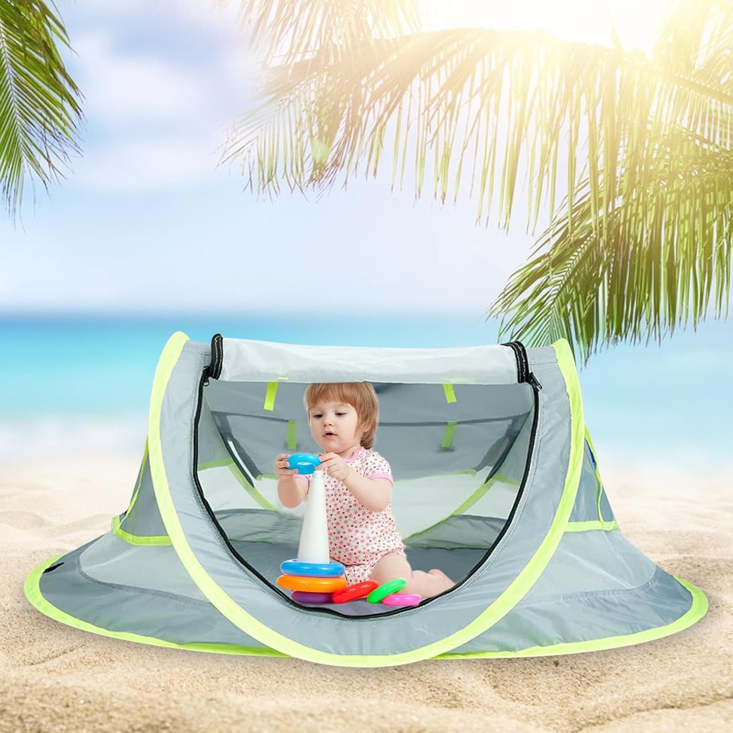 Spazio e comodo: questa per bambini offre spazio comodo e spazioso per i tuoi bambini per riposare o giocare. Può ospitare bambini di dimensioni e età diverse. Il te nt è di circa 108*51*65cm/42.52*20.08*25.59 pollici di dimensioni e può essere comodamente piegato a 35 cm per adattarsi a qualsiasi valigia. Protezione UV: questa per bambini offre una protezione UPF 50+ per il tuo bambino, bloccando fino al 98% dei raggi UV dannosi. È realizzato in poliestere durevole e resistente alle lacrime da 21 0t e nel nuovo tessuto che possono resistere alle condizioni esterne. È anche una da viaggio che è facile da trasportare e installare, dando al tuo bambino un riparo sicuro e confortevole. Porta facilmente: questa da baby beach è ultra leggera e traspirante, quindi puoi portarla con te vuoi. È semplice da costruire e smantellare, e lascia che il tuo bambino respiri liberamente ed efficacemente all'ombra. Fattura eccezionale: questa da spiaggia è realizzata con materiali in rete e poliestere ecologici, che non hanno odore irritante e eccellente Wo RKManship. È e resistente all'usura e può essere facilmente utilizzato sulla spiaggia. Fornisce comfort e sicurezza per il tuo bambino. Eccellente ventilazione: questa da baby beach offre spazio spazioso e confortevole per il bambino per riposare e giocare. Ha un design a rete che consente la circolazione 'aria e impedisce al bambino di diventare chiuso. Puoi controllare la luce del sole chiudendo o aprendo le tende. Puoi anche goderti la vista aprendoli. Questa da spiaggia è una scelta meravigliosa per il comfort e la sicurezza del tuo bambino.