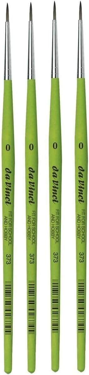 Da Vinci 373 Serie 4 - Pennello sintetico rotondo, da vinci NO.0 Questo prodotto innovativo offre prestazioni migliori rispetto ai tradizionali pennelli scolastici con setole naturali Per dettagli e lavori di precisione Grigio, fibre sintetiche molto elastiche puntale senza giunte Maniglia verde opaca con una struttura superficiale di nuova concezione