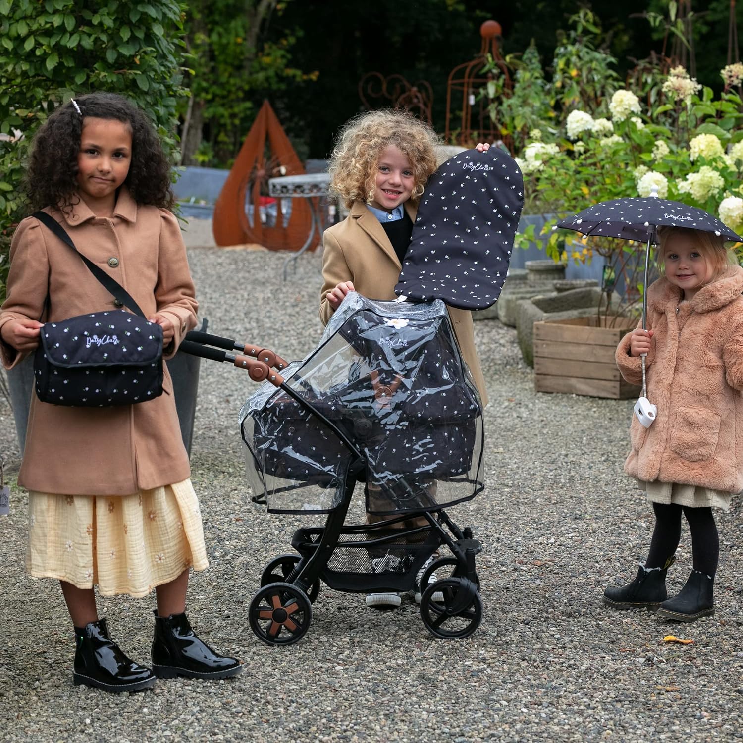 Il perfetto kit di accessori per completare la carrozzina per bambole Daisy Chain Connect o Destiny La borsa è dotata di una tracolla di lunghezza fissa, una chiusura con Velcro sulla parte anteriore, un grazioso dettaglio del bordo color argento e il logo ricamato. Il materassino presenta un grazioso logo ricamato e si adatta perfettamente alle carrozzine per bambole Daisy Chain Connect e Destiny. Il parasole Daisy Chain è dotato di una pinza per fissarlo a carrozzine o passeggini di qualunque misura. Il parapioggia si adatta perfettamente alle carrozzine per bambole Daisy Chain Connect e Destiny.