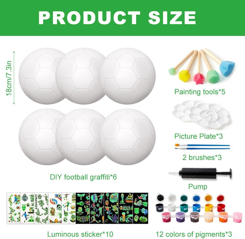 🎨【Set completo】Il set da pittura a calcio include 6 palloni da calcio (18 cm di diametro), 3 colori in 12 colori, 3 vassoi di vernice, 2 pennelli, 5 strumenti di pittura, 10 adesivi luminosi e 1 pompa. Lascia che la creatività del tuo bambino si scateni e guarda il suo talento artistico prendere vita. ⚽【Creazioni di lampade a tema calcio】Dai libero sfogo alla tua creatività e crea lampade a tema calcio uniche che riflettano la tua immaginazione. Questi set da pittura a calcio sono la scelta perfetta per gli appassionati di calcio, sia per decorare la cameretta dei bambini che per creare un'atmosfera speciale durante feste e partite di calcio. 🎨【Sicuro e divertente】Gli strumenti di decorazione inclusi nel set da pittura a calcio sono sicuri e atossici, così i tuoi piccoli angeli possono giocarci in tutta sicurezza. Il processo di pittura è semplice e divertente. Anche i genitori possono farlo con i propri figli e migliorare il loro rapporto. ⚽【Promuove la creatività e le capacità motorie fini】Questo lampada da calcio una lampada a forma di pallone da calcio 3D è ideale per creare, dipingere e decorare. Il luce notturna da calcio una lampada a forma di pallone da calcio 3D supporta lo sviluppo della coordinazione occhio-mano, della concentrazione e dell'espressione creativa nei bambini. 🎁【Ottima idea regalo】Questo luce notturna da calcio una lampada a forma di pallone da calcio è un regalo ideale per bambini e bambine dai 3 ai 14 anni che amano lo sport e amano creare e dipingere.Set da pittura a calcio perfetto per Natale, compleanni o altre feste. Un'ottima attività di bricolage per bambini.