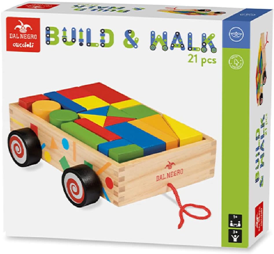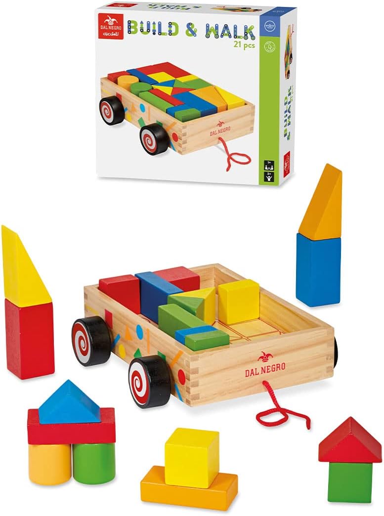 IL GIOCO: Build & Walk è un simpatico gioco dalle molteplici possibilità di costruzione,con cui comporre magnifiche costruzioni.Il carrellino con forme in legno presenta un design colorato e attraente che cattura l'attenzione dei bambini, incoraggiandoli a esplorare e giocare. CONTENUTO:1 carrellino trainabile in legno con 25 blocchi colorati di varie forme. in legno. MATERIALE: Build & Walk è realizzato in legno resistente di qualità. I colori vivaci sono stati creati con vernici atossiche per ore di gioco sicuro. GIOCO EDUCATIVO PER BAMBINI: Build & Walk promuove il gioco cooperativo, incoraggiando i bambini a giocare insieme, condividere le forme e interagire tra loro. Favorisce la coordinazione motoria e le capacità manipolative. Stimola il riconoscimento delle forme e la coordinazione mano-occhio. UN REGALO PERFETTO: È perfetto come regalo per compleanni, festività e altre occasioni speciali.