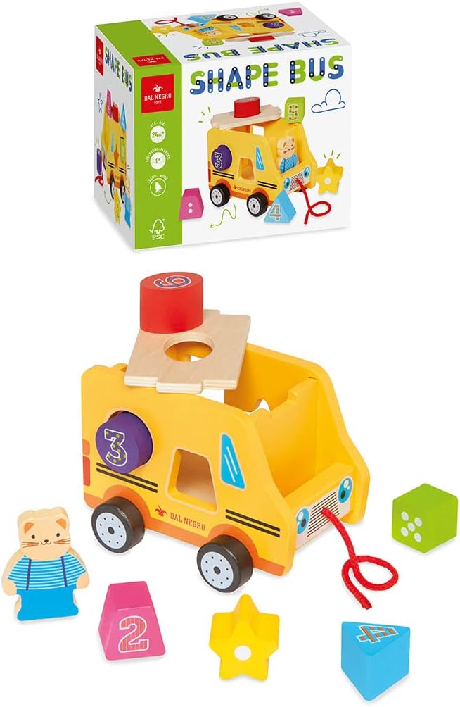 IL GIOCO: Shape Bus è un simpatico scuolabus trainabile, dotato di pratico cordino e arricchito di blocchi colorati da inserire nei fori abbinati. CONTENUTO DELLA CONFEZIONE: 1 scatola delle forme trainabile in legno (cm 16 x 11.5 x 12) e 7 blocchi colorati in legno. MATERIALE: Shape Bus è realizzato in legno di alta qualità, resistente. Tutti i materiali sono sostenibili e atossici per la massima sicurezza dei bambini. GIOCO EDUCATIVO PER BAMBINI: Shape Bus favorisce lo sviluppo delle abilità motorie e della coordinazione mano-occhio dei bambini mentre manipolano e posizionano le forme nella scatola. UN REGALO PERFETTO: Ottima idea regalo che offre un'esperienza unica al tuo bambino, è adatto anche come regalo di compleanno, festività e altre occasioni.