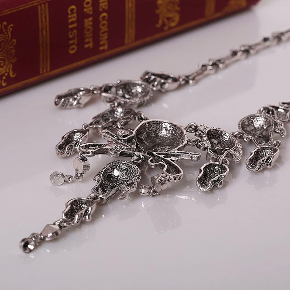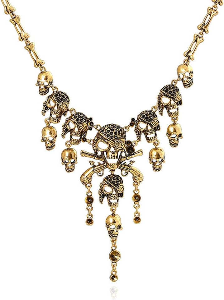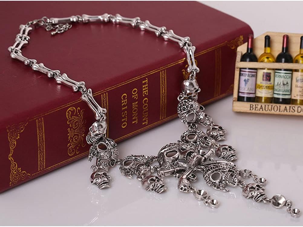 Dan&Dre Collana Vintage con Scheletro di Halloween sul Retro, Collana in Lega con Teschio Multistrato, per Donne Accessorio per Costume da Pirata Gioielli Cosplay