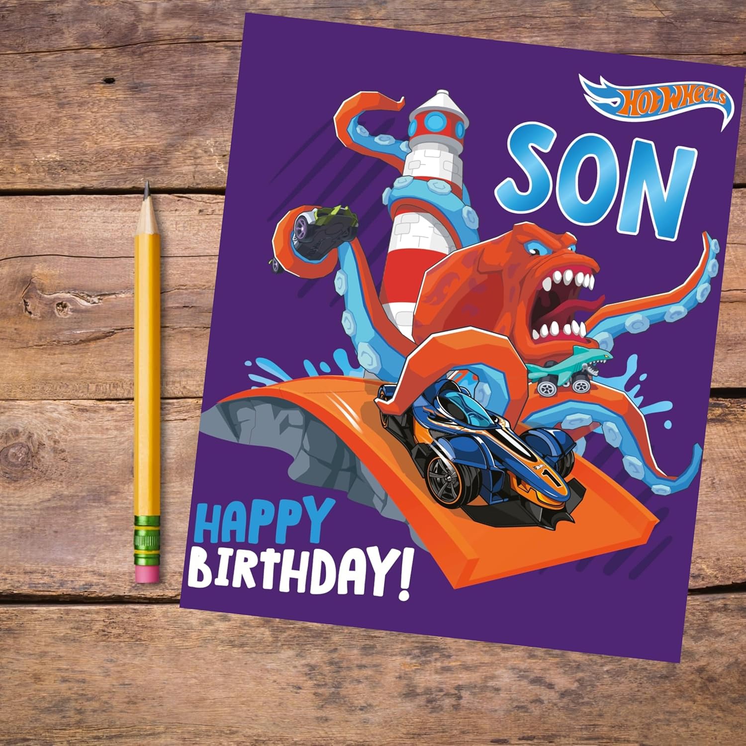 Festeggia il giorno speciale di tuo figlio con questo vivace biglietto d'auguri Hot Wheels. Caratterizzato da emozionanti auto Hot Wheels ad alta velocità in azione, questo biglietto è perfetto per ogni giovane appassionato di corse. Il design audace e colorato cattura l'emozione della pista, rendendolo un modo divertente e memorabile per augurare a tuo figlio un compleanno indimenticabile. All'interno c'è molto spazio per scrivere un messaggio sentito, aggiungendo un tocco personale alla propria celebrazione. Che sia un fan delle corse o semplicemente ami l'emozione che Hot Wheels porta, questa carta renderà sicuramente la sua giornata ancora più speciale
