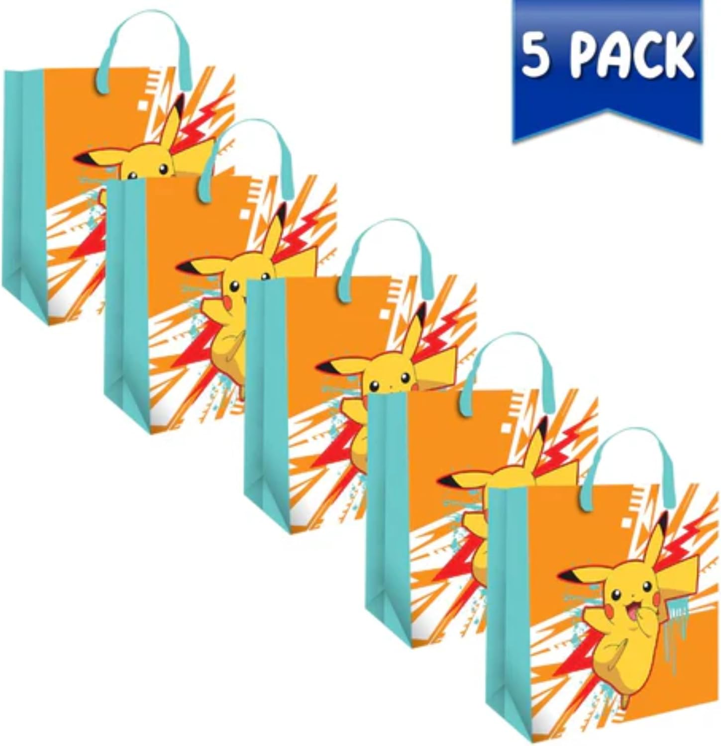 Sacchetti regalo Pokemon - Confezione da 5 - ideali per regali da festa o come regali e dolcetti di compleanno. Dimensioni: 15 cm x 15 cm quando aperto, bello e profondo con manici lunghi. Cattura la magia dei Pokémon e aggiungi un tocco di avventura al tuo prossimo evento con questo fantastico multipack! Delizia i giovani fan alla tua prossima festa con la confezione multipla Pokemon da 5 sacchetti regalo/sacchetti per feste. Ogni borsa è dotata di manici lunghi ed è di buone dimensioni per contenere regali, giocattoli, dolcetti e torte di compleanno per occasioni speciali e compleanni.