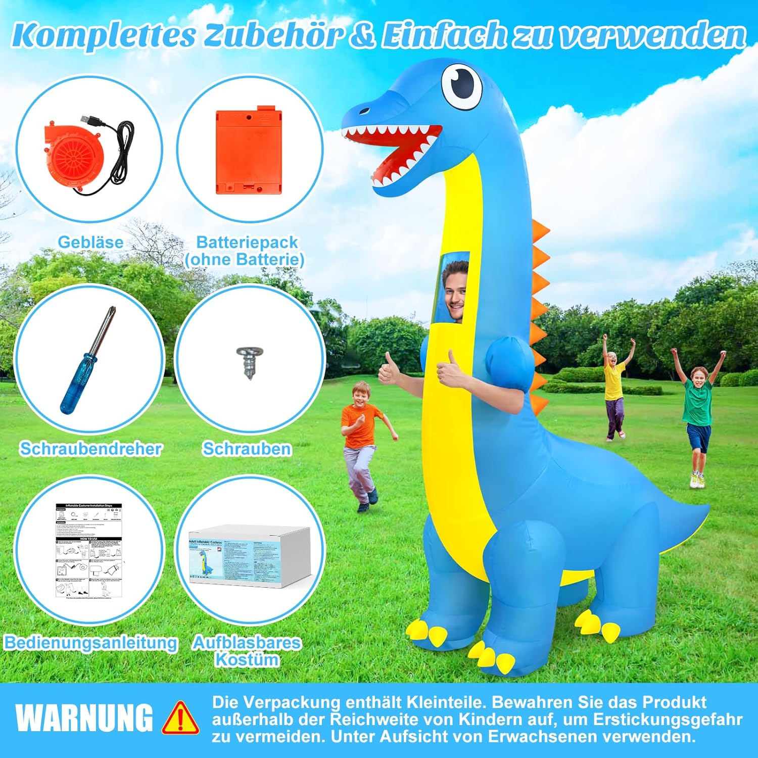 Accensione corretta: richiede 4 batterie AAA o power bank USB (non incluse). Utilizzare batterie di marca nuove: le batterie economiche causano uno scarso flusso d'aria. Per adulti da 1,55 a 1,80 mt. Evita oggetti appuntiti e folle: il poliestere premium è resistente agli strappi, ma non a prova di proiettile. Il pogare aggressivo presenta il rischio di stressare le cuciture. Interessante costume gonfiabile: il dinosauro blu dal collo lungo ha un collo lungo, un corno arancione sul dorso, una bocca piena di denti aguzzi e guarda avanti, come se vedesse qualcosa che lo rende felice. Quando indosserai questo costume da dinosauro gonfiabile, diventerai il centro dell'attenzione del pubblico e oggetto di invidia e ammirazione da parte di tutti i presenti. Materiale premium: tessuto in poliestere 210T di alta qualità e cuciture eccellenti assicurano che i costumi gonfiabili non siano facili da strappare. Con il potente ventilatore, puoi ottenere un costume da dinosauro gonfiabile in pochi minuti. Basta chiuderlo con la cerniera e accendere l'interruttore della batteria per mantenerlo gonfiato. Si prega di inserire la batteria nella tasca all'interno del costume gonfiabile per adulti. Adatto a tutte le occasioni: l'interno spazioso del costume gonfiabile di Halloween ti consente di muoverti liberamente e la finestra trasparente ti consente di vedere chiaramente la strada, permettendoti di goderti la festa senza sentirti a disagio. Questo divertente costume gonfiabile per adulti è l'aggiunta perfetta all'atmosfera attiva ed è molto adatto per Halloween, Natale, Ringraziamento, Pasqua, feste di compleanno, cosplay, feste in maschera, ecc. Accessori completi: questo costume gonfiabile per adulti contiene: 1 tuta gonfiabile, 1 manuale utente, 1 ventola, 1 vite e cacciavite, 1 batteria (sono necessarie 4 batterie AA, ma non incluse). Oppure sostituire la batteria con una batteria esterna). La dimensione del costume gonfiabile di Halloween è adatta alla maggior parte degli adulti e l'altezza è compresa tra 1,5 e 1,8 m. Si prega di leggere il manuale dell'utente prima dell'uso. Crea un'atmosfera divertente e felice: questo costume gonfiabile per adulti ha un design unico e interessante, facile da indossare e da togliere ed è comodo per il movimento. Indossare questo simpatico costume da dinosauro gonfiabile per adulti a qualsiasi evento può aggiungere un'atmosfera più divertente all'evento ed è perfetto come sfondo fotografico per creare ricordi caldi e divertenti per la famiglia e gli amici
