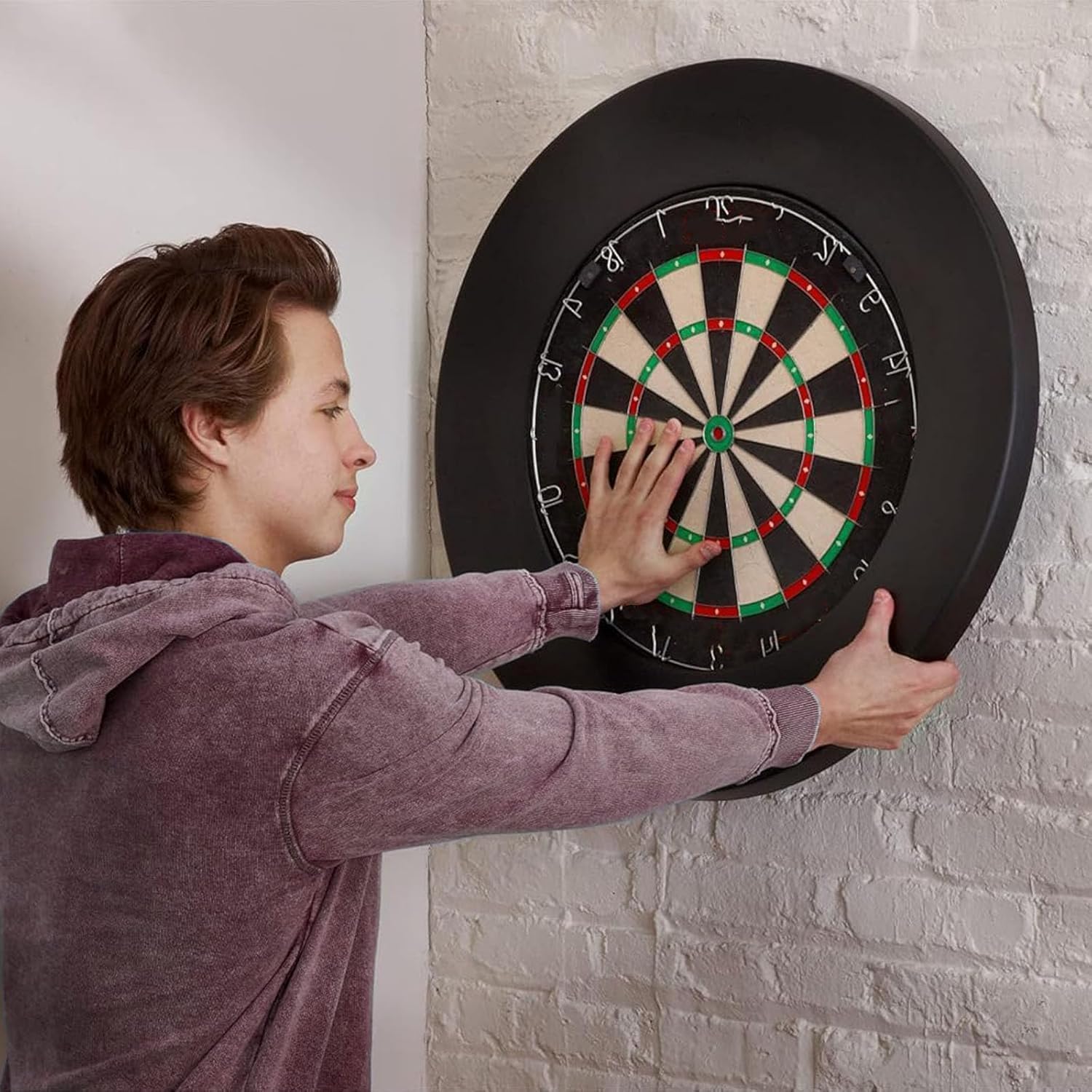 Design modulare: composto da 4 parti indipendenti, è facile da montare, smontare e trasportare. Materiale in fibra ad alta densità: realizzato in resistente schiuma EVA, che può assorbire efficacemente l'impatto delle freccette. Leggero e facile da installare: ogni parte è leggera e può essere fissata rapidamente alla parete con ganci, o bulloni. Protezione a 360°: la copertura circolare attorno al bersaglio riduce i danni alla parete causati dalle freccette accidentate. Compatibile con varie superfici della parete: adatto per cemento, legno, pareti in gesso, ecc., Senza danneggiare la superficie della parete originale.