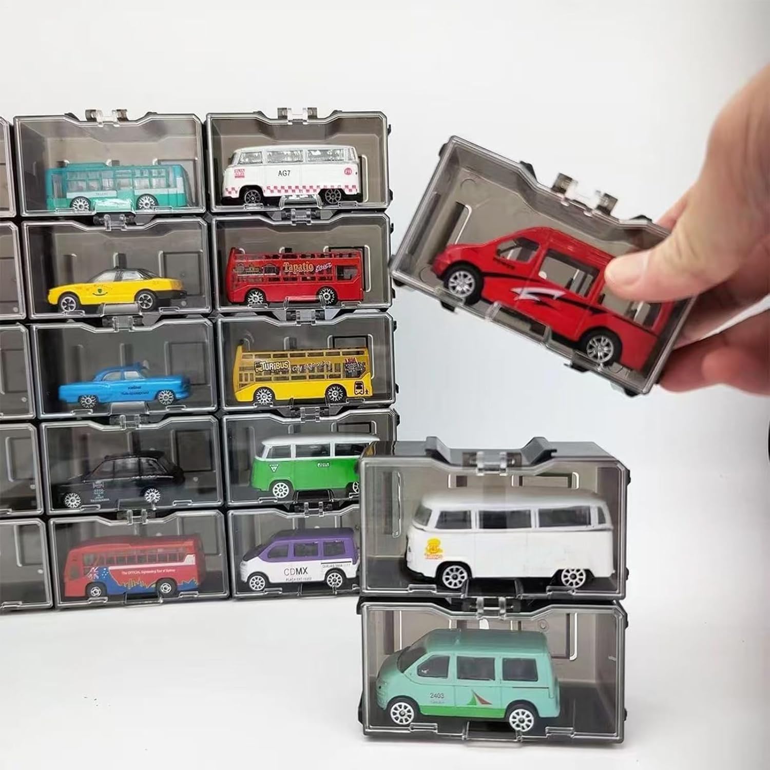 Design multifunzionale: design versatile del display per auto modello per auto 1:64 si adatta anche a camion e altri piccoli giocattoli che si occupano di diverse esigenze di raccolta Comodo da pulire: tieni facilmente il tuo modello lontano da polvere e macchie Uso perfetto dello spazio: adottare un design modulare per modelli impilabili -Auto -Display -Casi, massimizzare l'utilizzo verticale dello spazio e creare un'area di visualizzazione unica in ambienti compatti Materiale resistente: realizzato in PVC di alta qualità Regalo meraviglioso: una scelta sbalorditiva per presentare modelli da corsa è un regalo perfetto per chi soffre delle loro collezioni