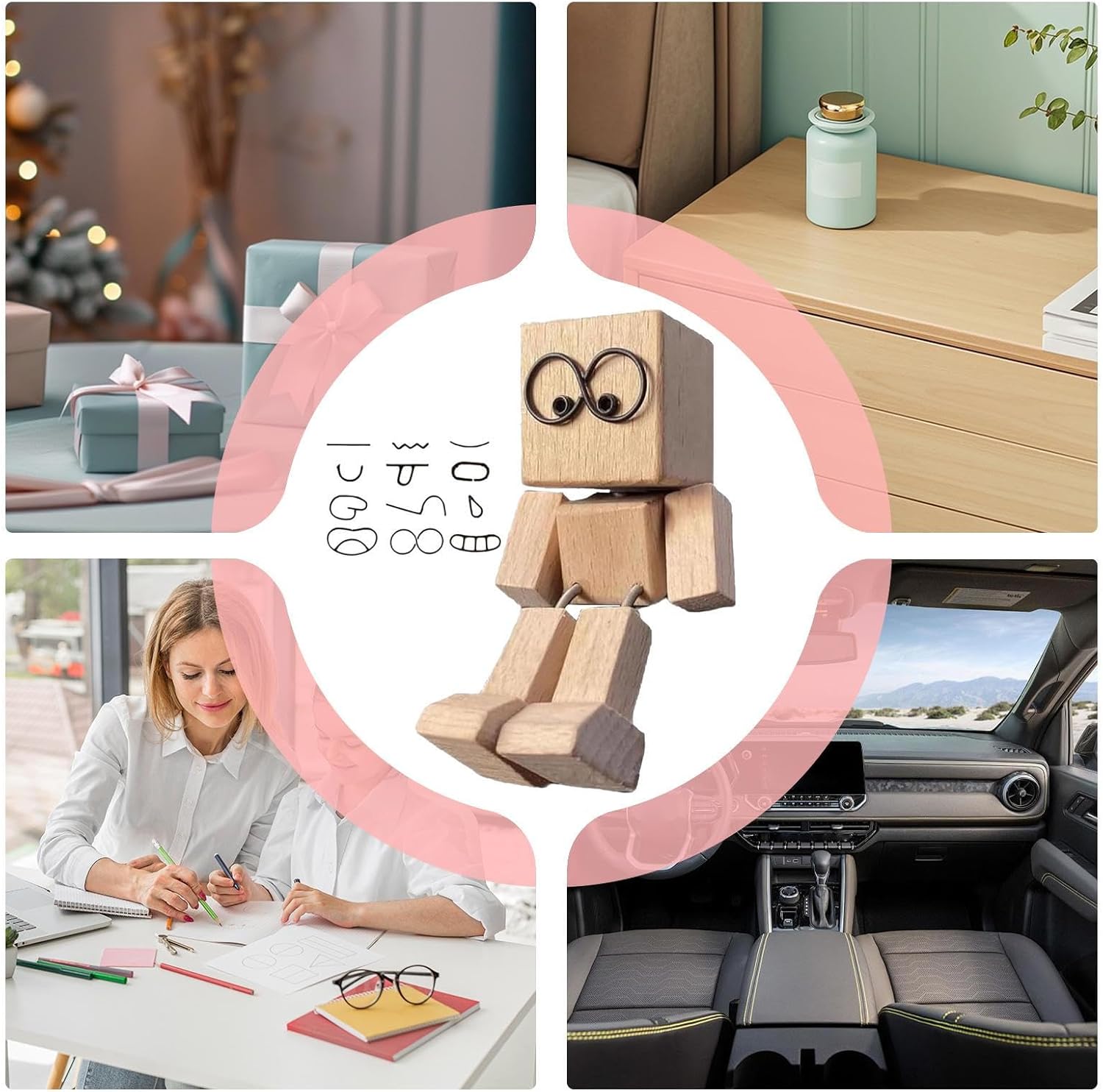 Interactive Dashboard Doll: Activated by touch or gentle shake, this wooden doll delivers cheerful atmospheres and animated movement, creating an inviting atmosphere wherever placed Warm Wooden Aesthetic: Combining wood and wire, this decoration introduces a whimsical flair to your dashboard, designed for lasting use and infused with the warmth of organic materials Idea: Perfectly suited for happy gatherings, this decoration brings smiles and includes wire for creating meaningful expressions on car dashboards Interactive Visual Highlight: Create captivating attention points with rhythmic movements that energize surroundings, using the included wire to craft decorative styles for improved aesthetic appeal Wide Range of Uses: Effortlessly blends into diverse settings with its compact design, offering perfect placement on dashboards or in works while enhancing the surrounding environment