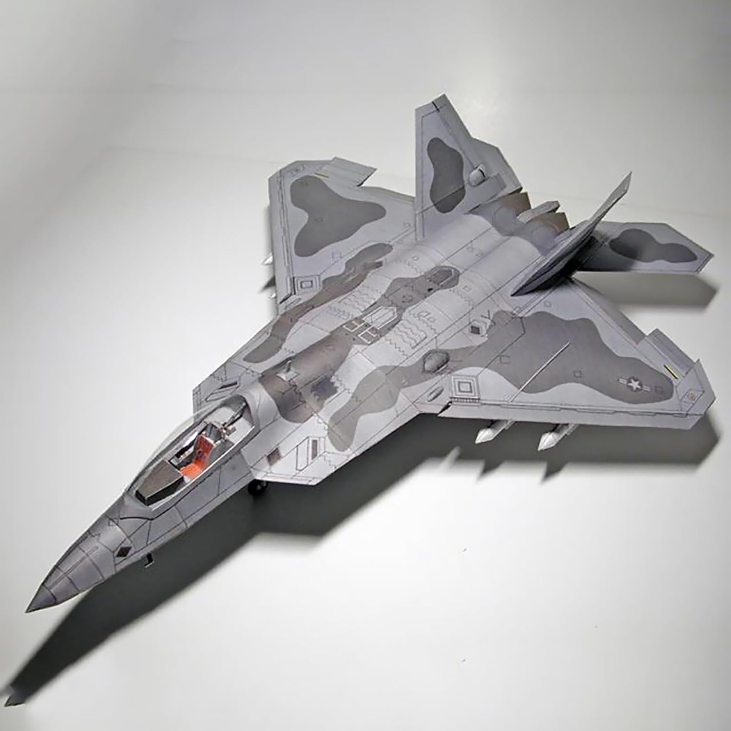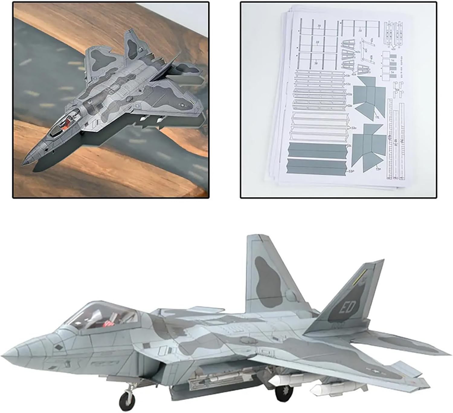 Il modello di aereo da combattimento incontra la tua passione per gli oggetti da collezione dell'aviazione con un bel design. Un accurato modello di carta in scala per collezionisti e appassionati. Il modello di aereo di carta ripristina accuratamente l'aspetto e i dettagli di F22 Fighter. Il montaggio fai da te viene fornito con l'aiuto di istruzioni passo per passo o illustrate (lingua italiana non garantita). Buona scelta per il compleanno dei bambini per esercitare il loro pensiero e le loro capacità pratiche.