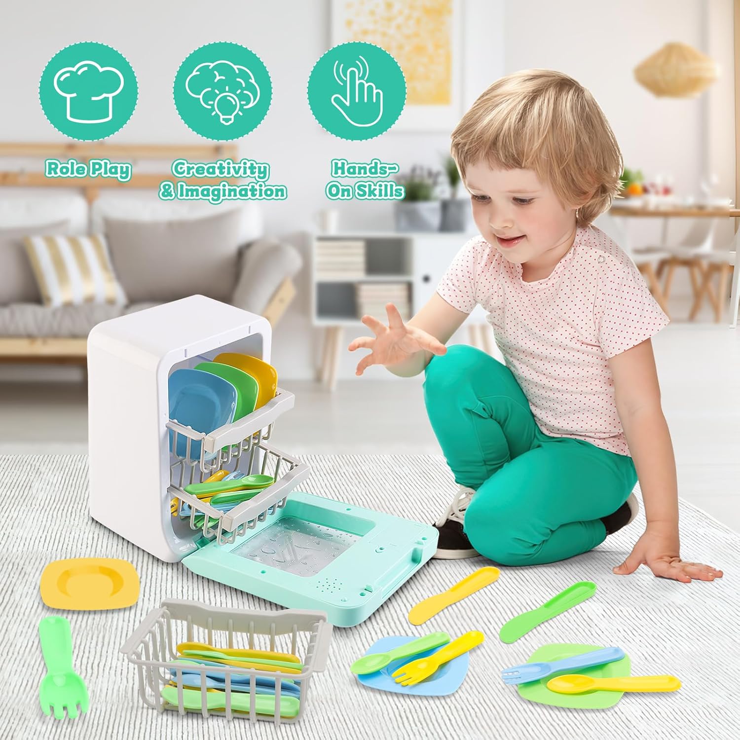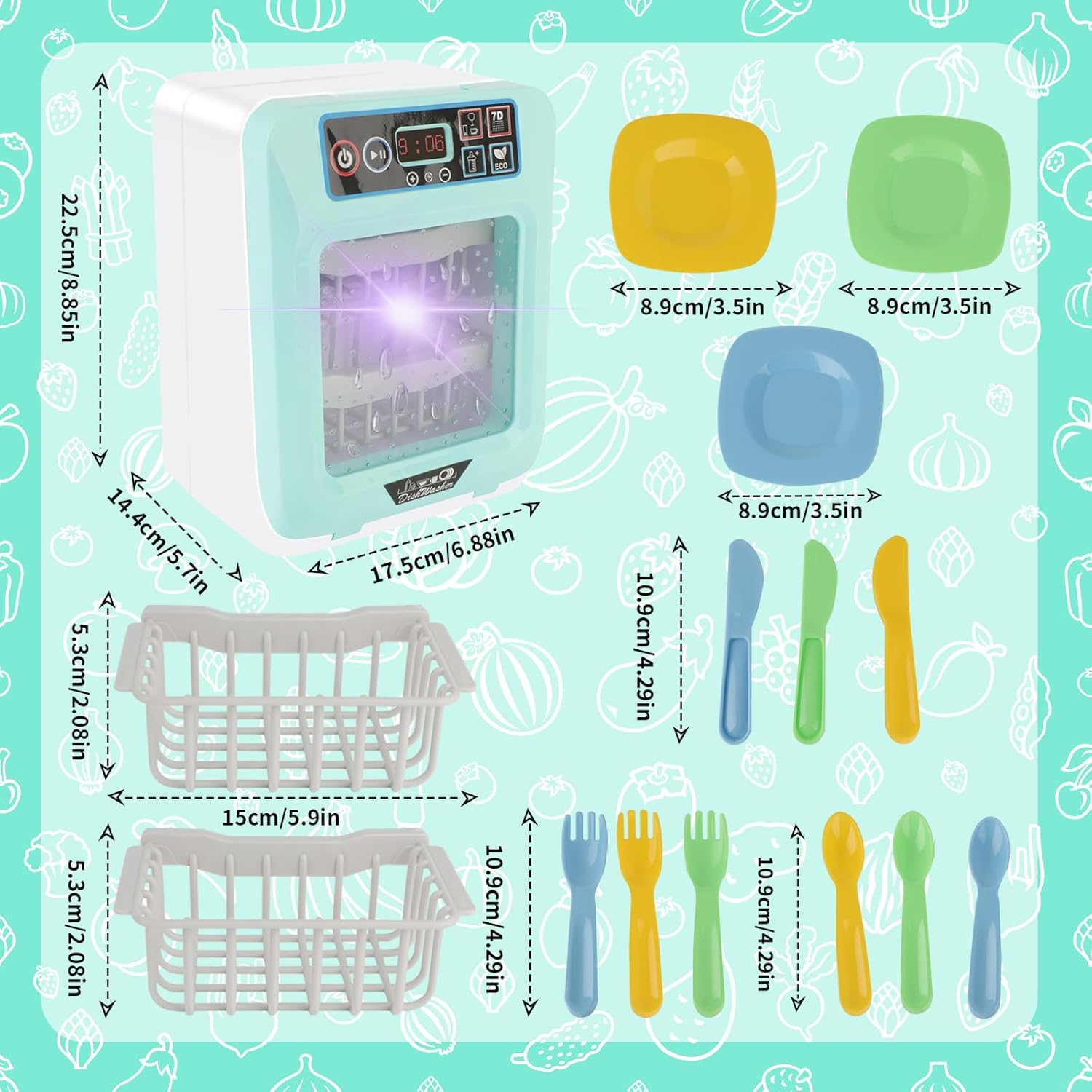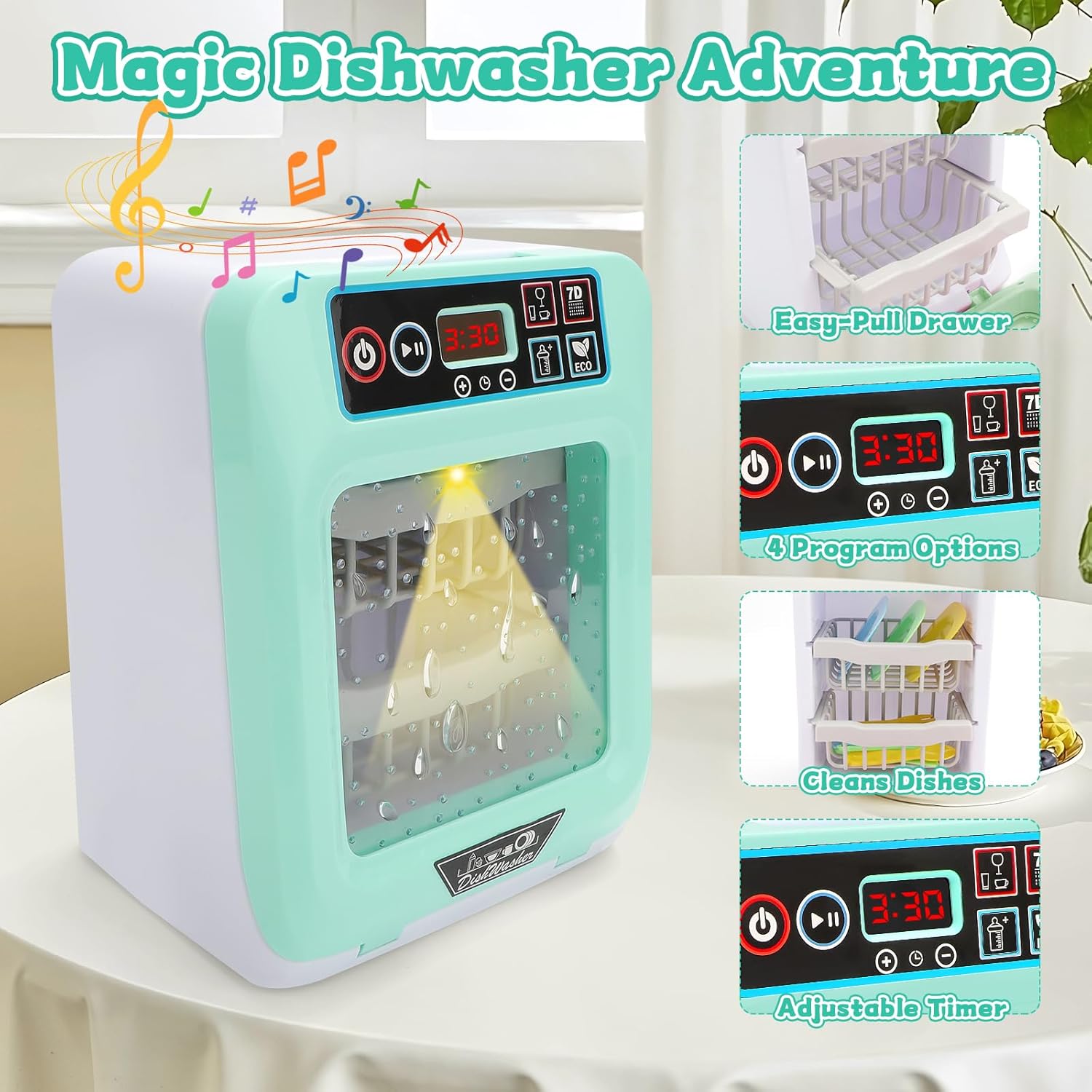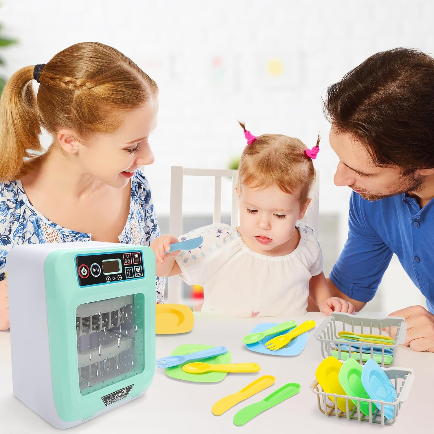 Set da gioco perfetto per principianti: questo set da gioco per lavastoviglie è perfetto da aggiungere alla collezione di cucine di tuo figlio! Questo set da gioco include accessori per posate da gioco e una realistica lavastoviglie a batteria. Caratteristiche: Questo set è dotato di pulsanti simulati, schermo LCD dell'ora, funzioni luminose e sonore che intratterranno il tuo bambino per ore. VANTAGGI Non solo il tuo bambino è in grado di creare il proprio divertimento con questo set da gioco, ma è anche in grado di sviluppare la coordinazione occhio-mano e la conoscenza dell'ambiente della cucina. CARATTERISTICHE REALISTICHE - Progettato con caratteristiche realistiche! Basta mettere gli accessori da cucina in lavastoviglie e premere il pulsante giusto! I bambini possono scegliere la modalità e il tempo di lavaggio! Un modo fantastico per intrattenere giocosamente il tuo bambino. RACCOMANDAZIONI E AVVERTENZE Non adatto a bambini di età inferiore a 3 anni. Utilizzare sotto supervisione diretta.2 batterie AA incluse.